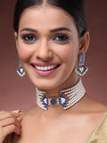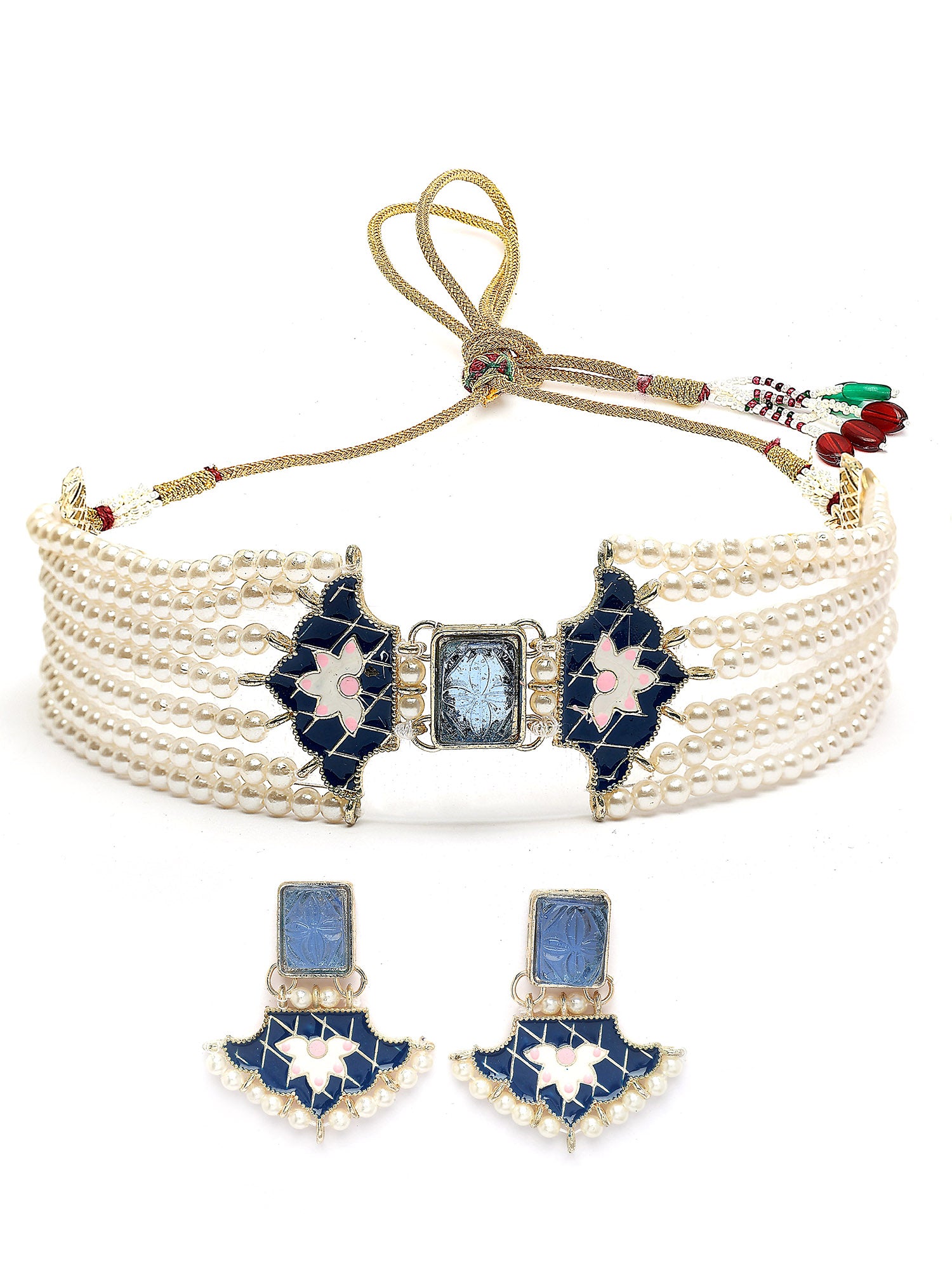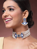 Karatcart Gold Plated Blue Meena Kundan Choker Necklace Set for Women