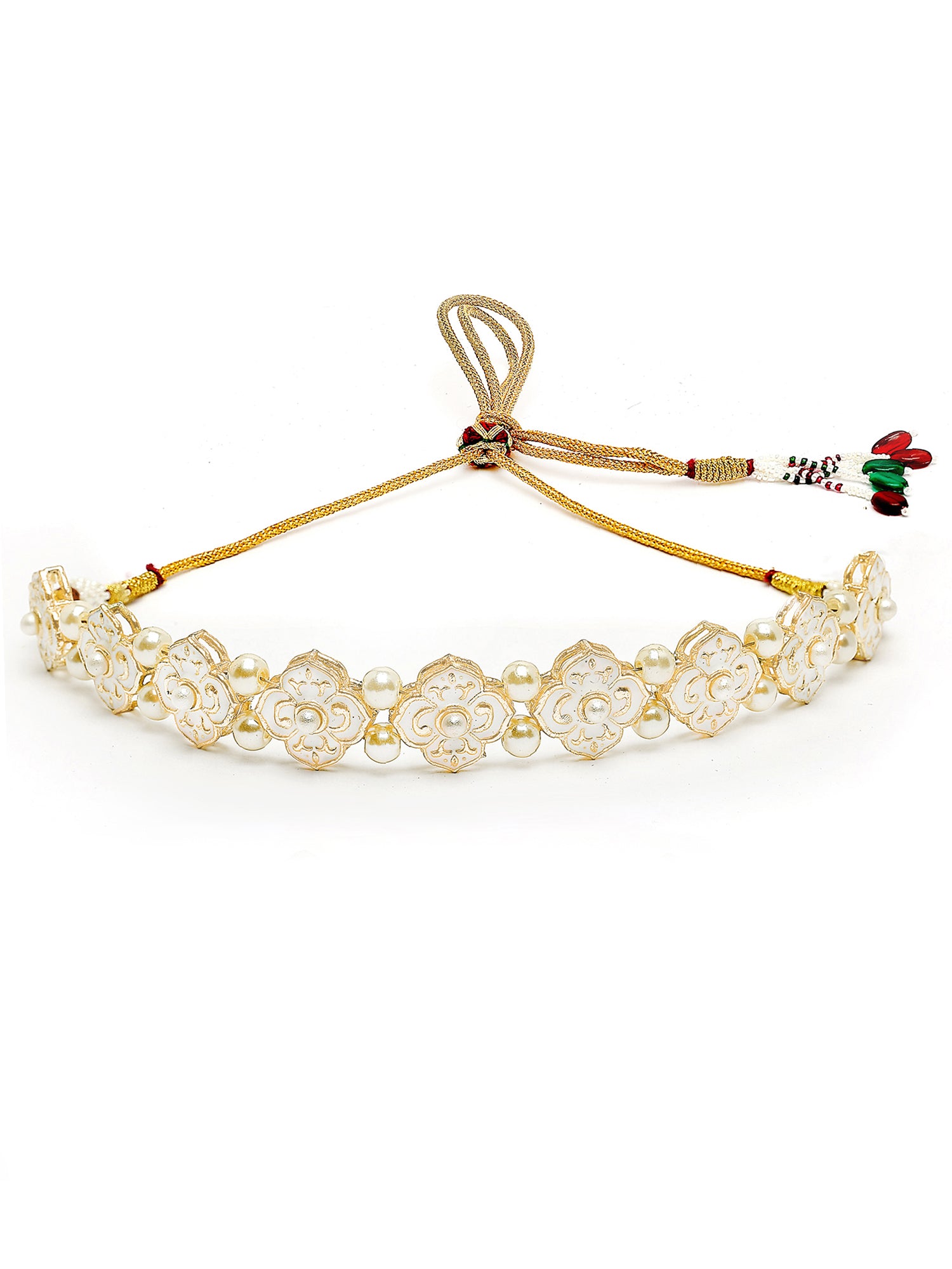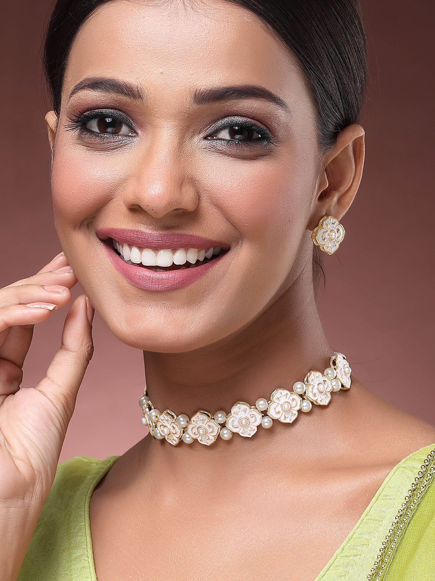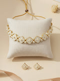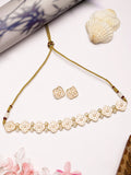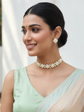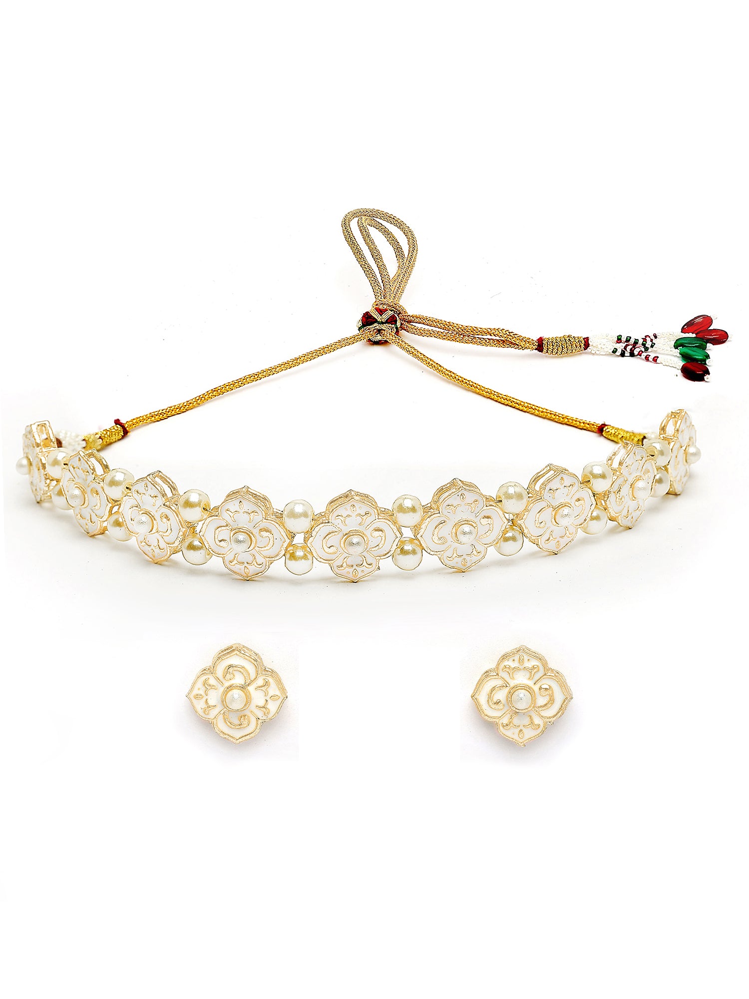 Karatcart Gold Plated White Enamel Pearl Choker Necklace Set for Women