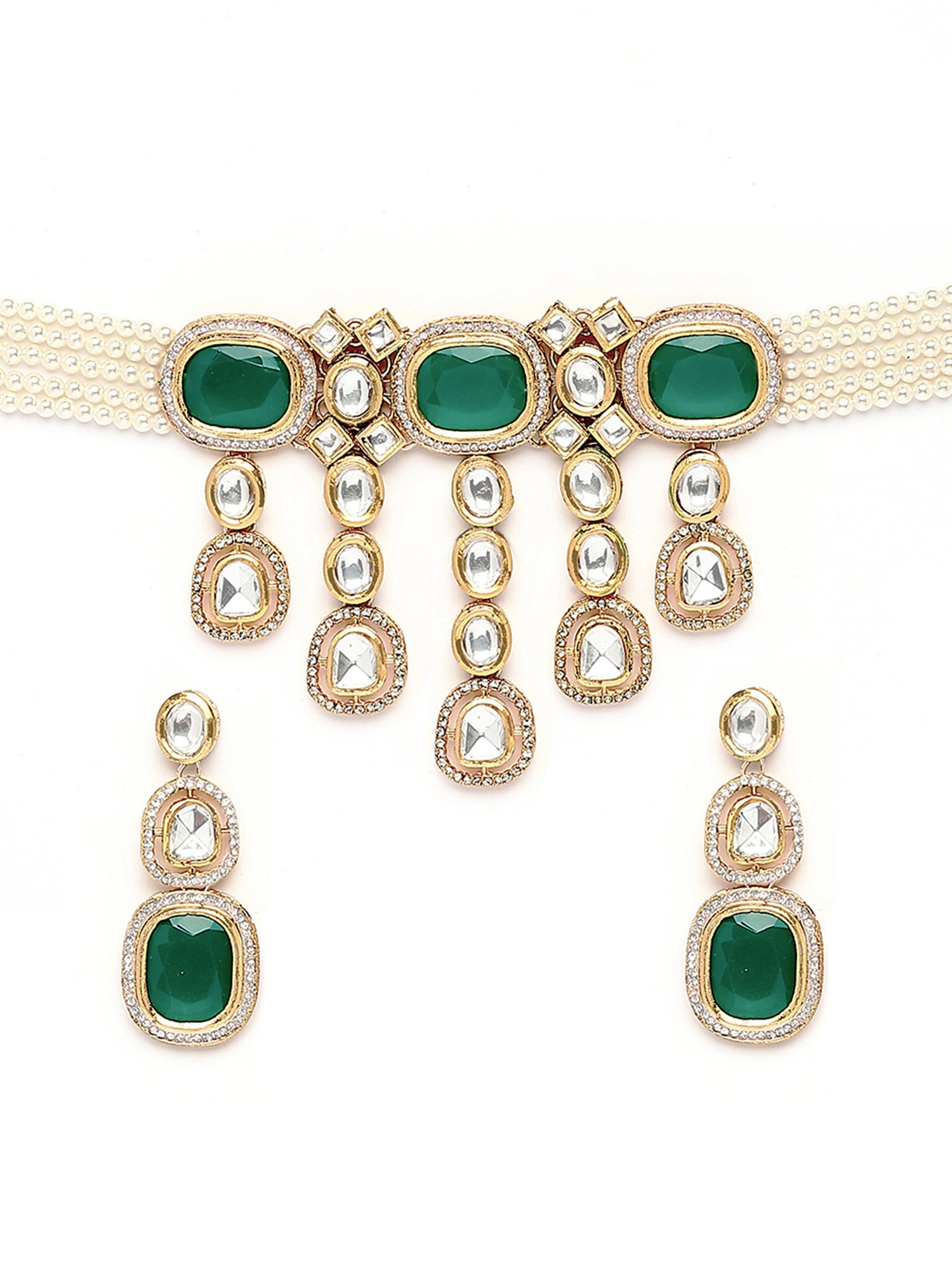 Karatcart Green Polki Kundan Design Choker Jewellery Set for Women. Our products are designed with high-quality material and these products are enhanced with plating that are skin-friendly & with love to reach your heart.