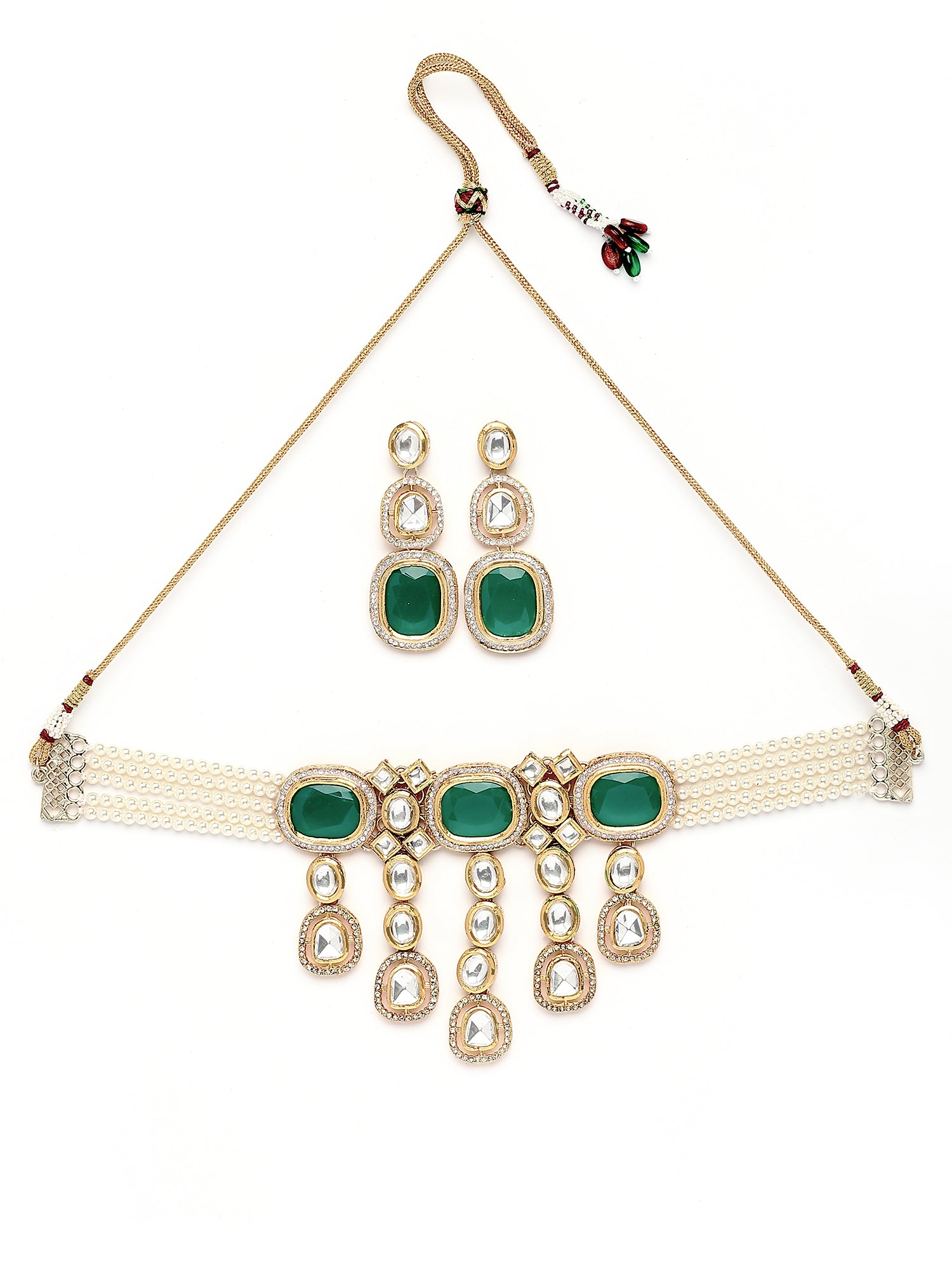 Karatcart Green Polki Kundan Design Choker Jewellery Set for Women