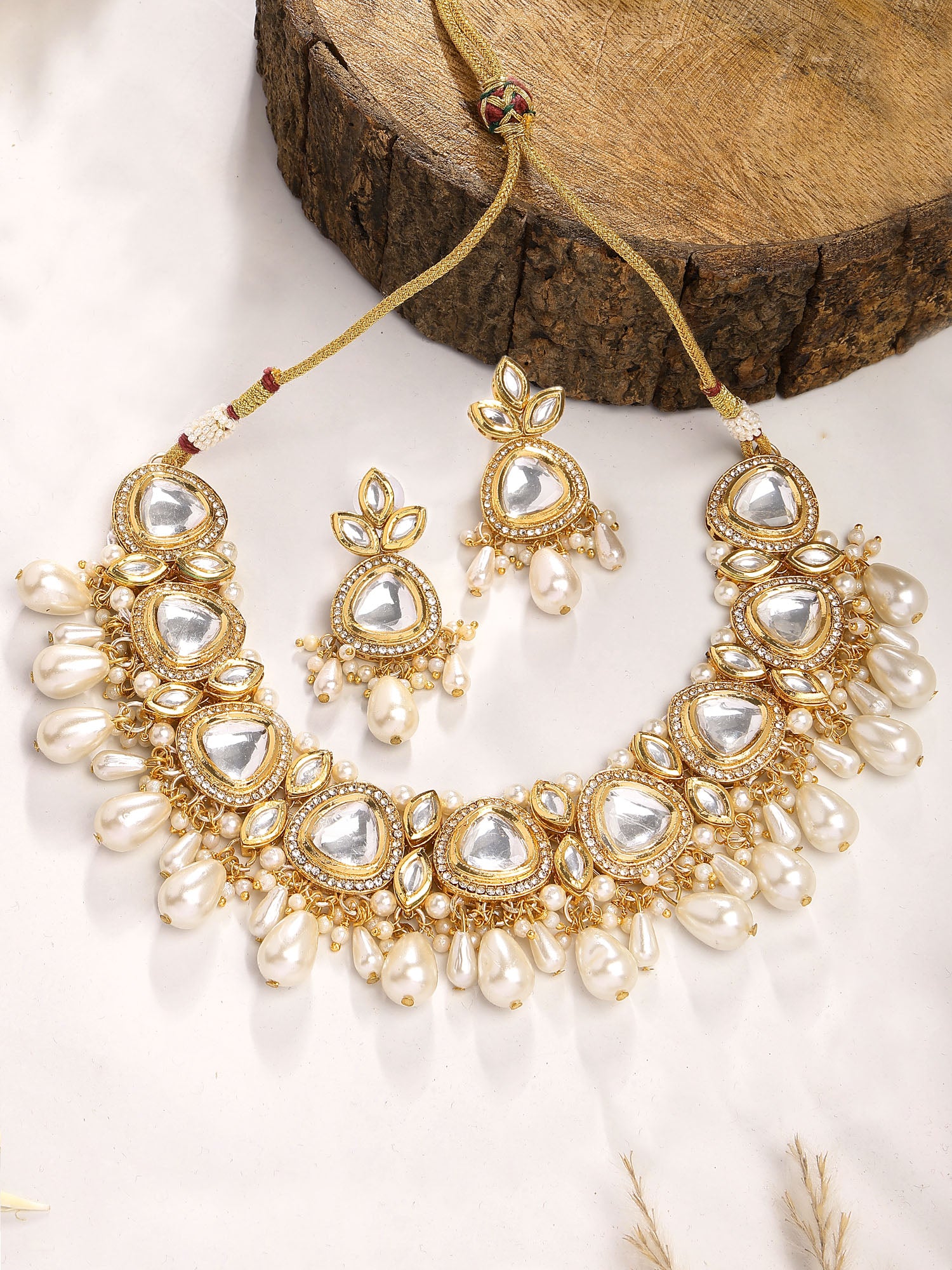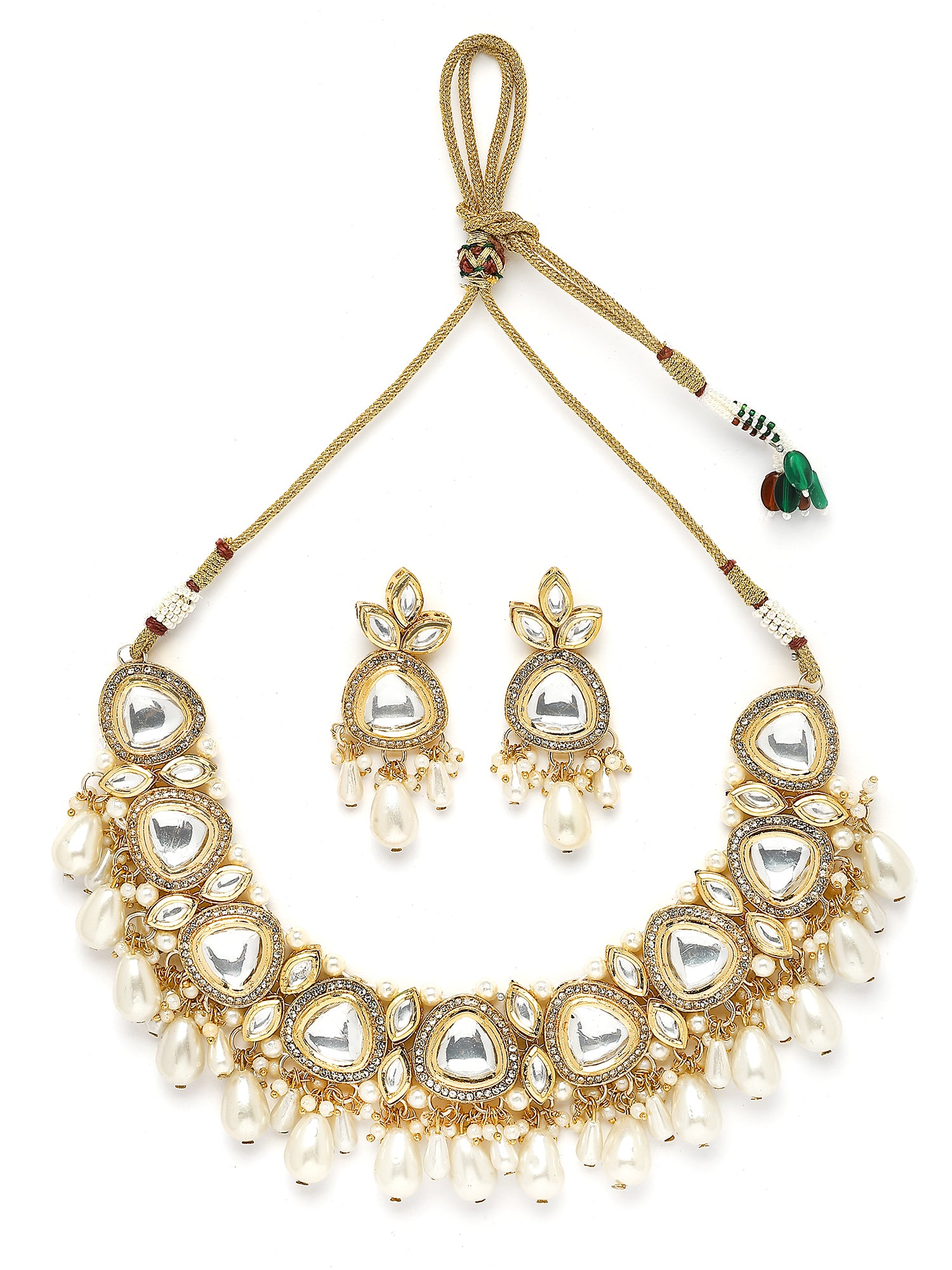 Karatcart Polki Kundan Drop Pearl Design Choker Jewellery Set for Women. Our products are designed with high-quality material and these products are enhanced with plating that are skin-friendly & with love to reach your heart.