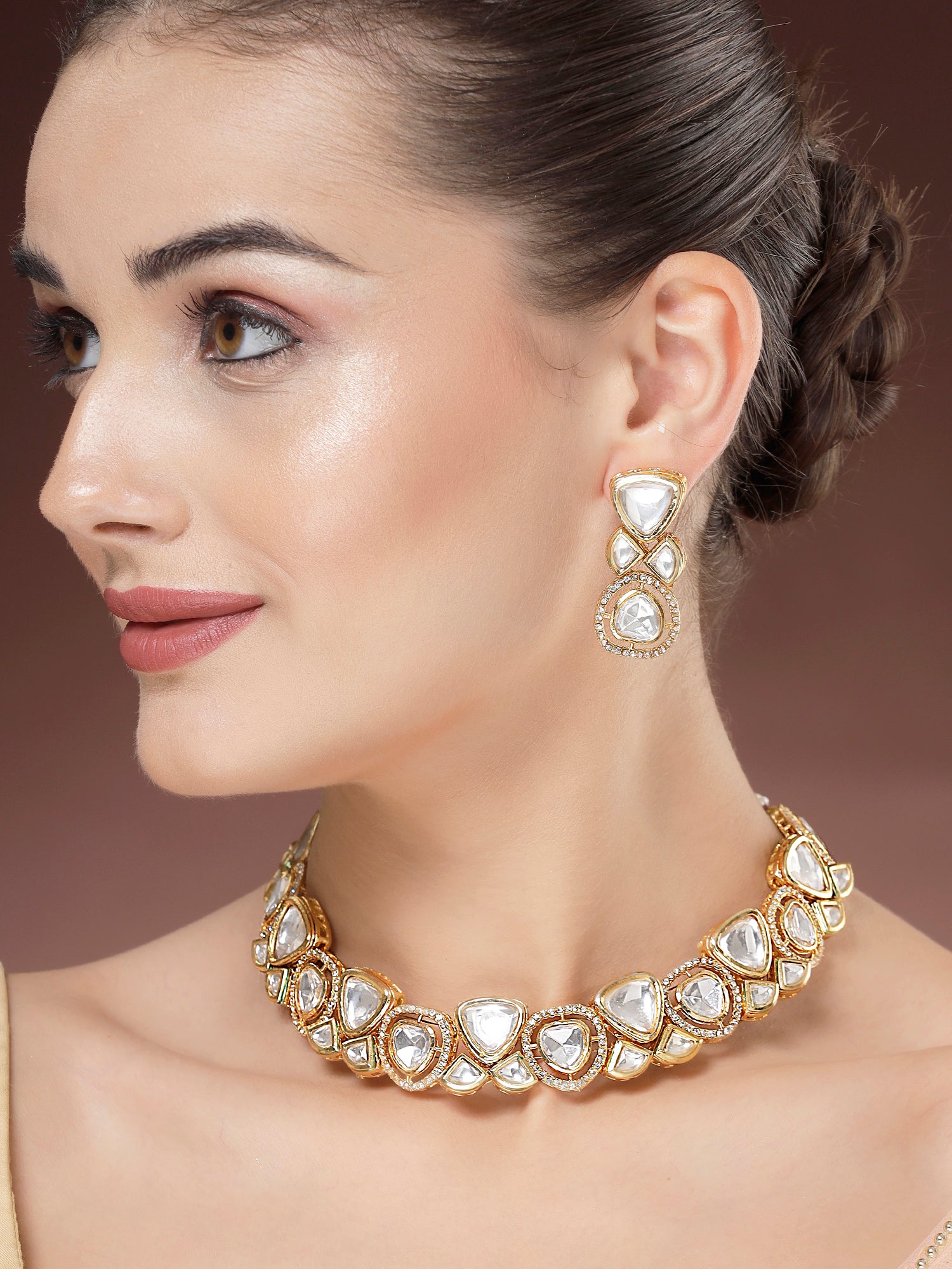 Karatcart Polki Kundan Jewellery Set for Women. Our products are designed with high-quality material and these products are enhanced with plating that are skin-friendly & with love to reach your heart.
