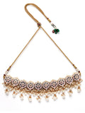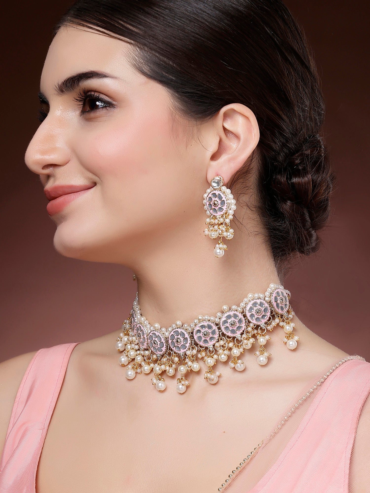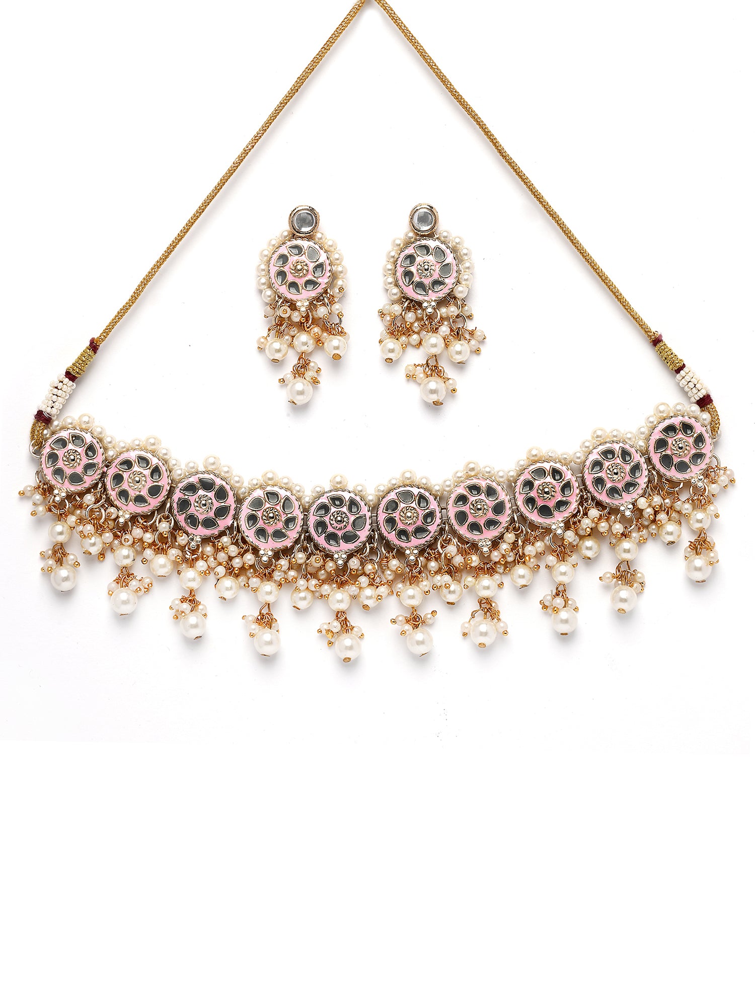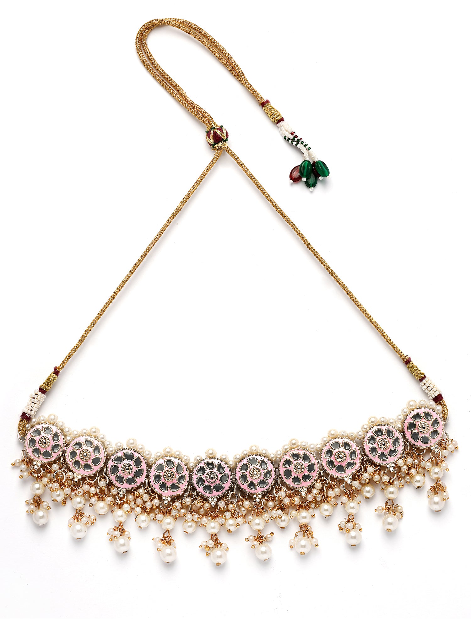 Karatcart Gold Plated Pink & Grey Meena Kundan Choker Necklace Set for Women