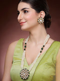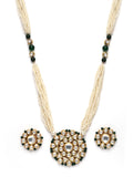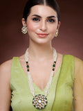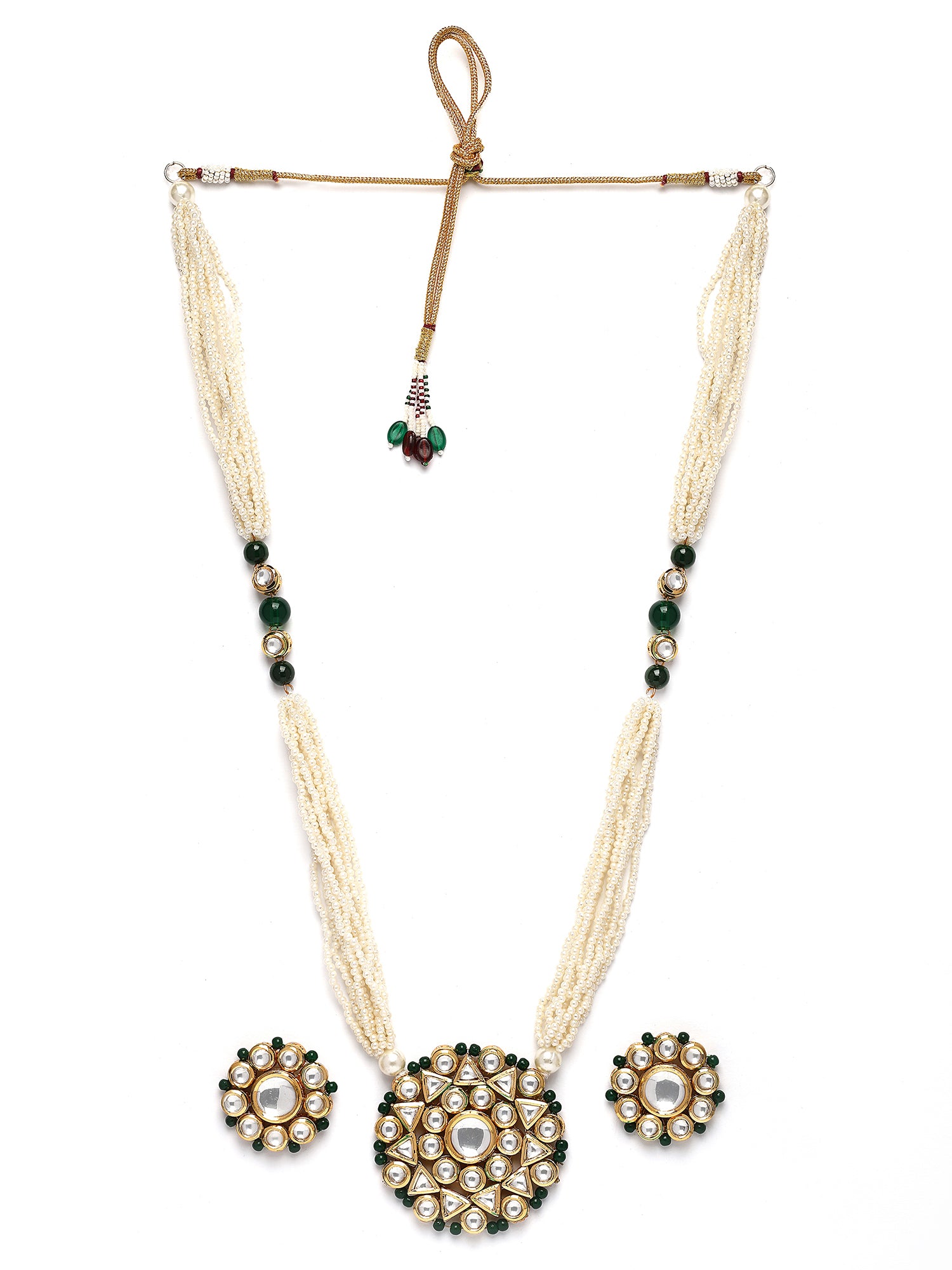 Karatcart Green Beads Polki Kundan Long Rani Haar Necklace Set for Women