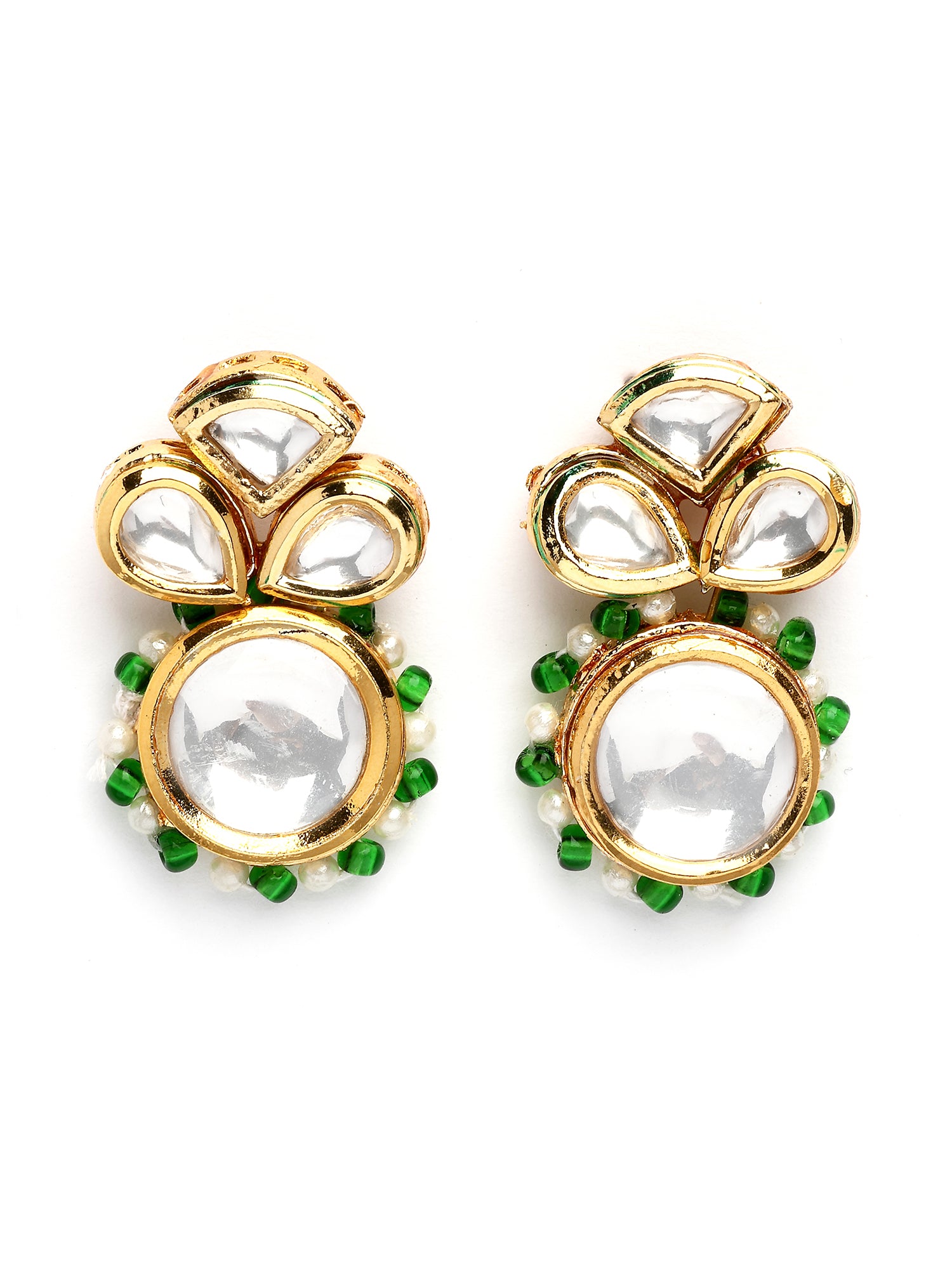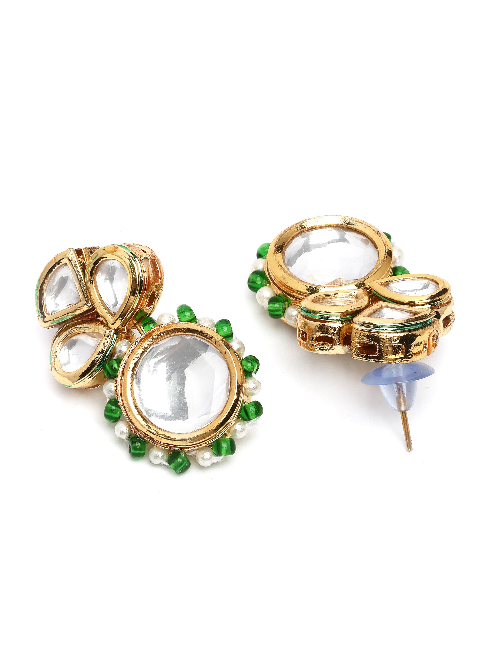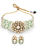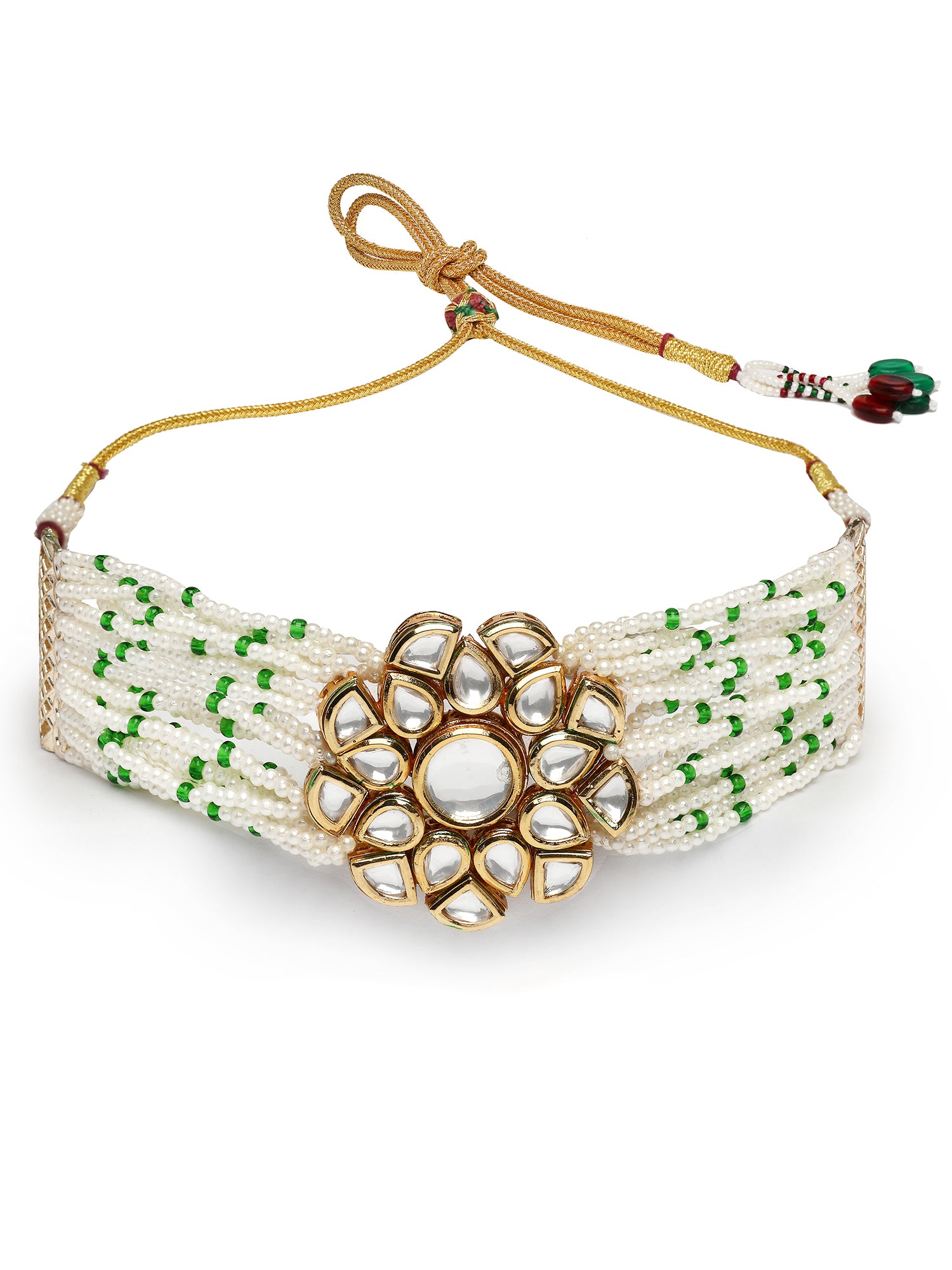 Karatcart Green Beads Polki Kundan Floral Design Choker Necklace Set for Women