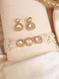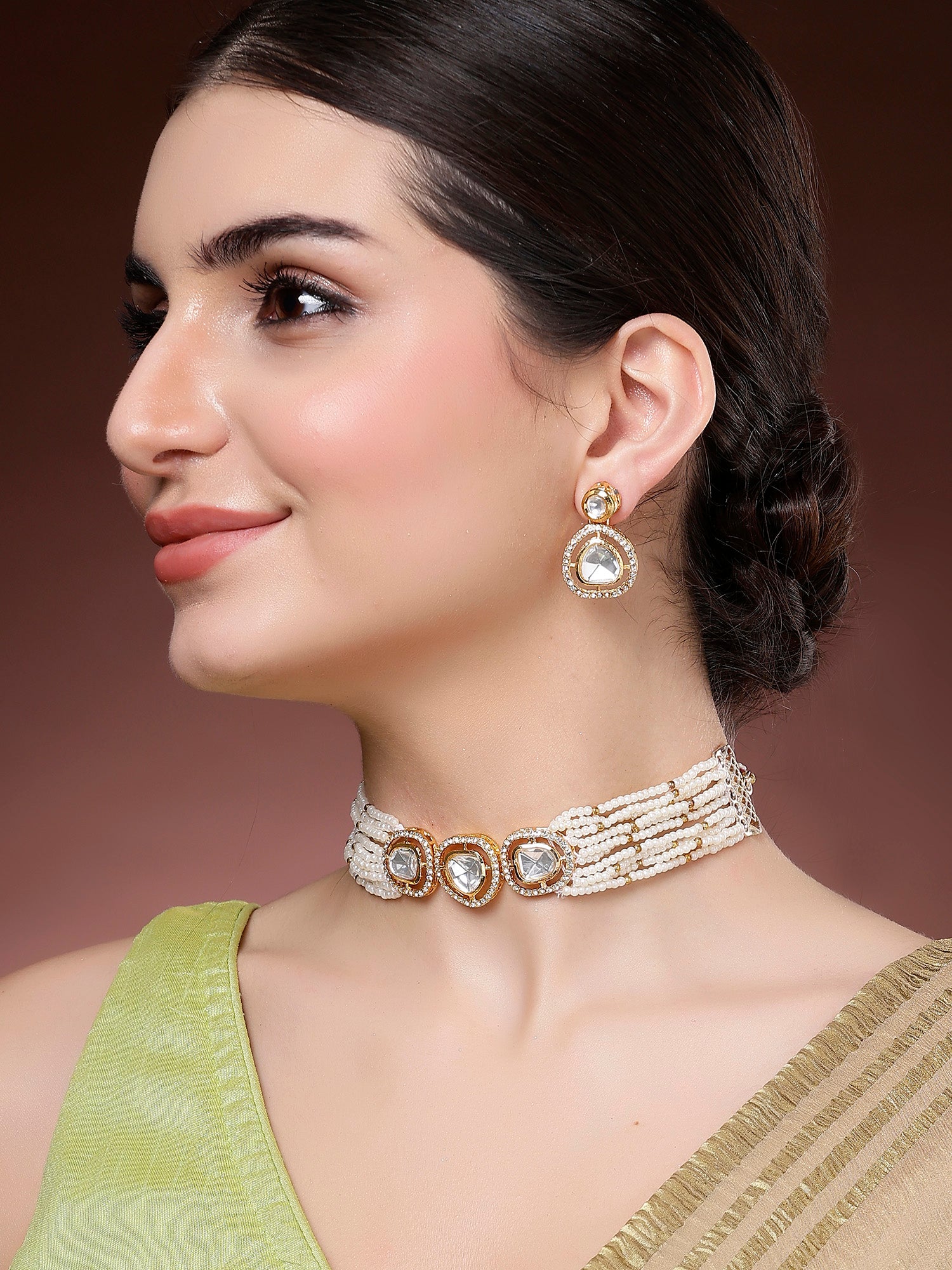 Karatcart Lightweight Polki Kundan Beaded Choker Necklace Set for Women