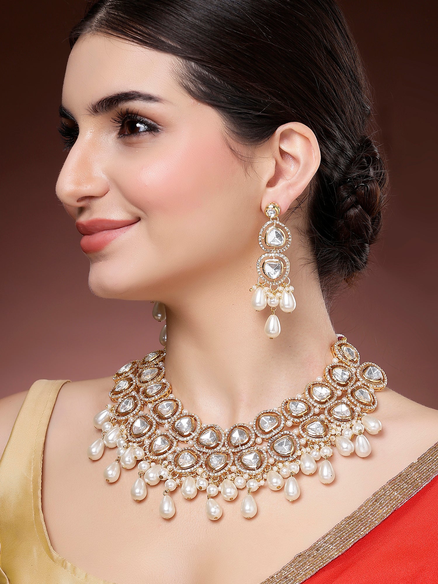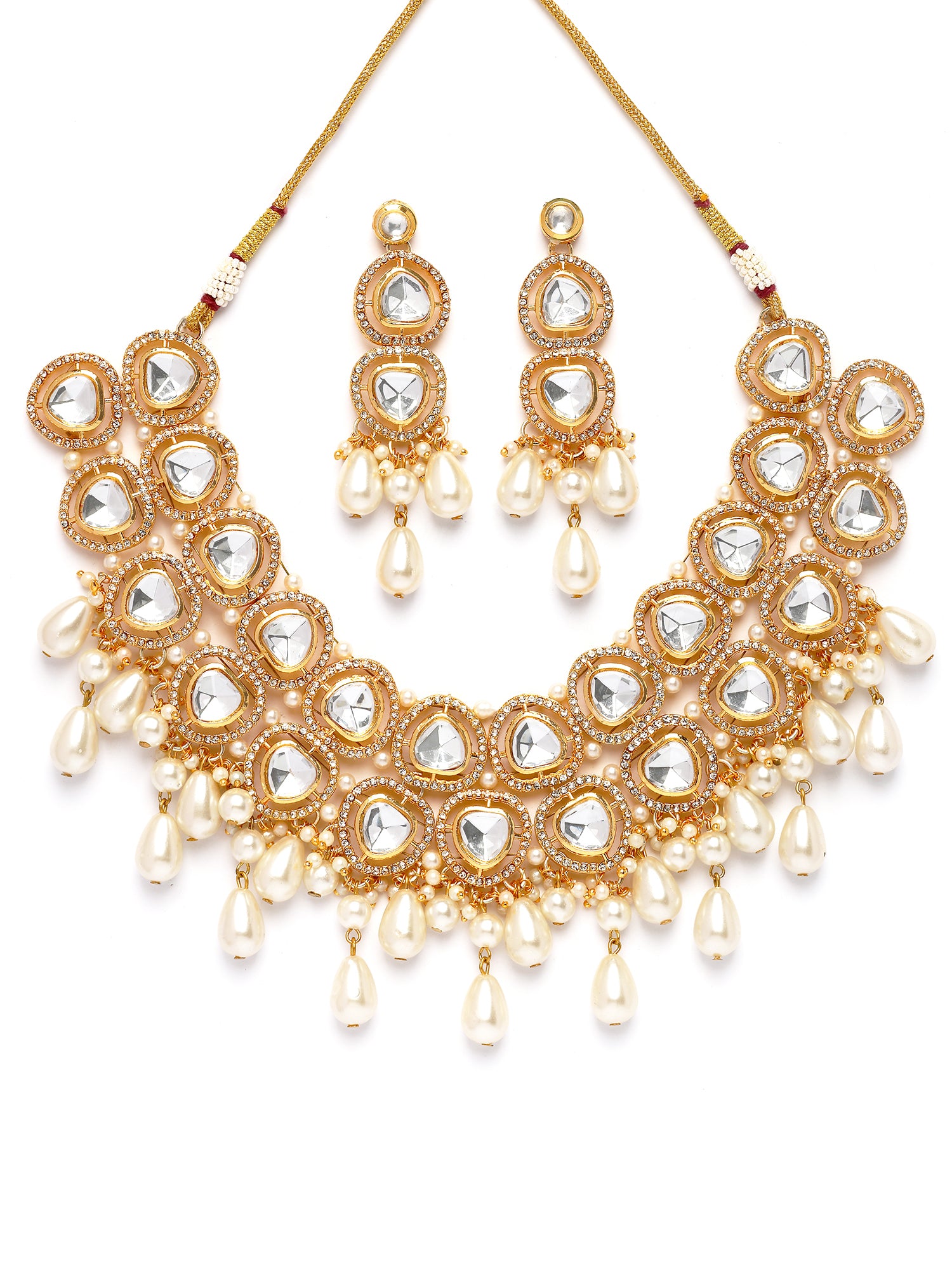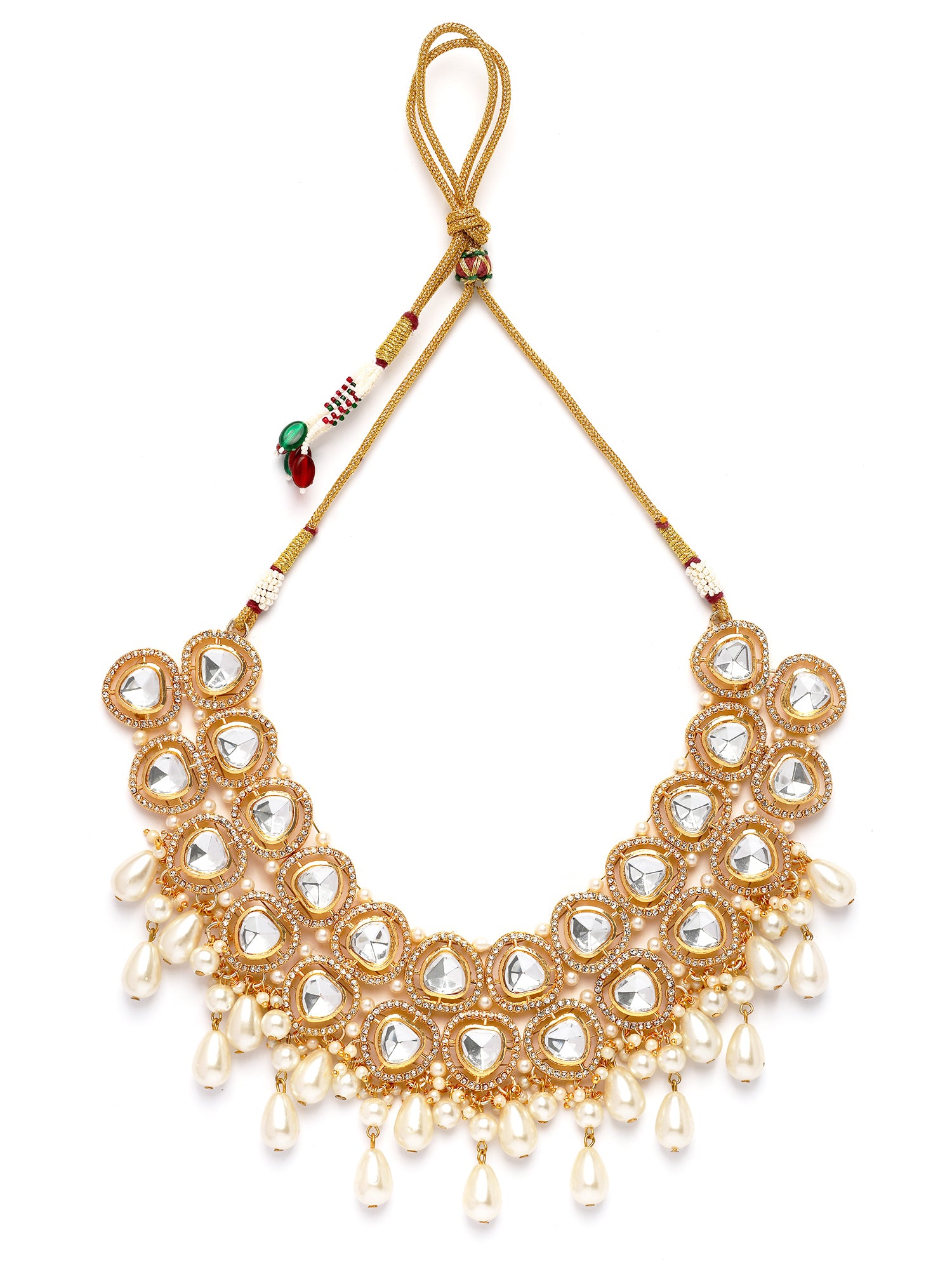 Karatcart Luxury Gold Plated Polki Kundan Handcrafted Necklace Set for Women