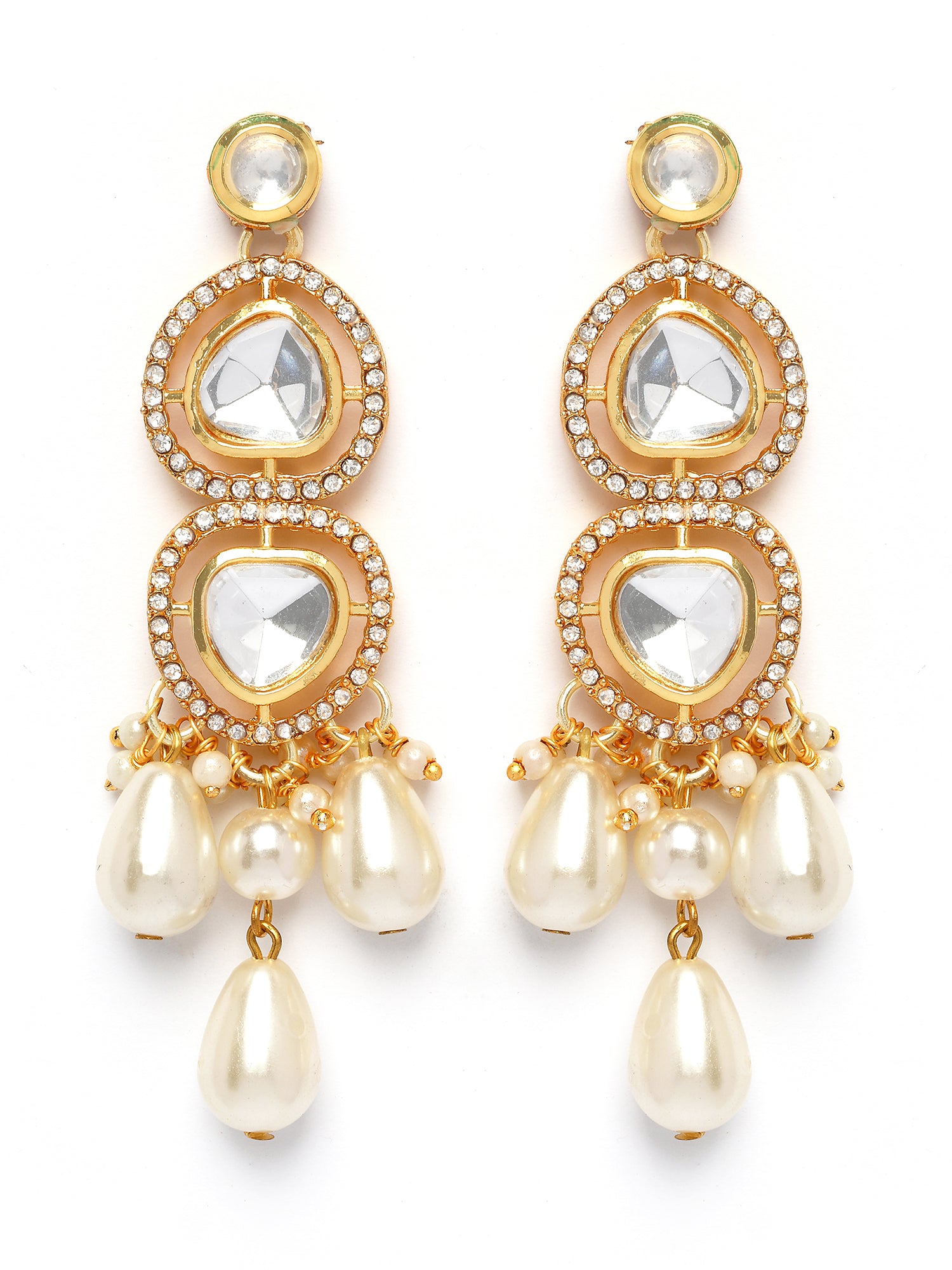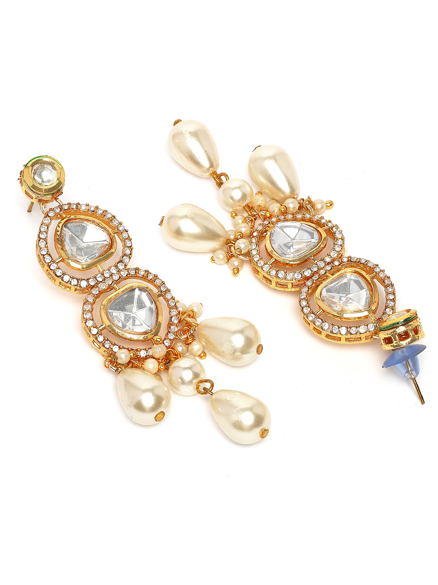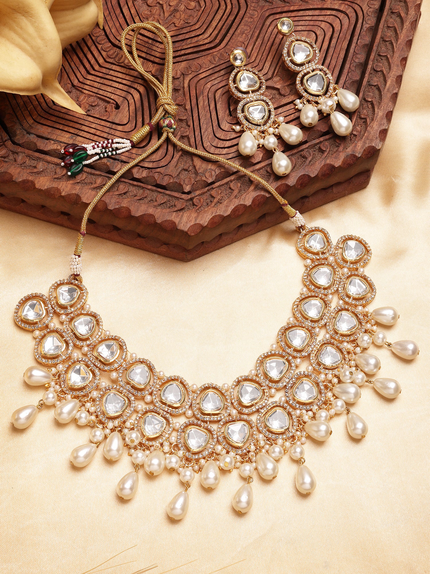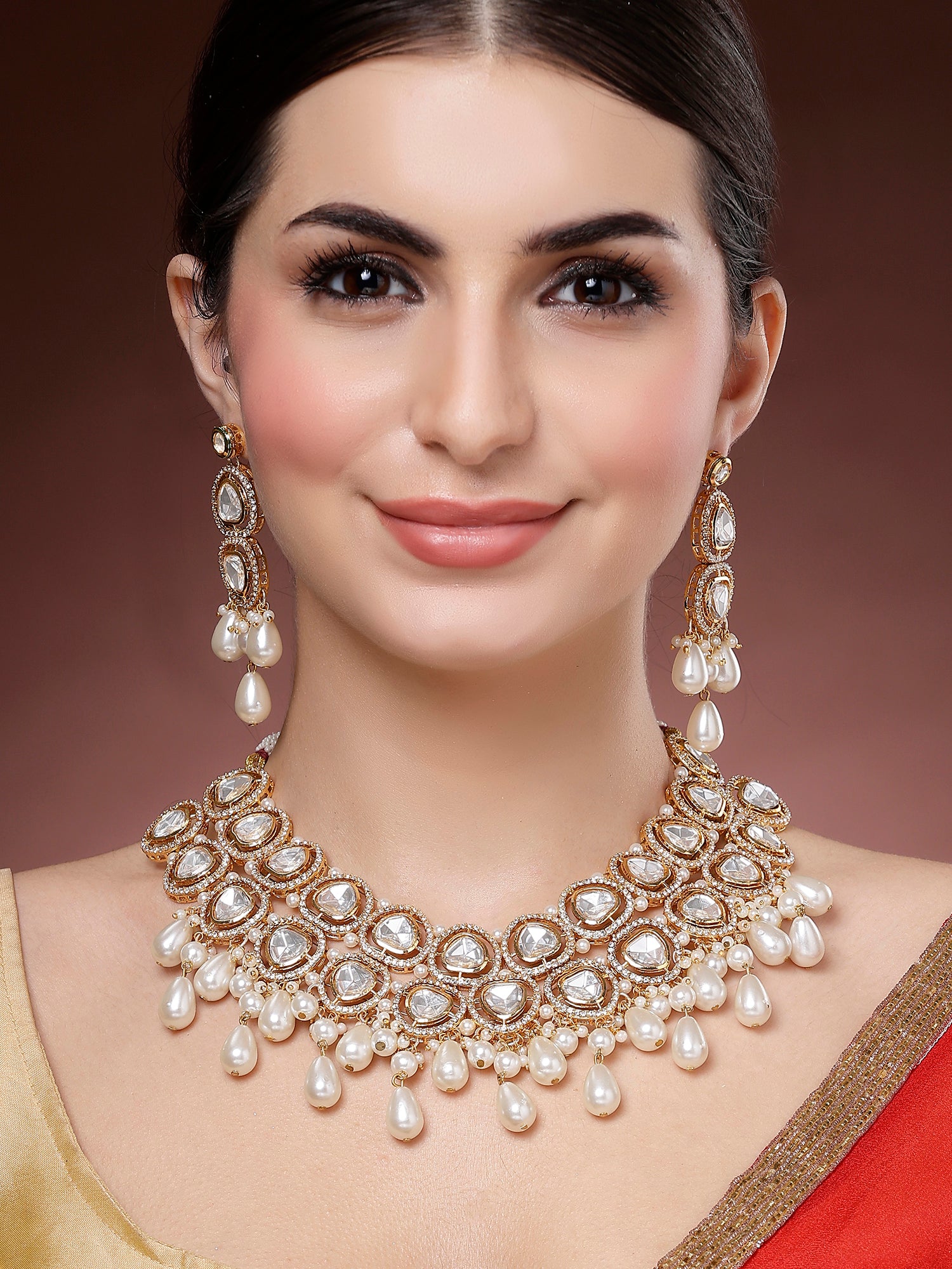 Karatcart Luxury Gold Plated Polki Kundan Handcrafted Necklace Set for Women