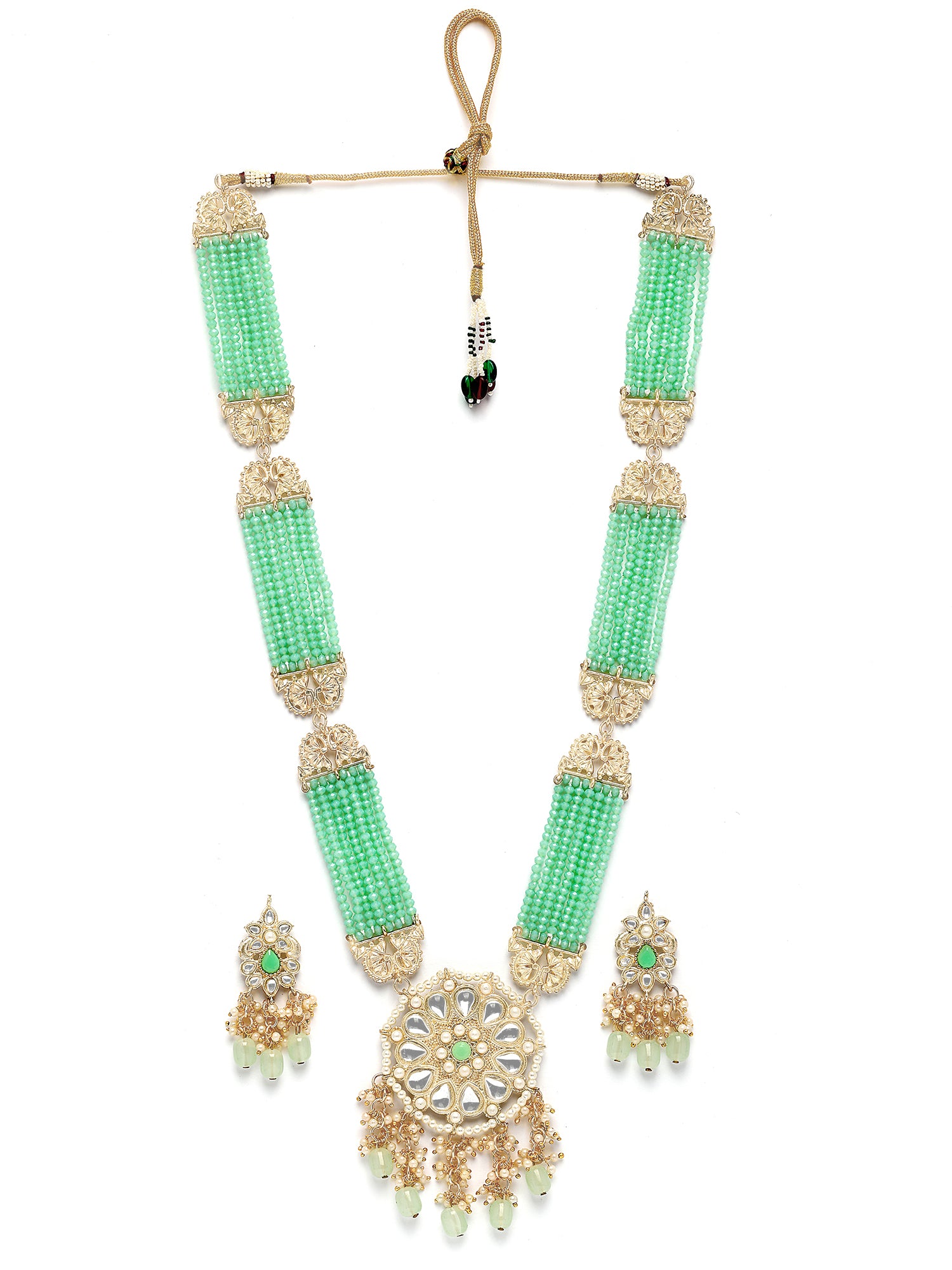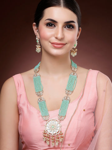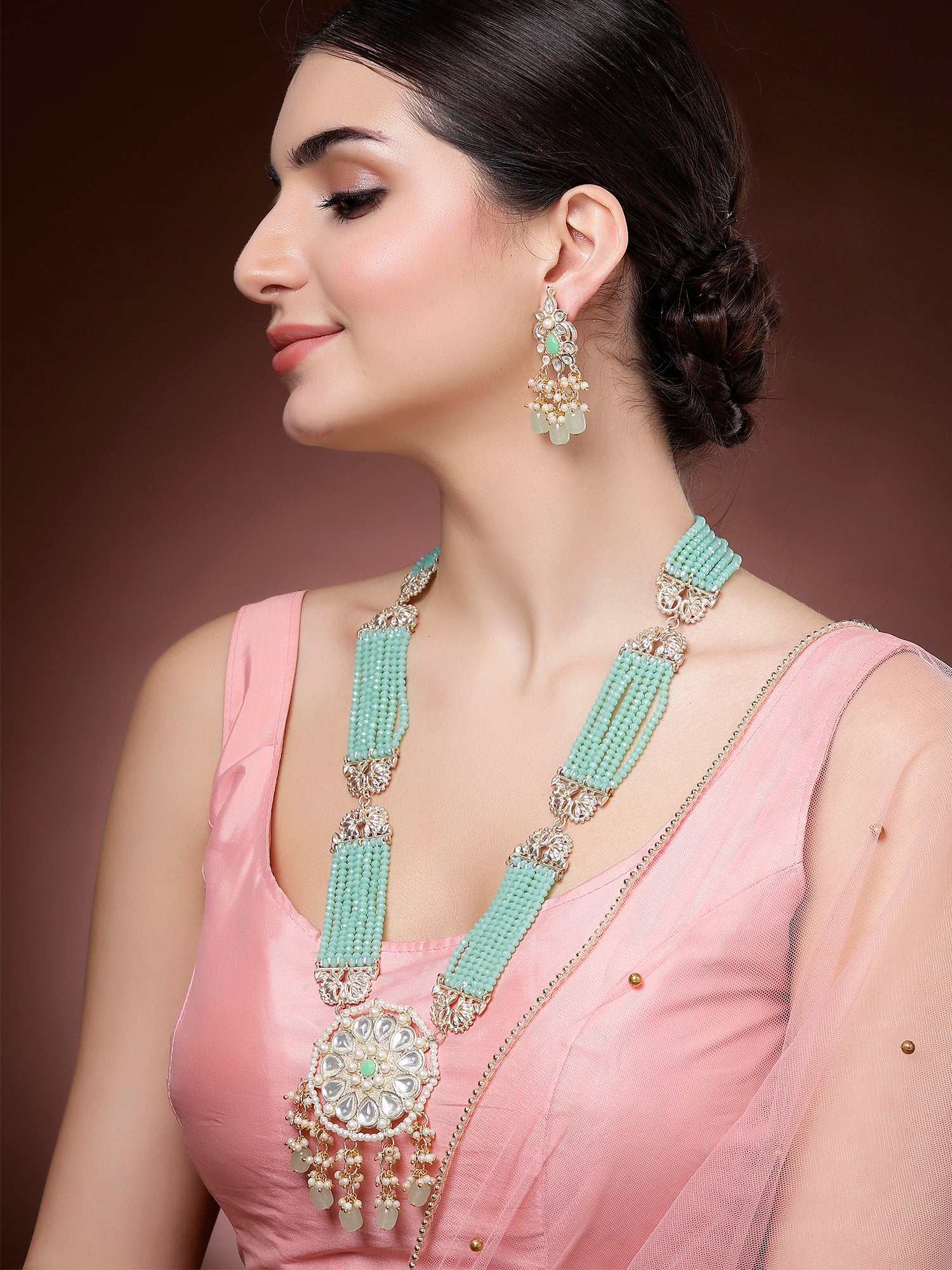Karatcart Light Green Crystal Long Kundan Rani Haar Necklace Set for Women