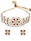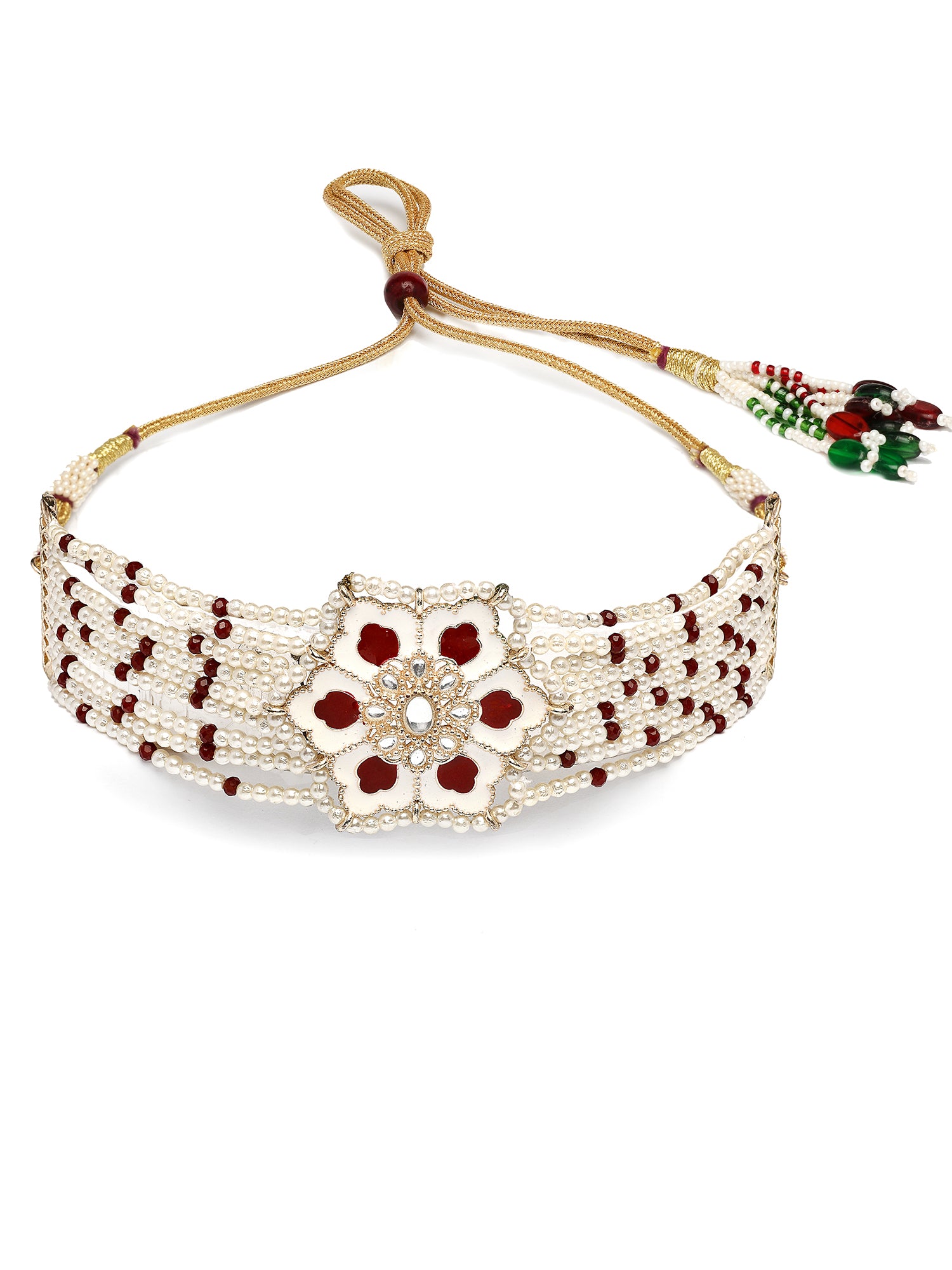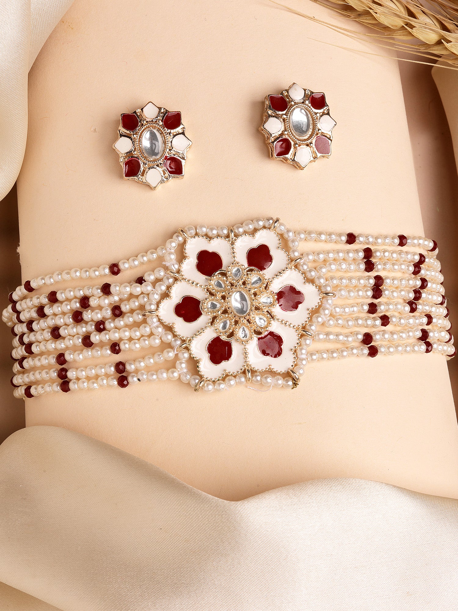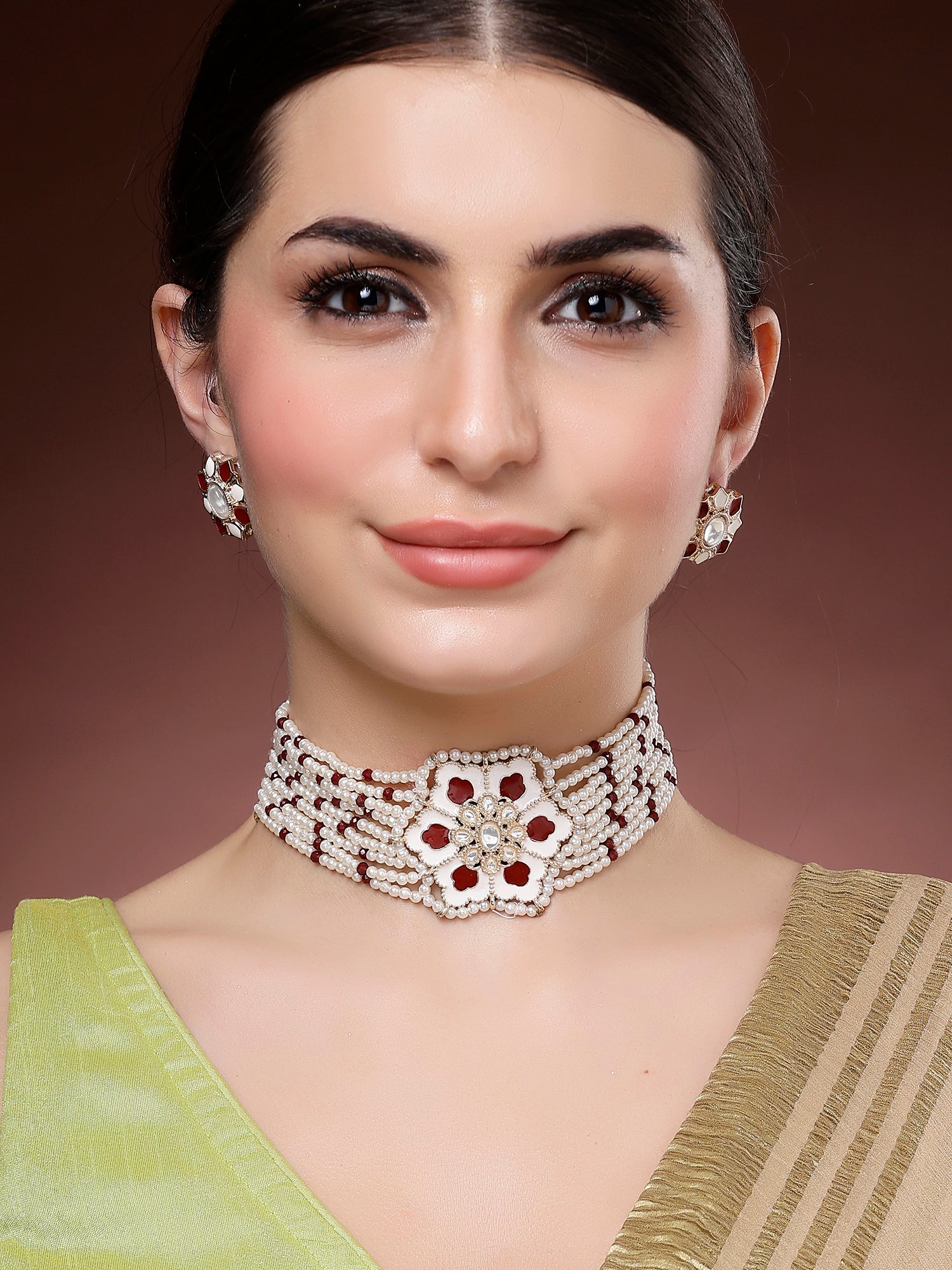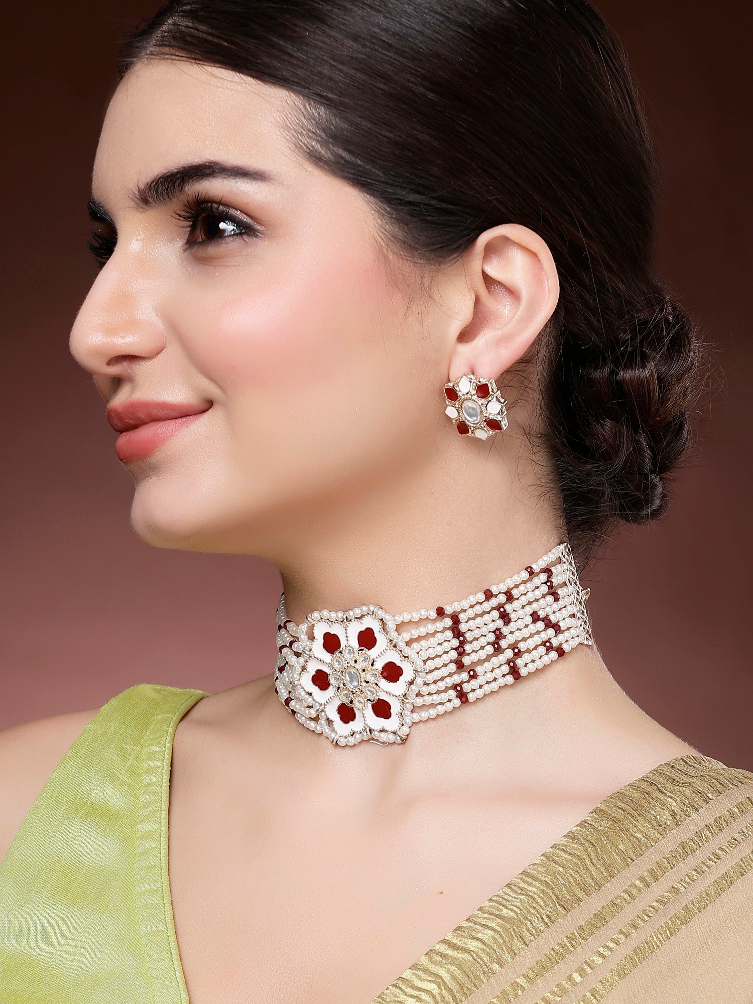 Karatcart White and Red Beaded Meenakari Choker Necklace Set for Women
