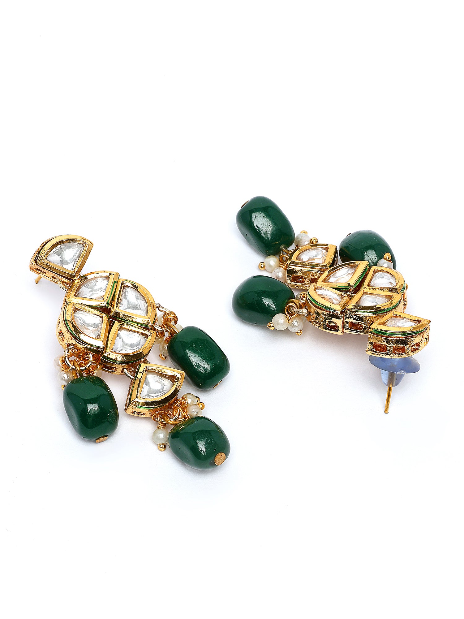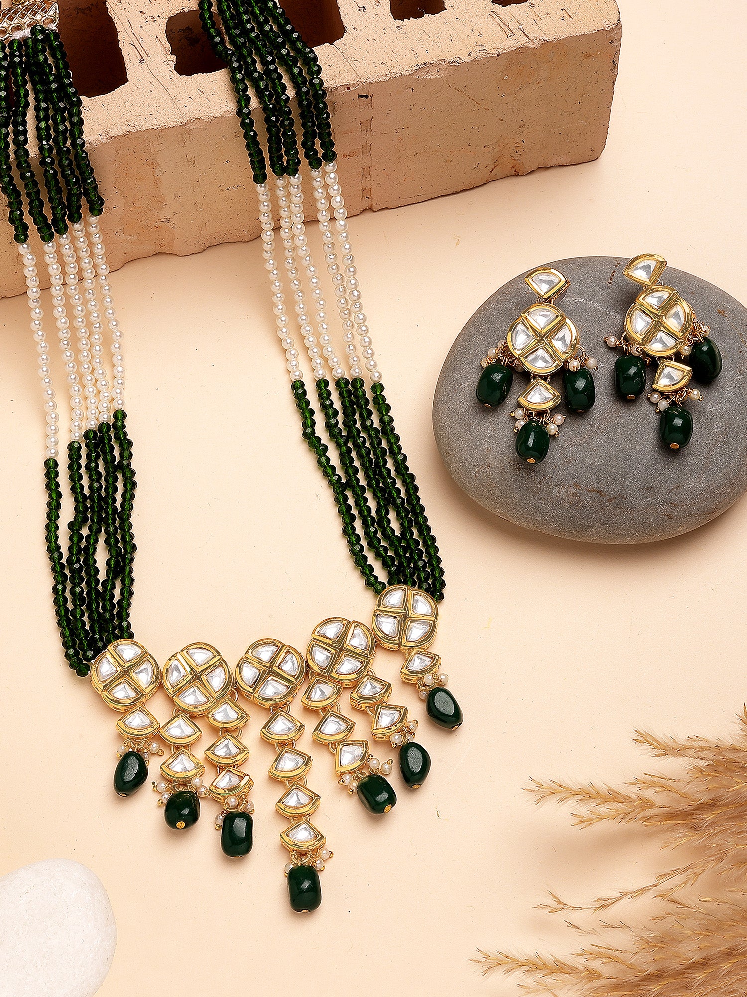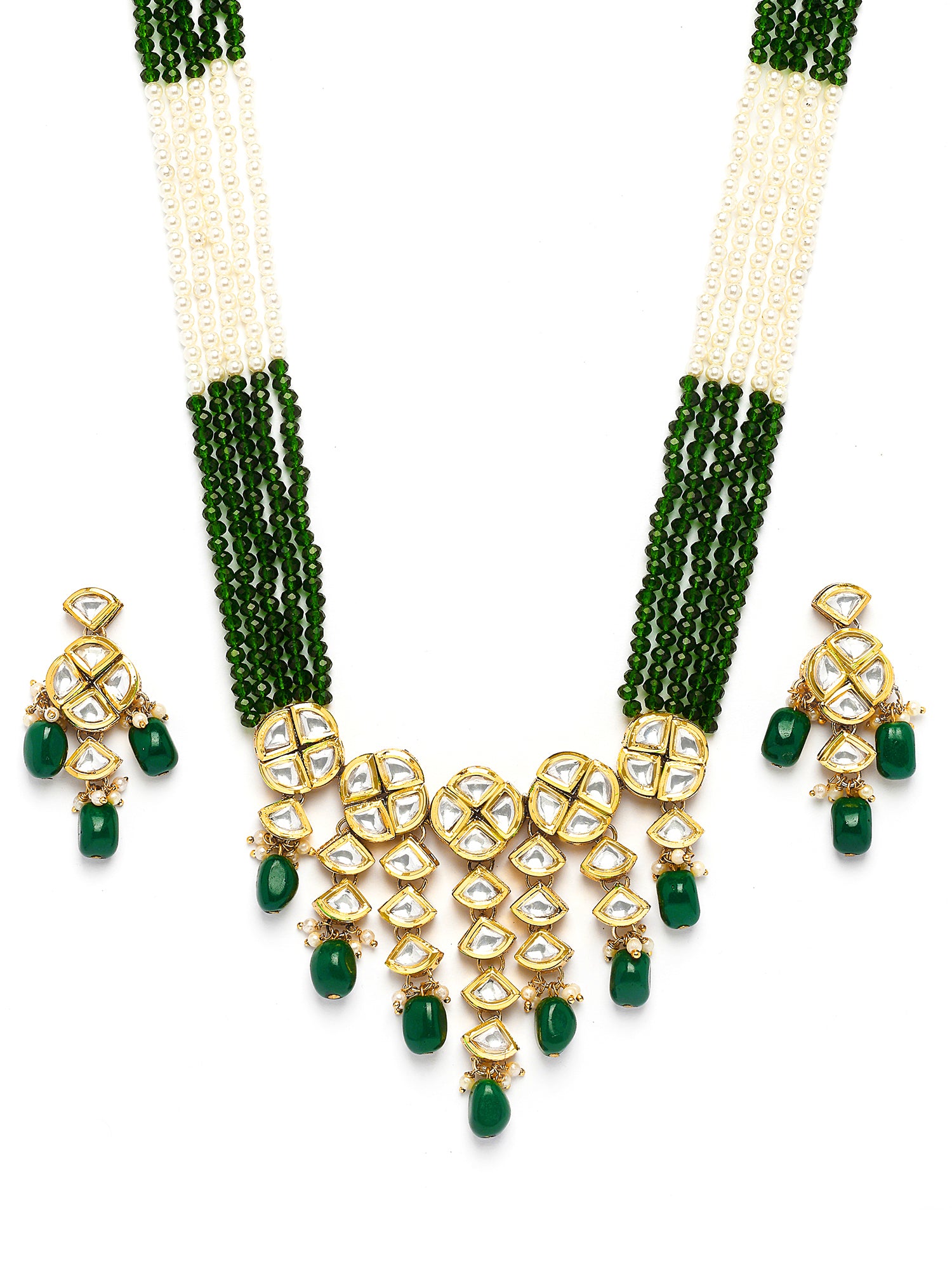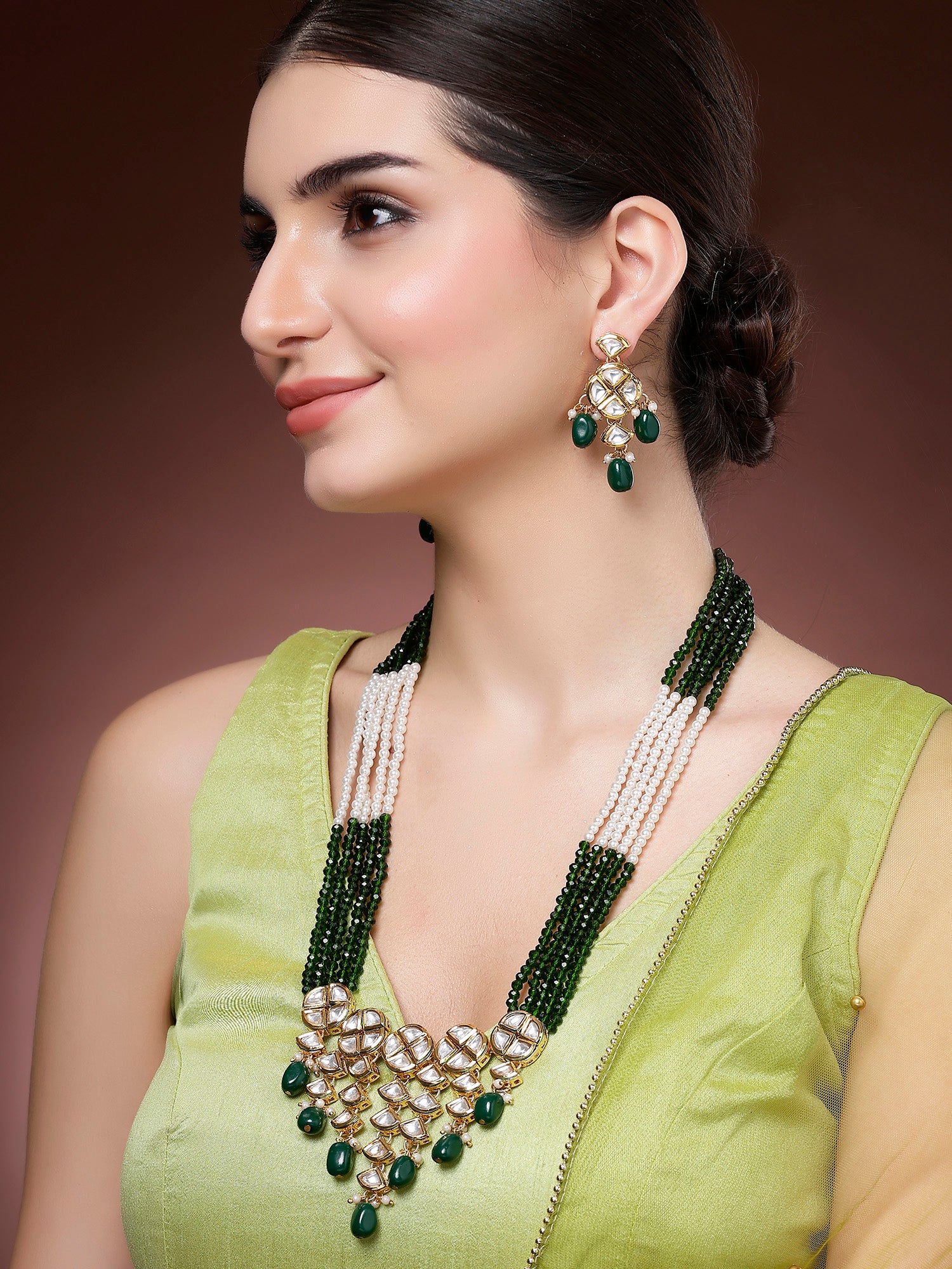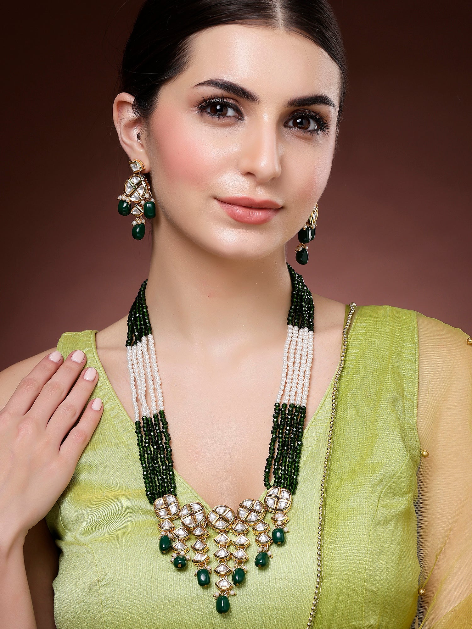 Karatcart Green Crystal Ploki Kundan Rani Haar Necklace Set for Women