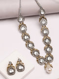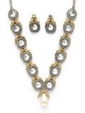 Karatcart Gold Plated Peacock Studded Black Polki Kundan Necklace Set for Women