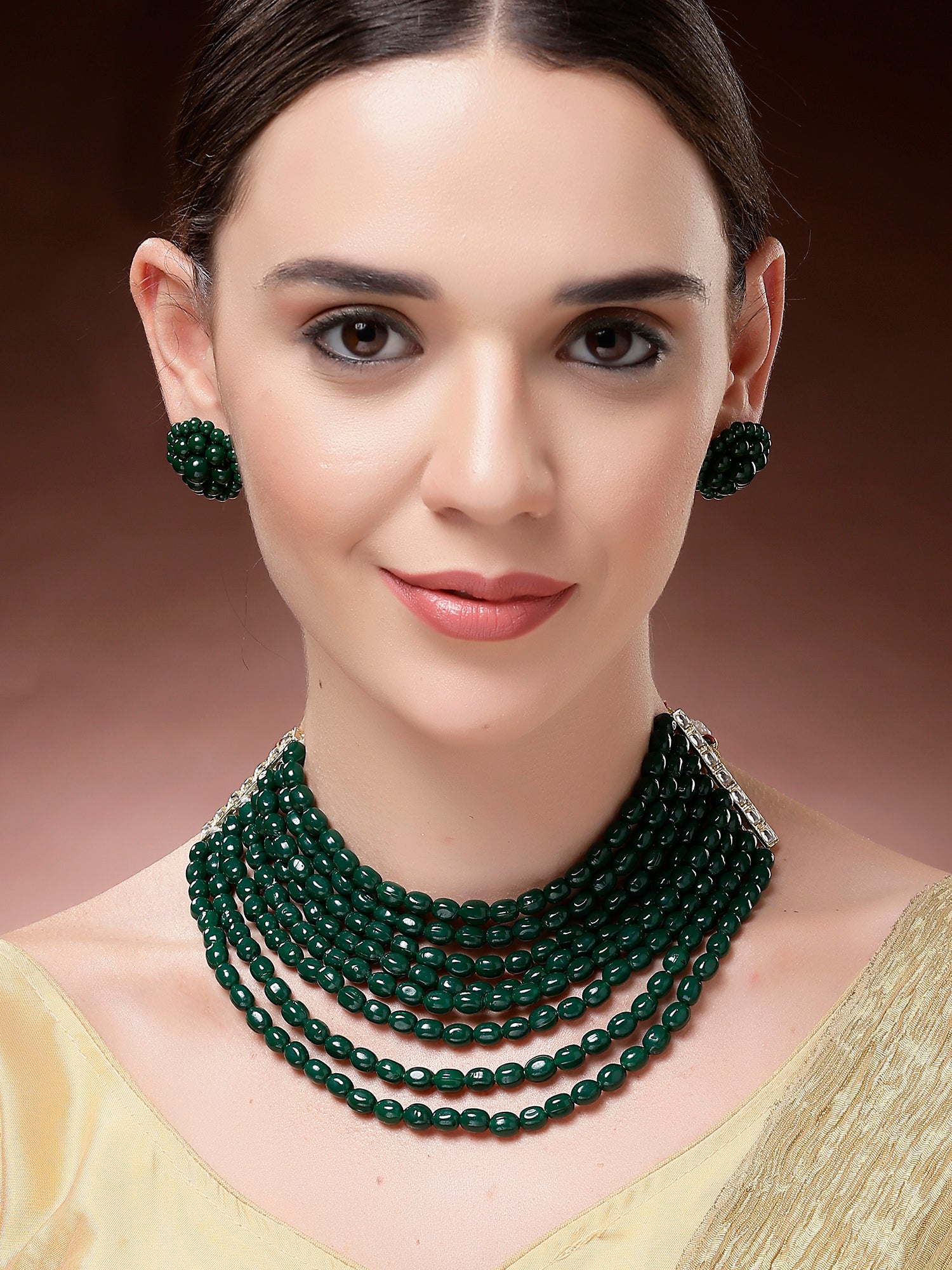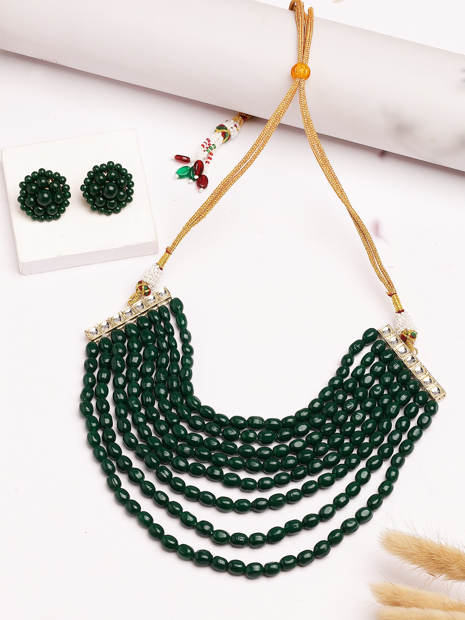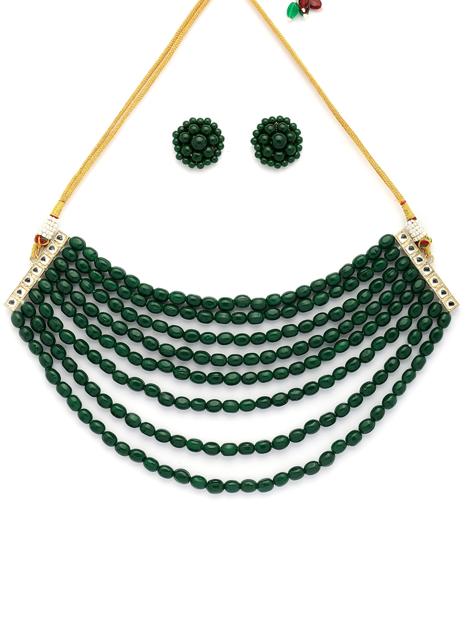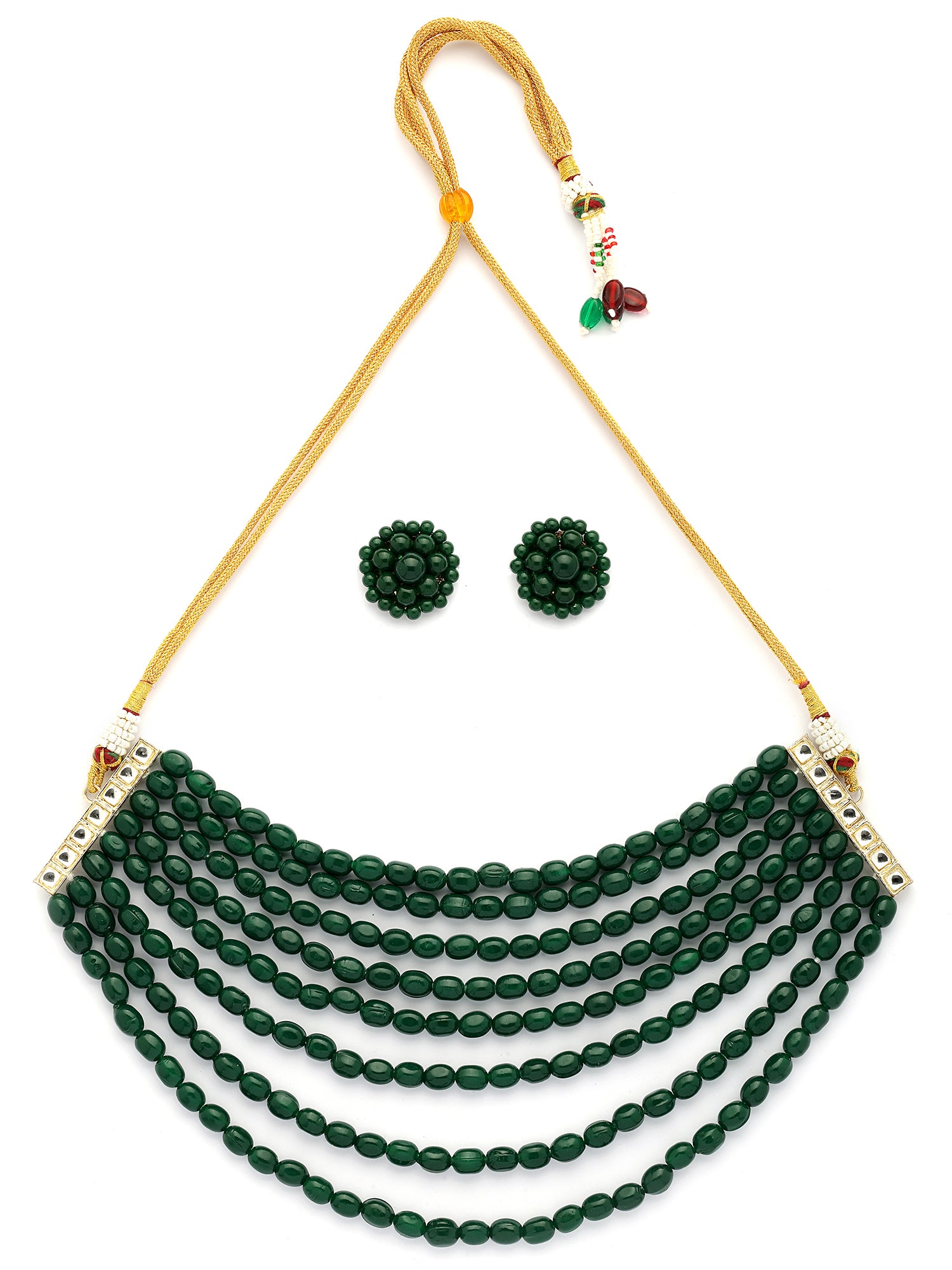 Karatcart Green Tumble Graduating Kundan Choker Necklace Set for Women