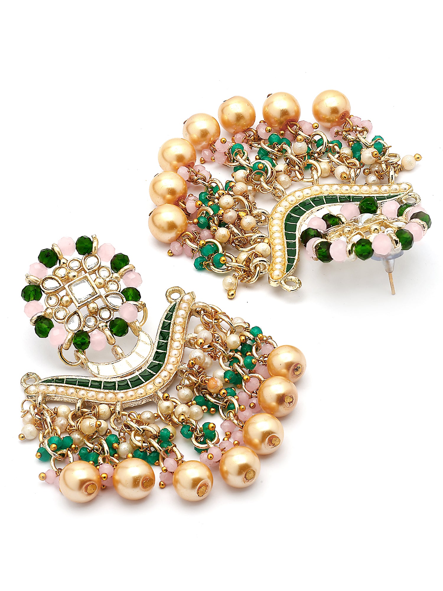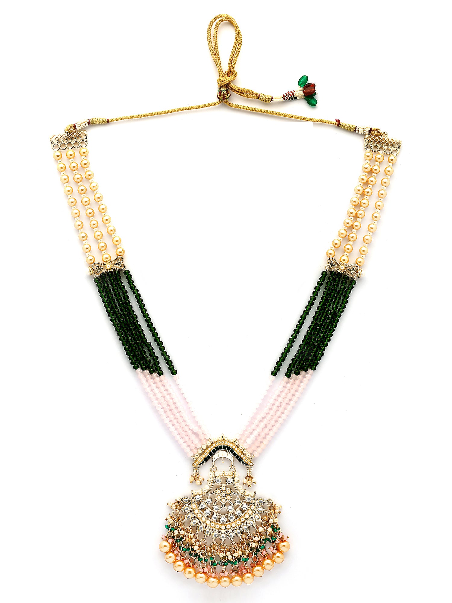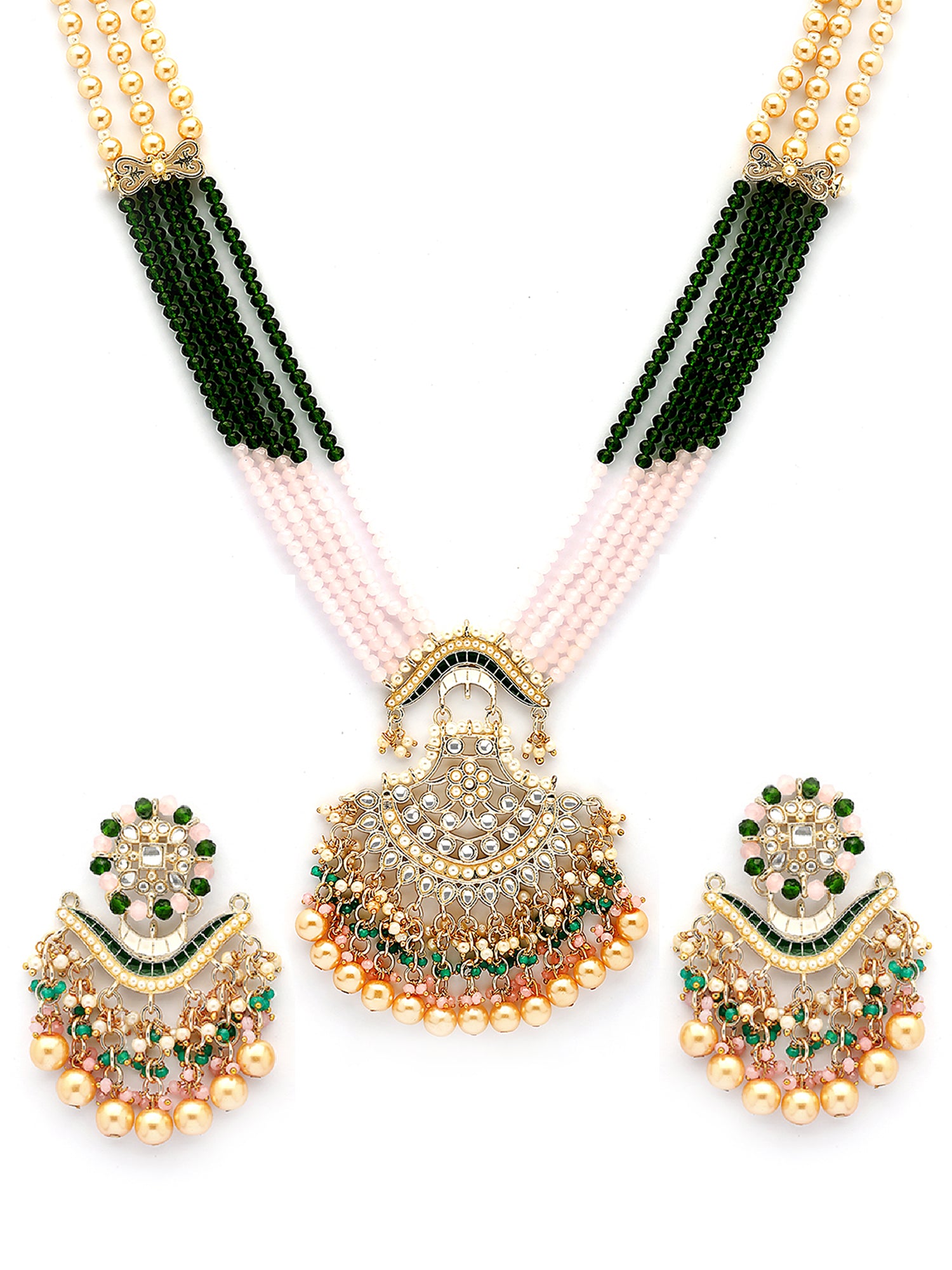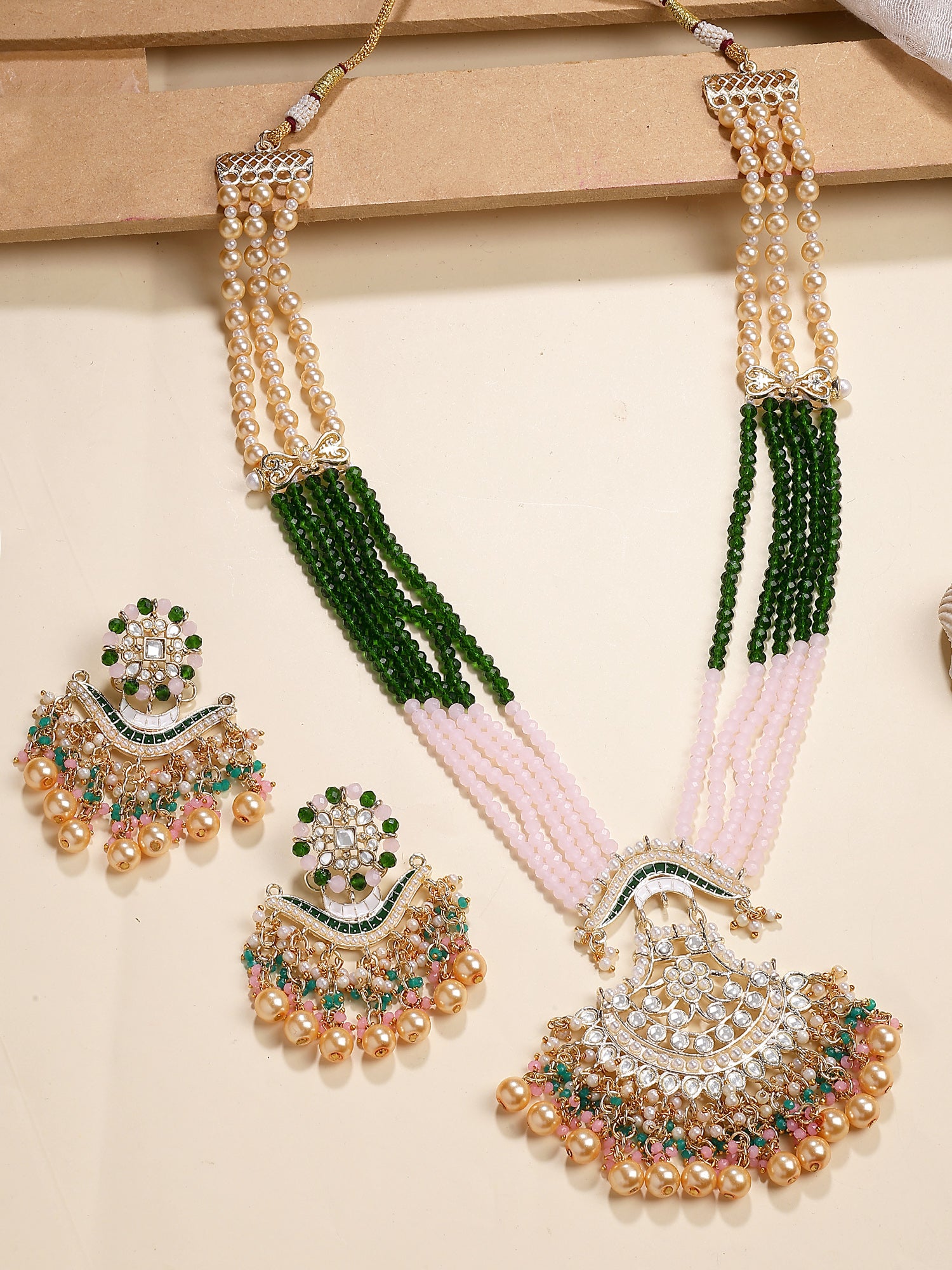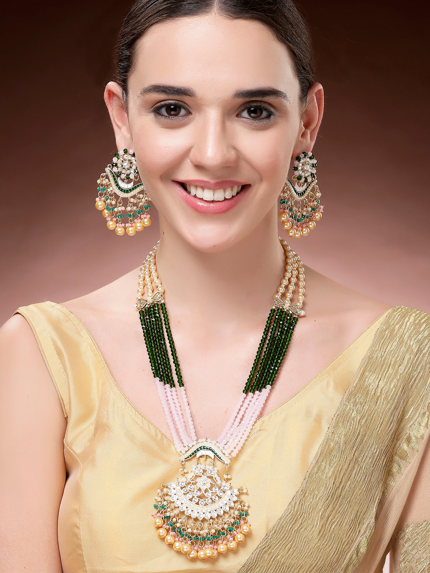 Karatcart Green and Pink Crystal Rani Haar Neckalce Set for Women