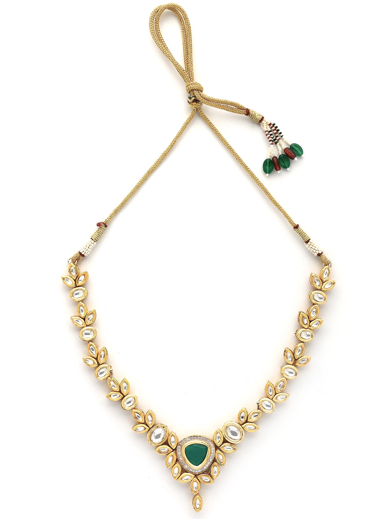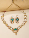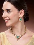 Karatcart Gold Plated Green Polki Tumble Necklace Set for Women