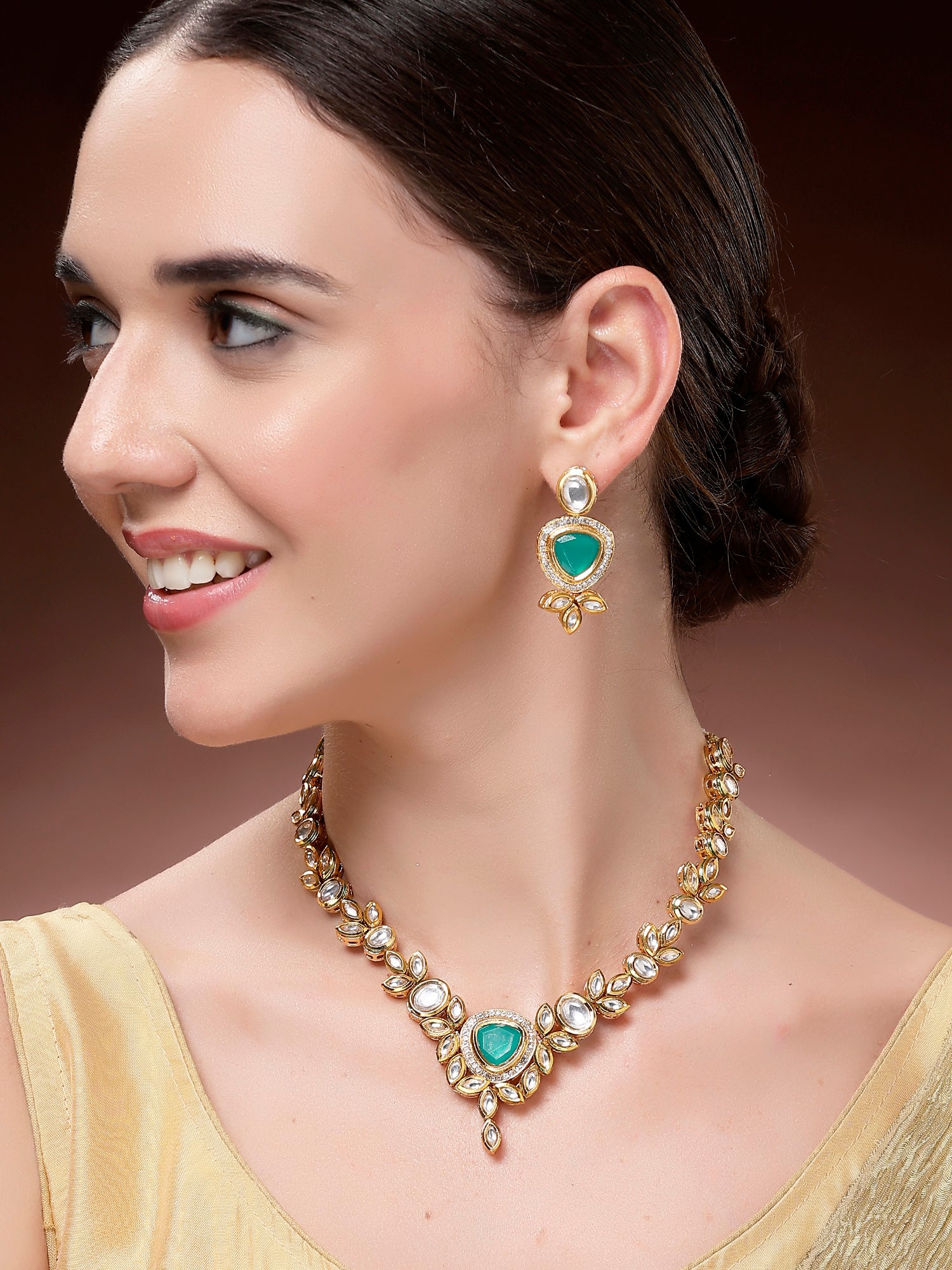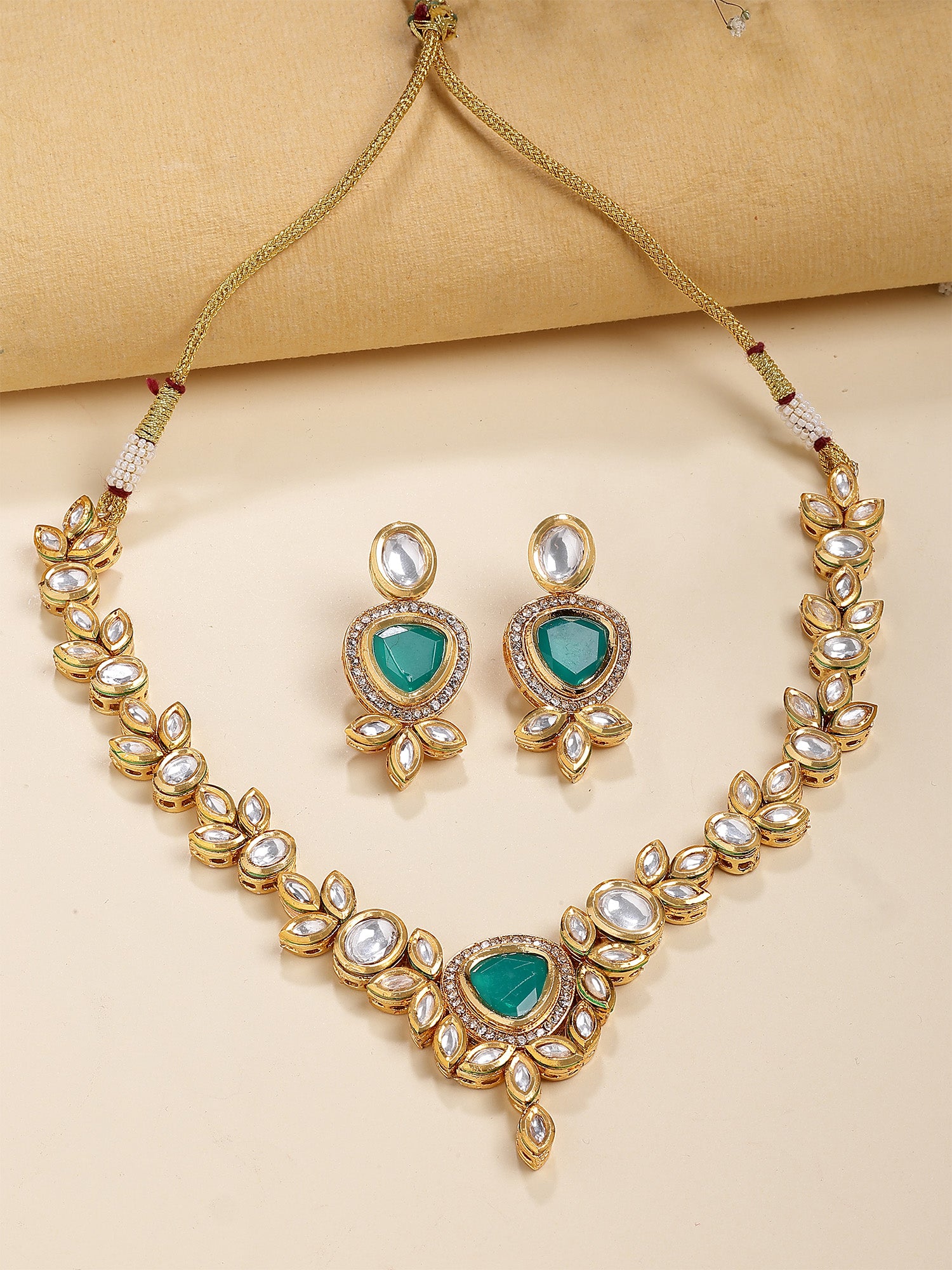 - This is a Green Jewellery Set by Brand Karatcart which has Polki Kundan stones. This is Gold Plated. We at KARATCART understand your desire to look the best on any day & we thrive in making any day an occasion. Every individual at Karatcart carries a passion for jewellery and it reflects in our beautiful designs as well as in our breathtaking craftsmanship. We create unique jewellery so you can make heads turn.