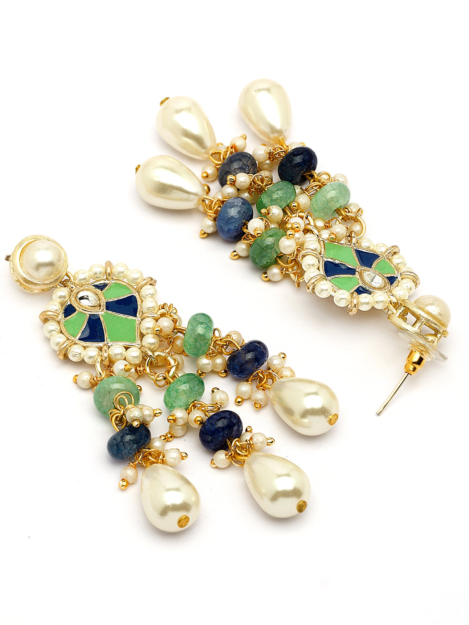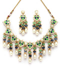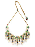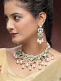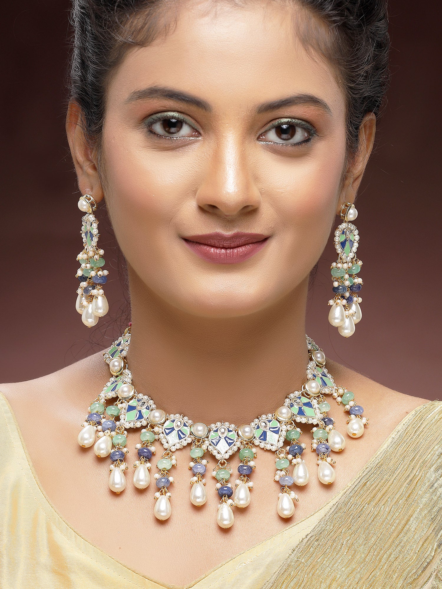 KARATCART Royal Look Gold-Plated Blue and Lime Green Meena Choker Necklace Set for Women