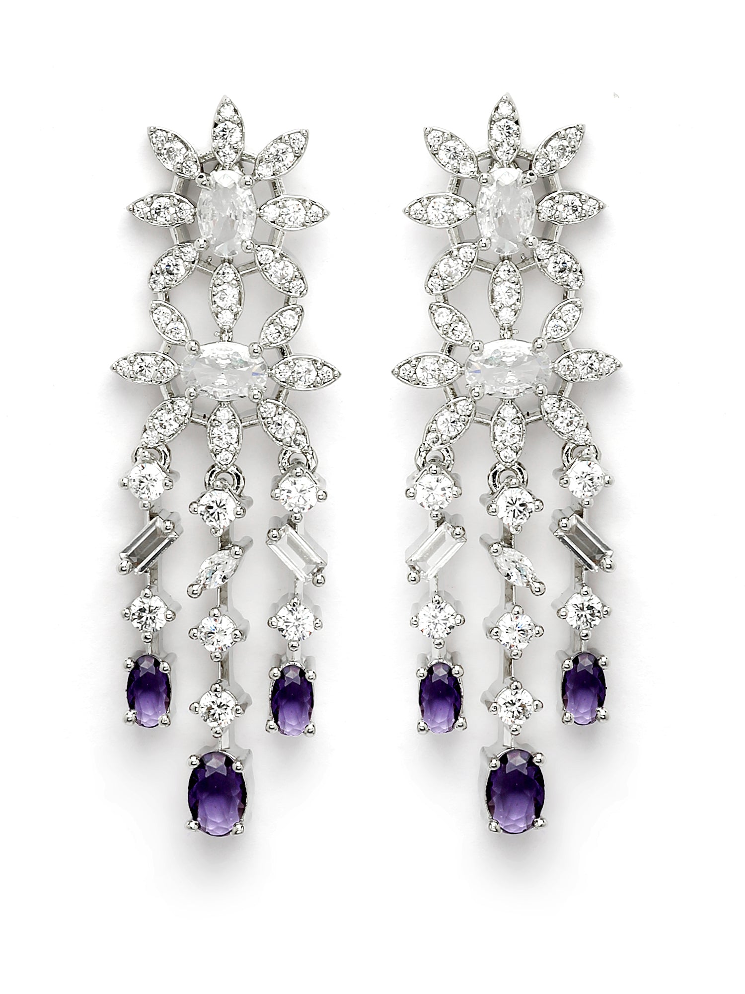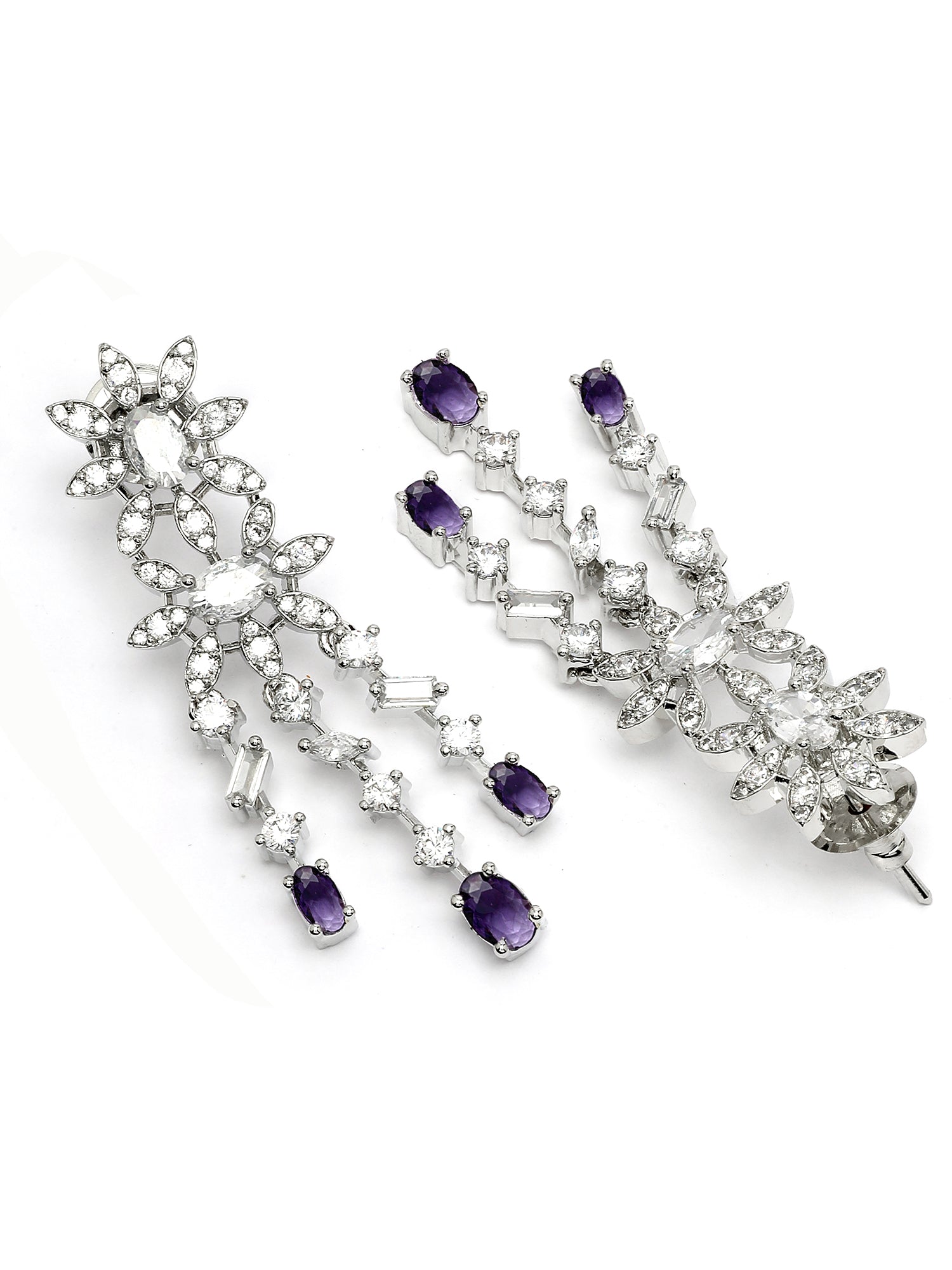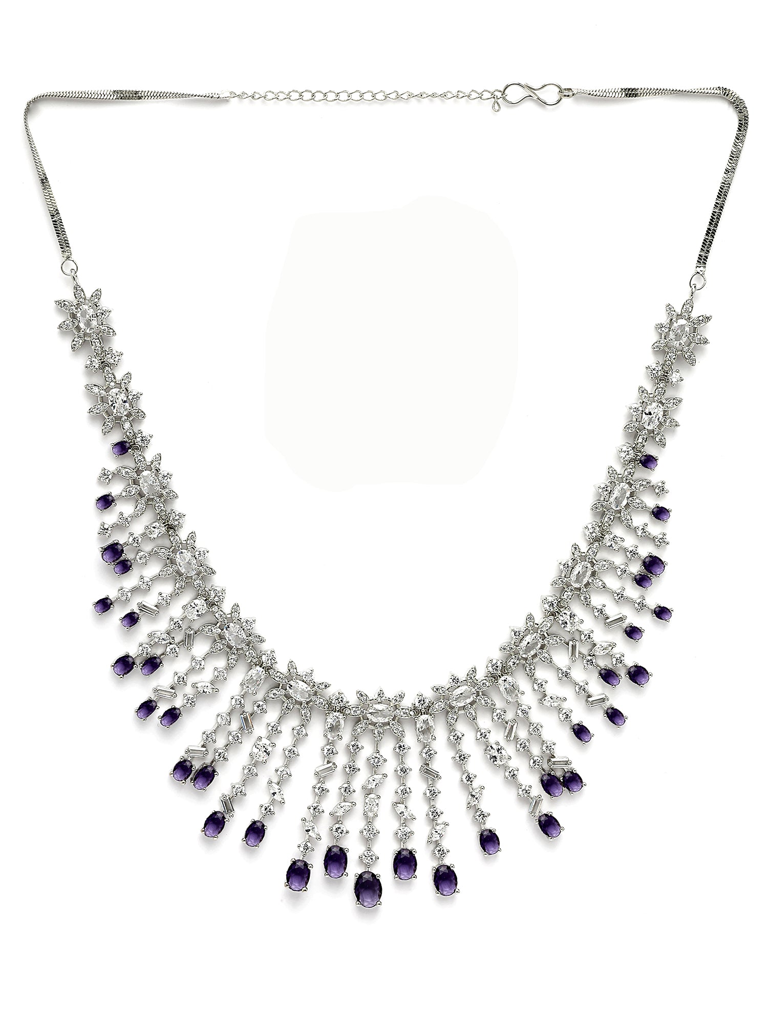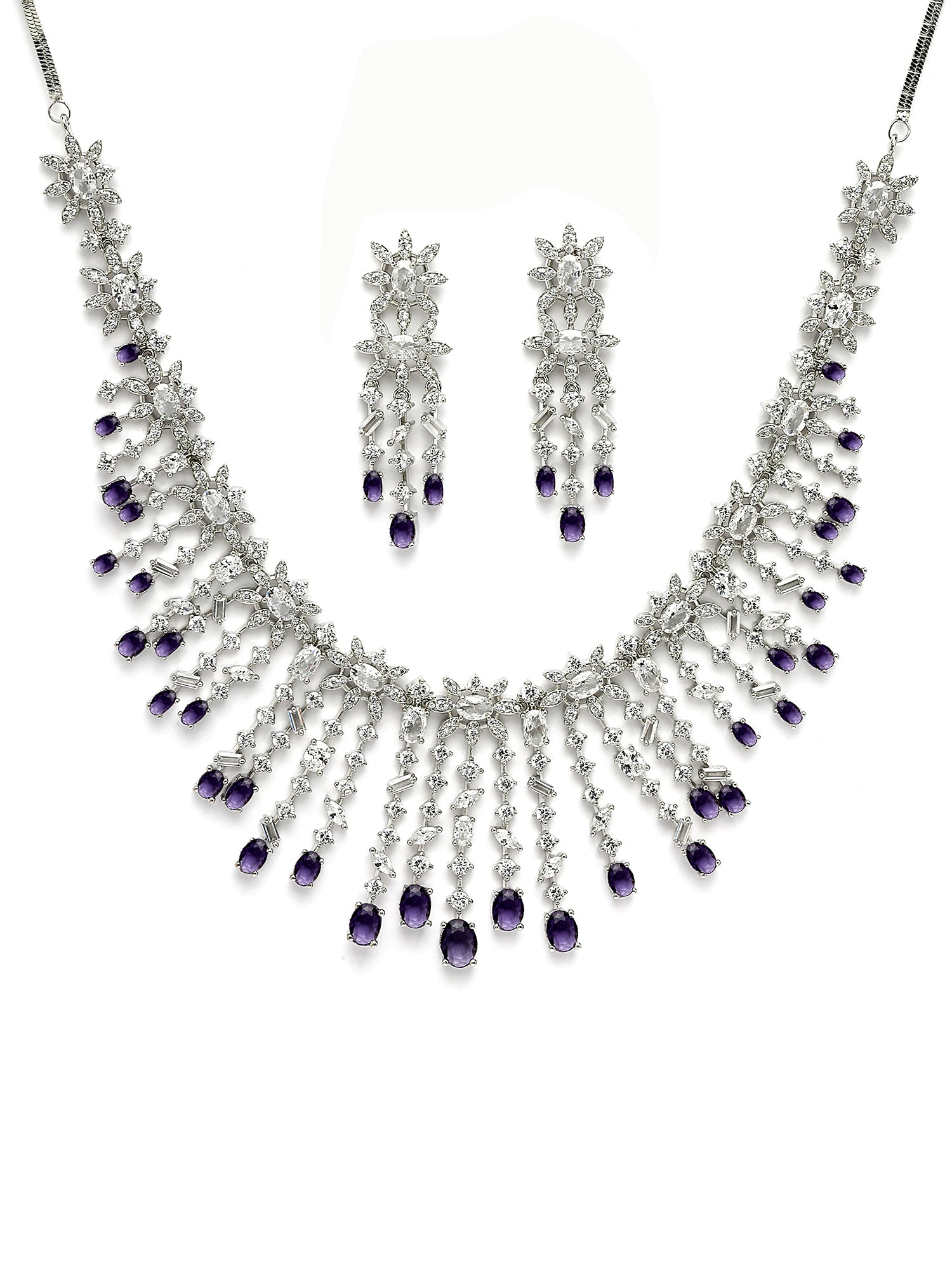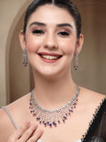 KARATCART Sparkling Purple American Diamond Silver-Plated Jewellery Set for Women