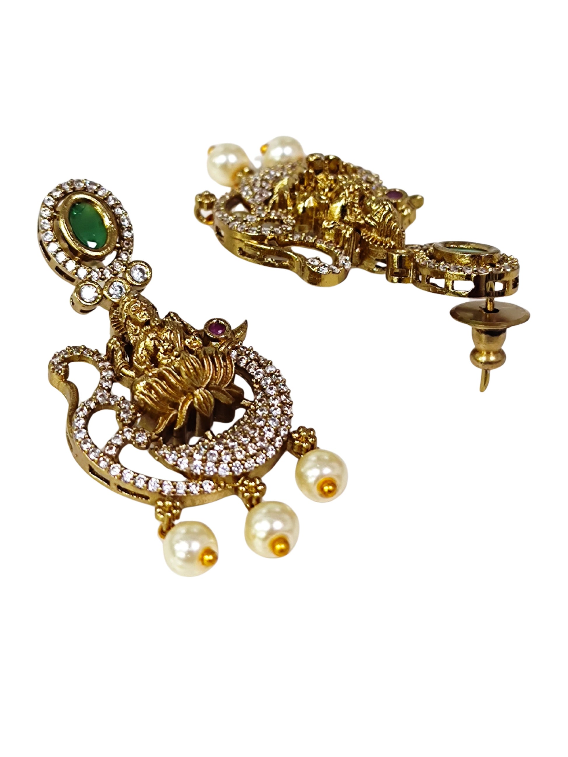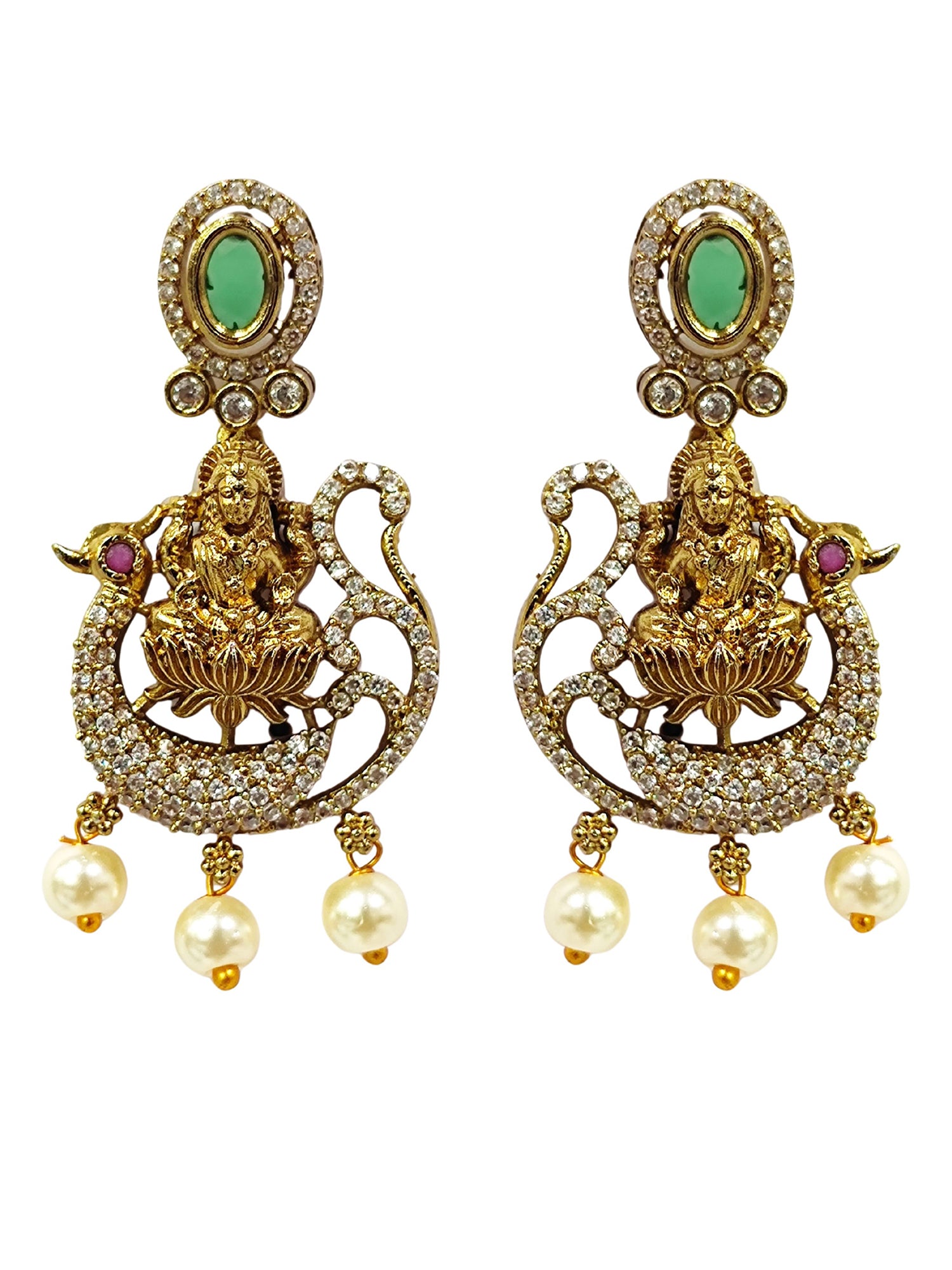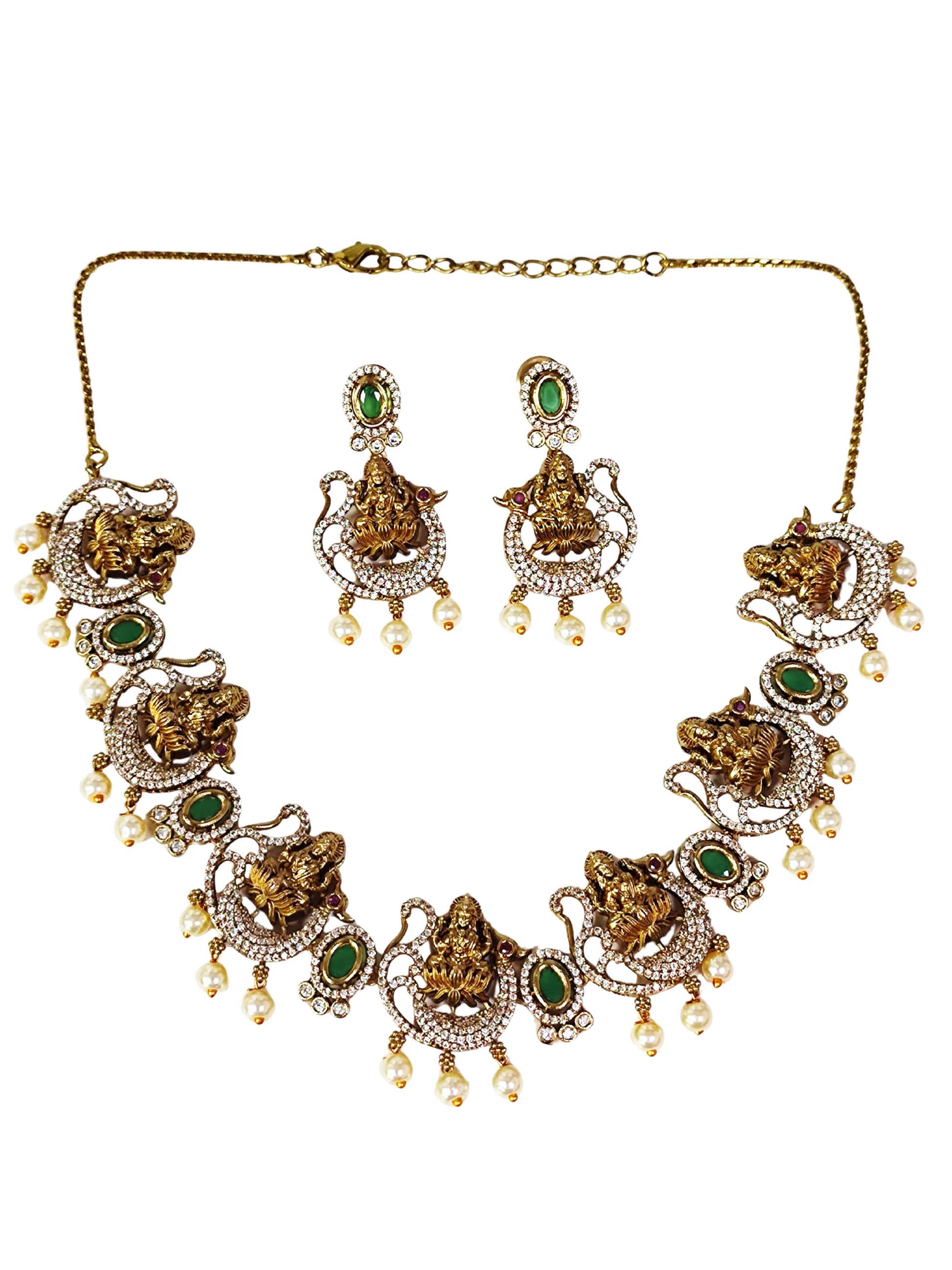 KARATCART Radiant Lakshmi Mata Gold-Plated Temple-Style American Diamond Necklace Set for Women