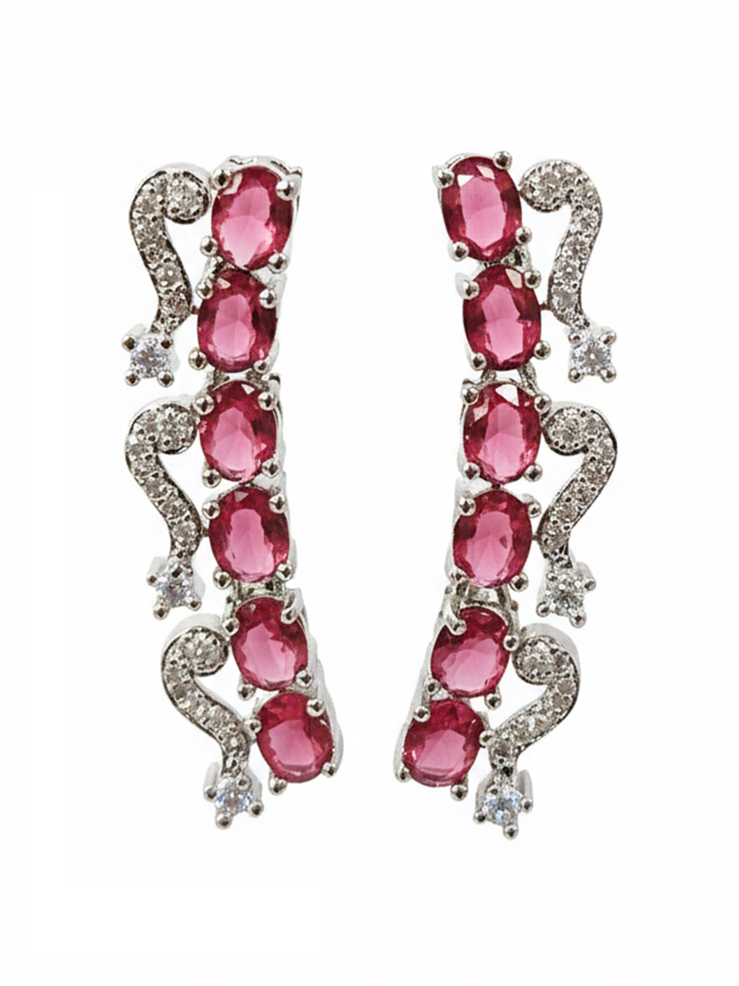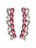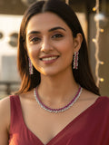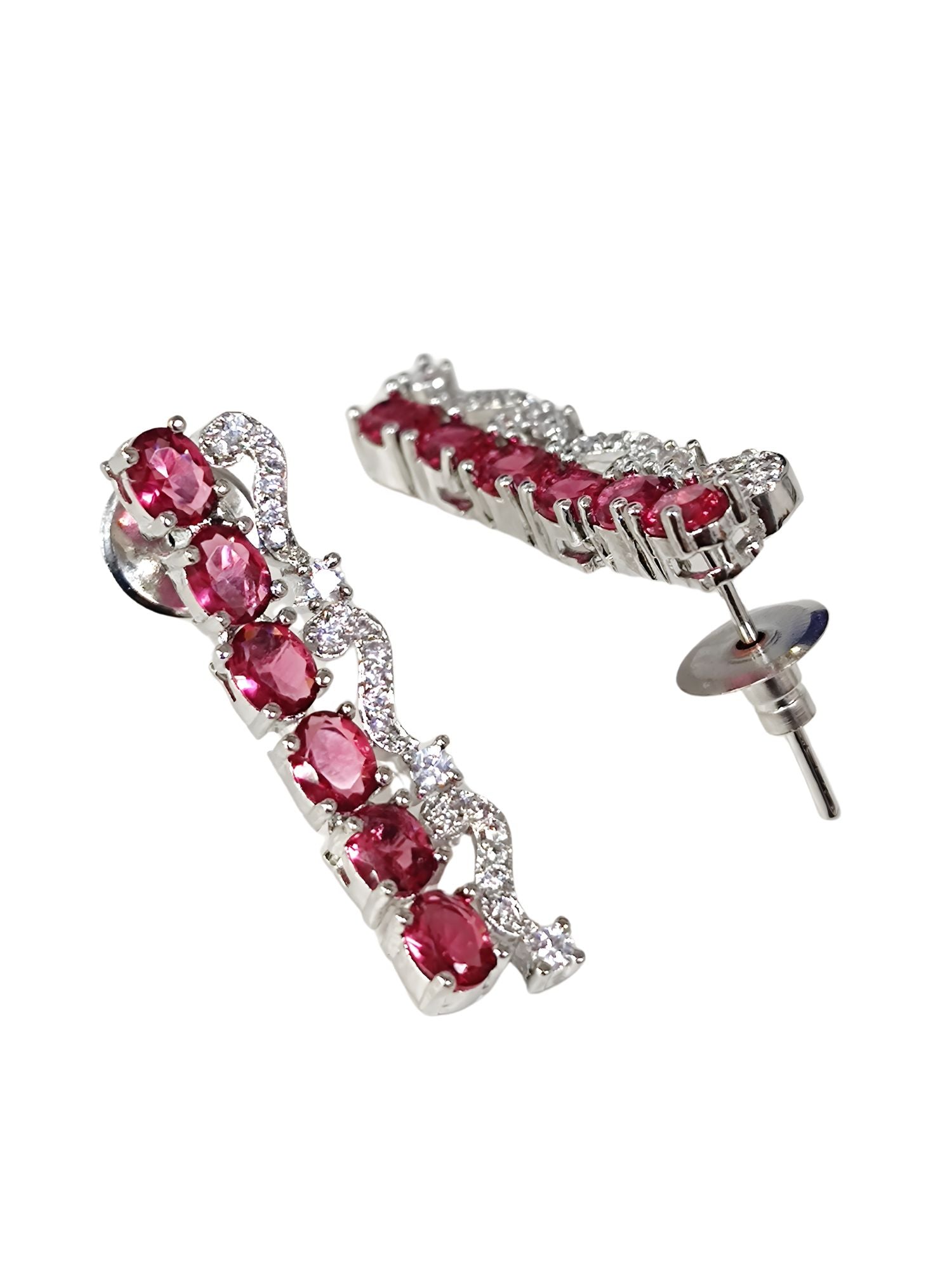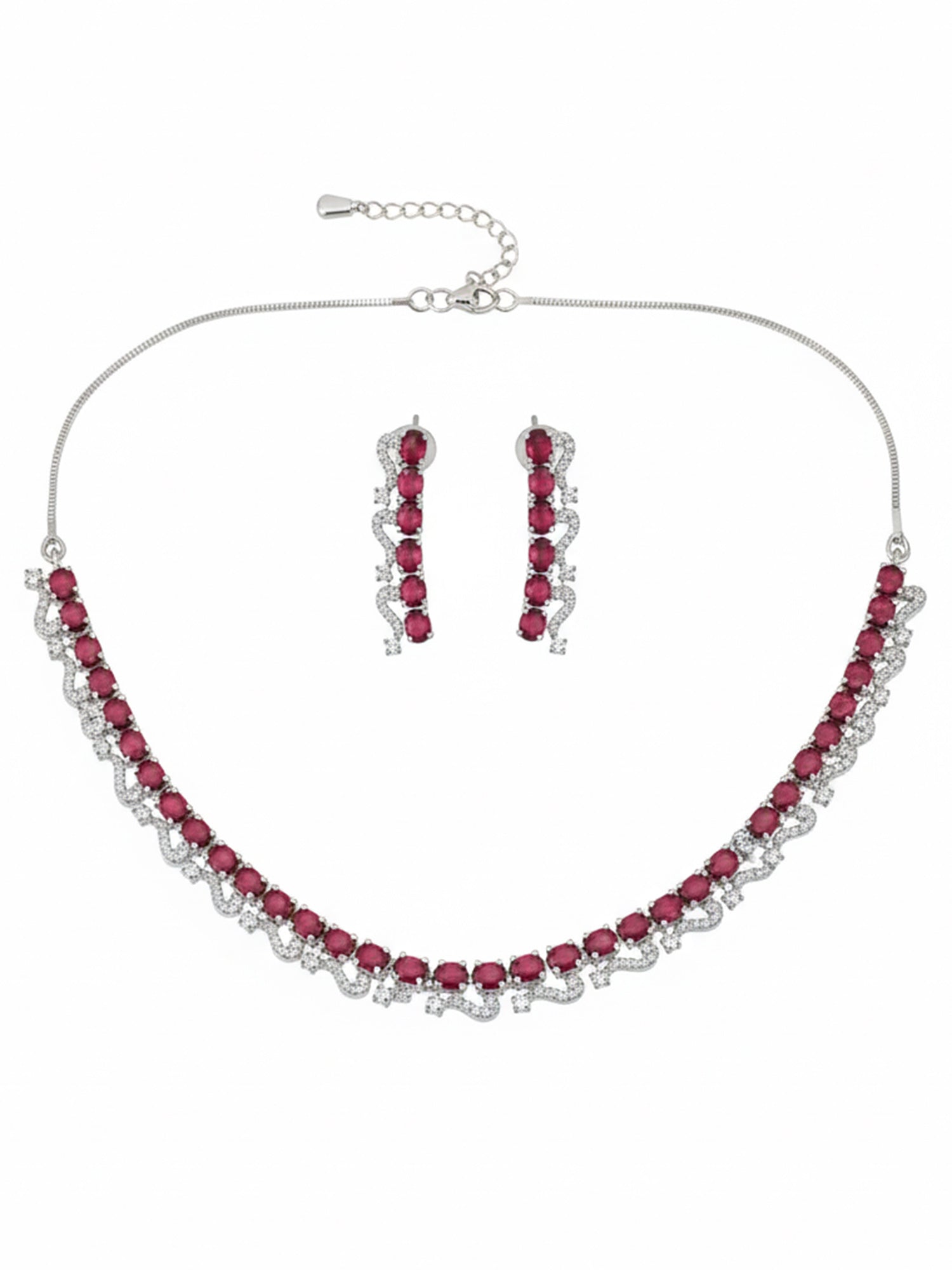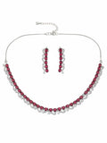 KARATCART Elegant Red American Diamond Silver-Plated Premium Jewellery Set for Women