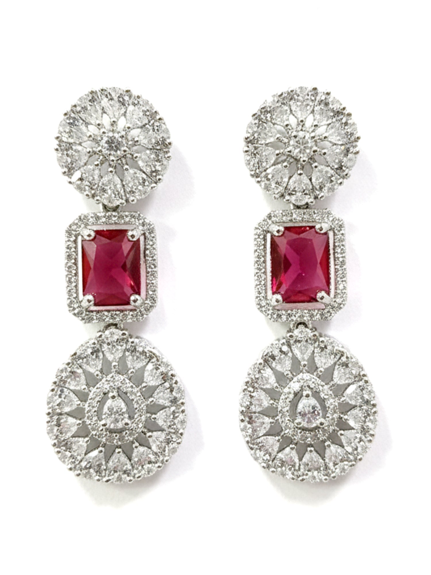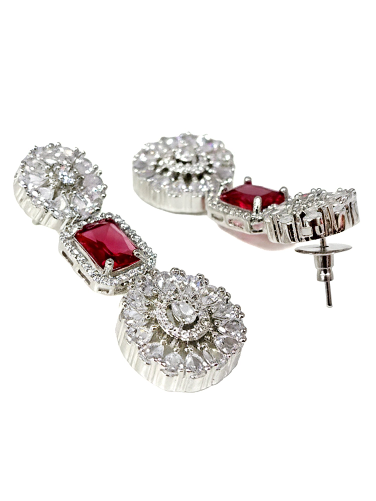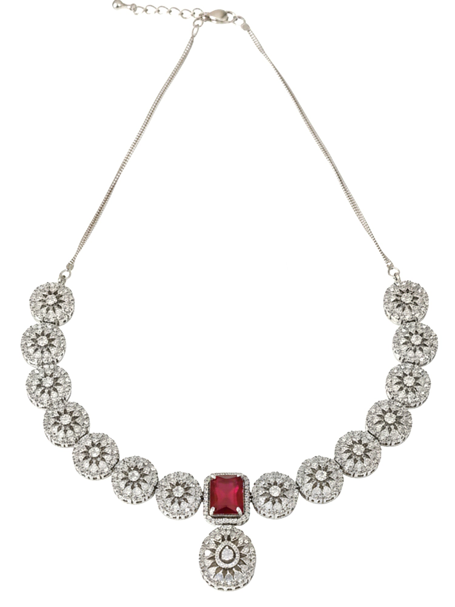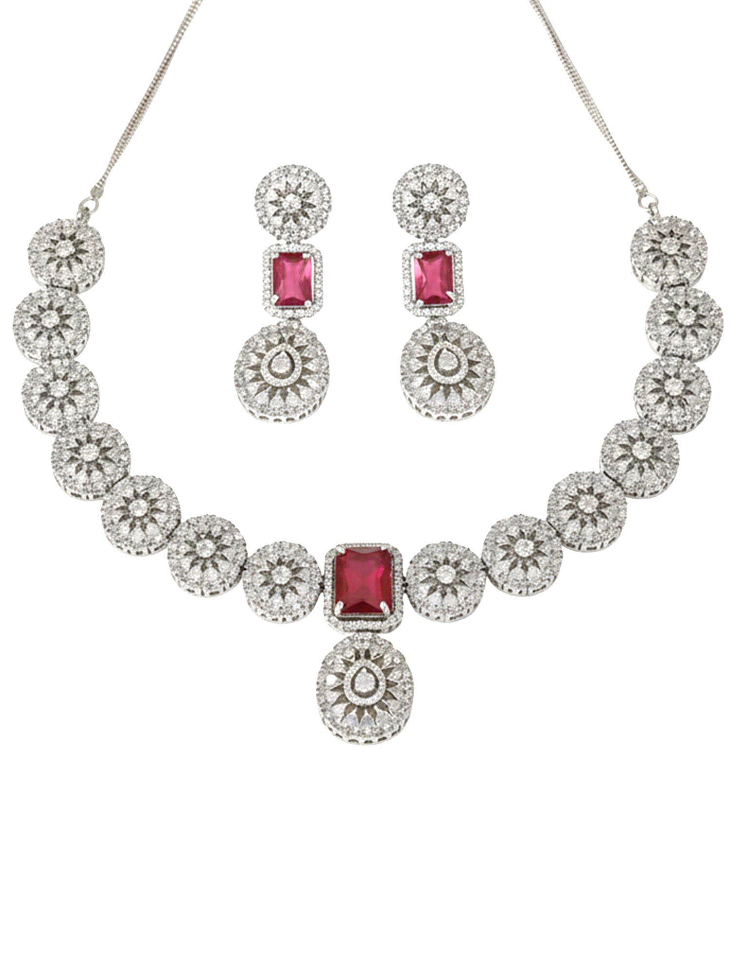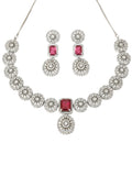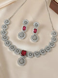 KARATCART Sparkling Red American Diamond Silver-Tone Jewellery Set for Women