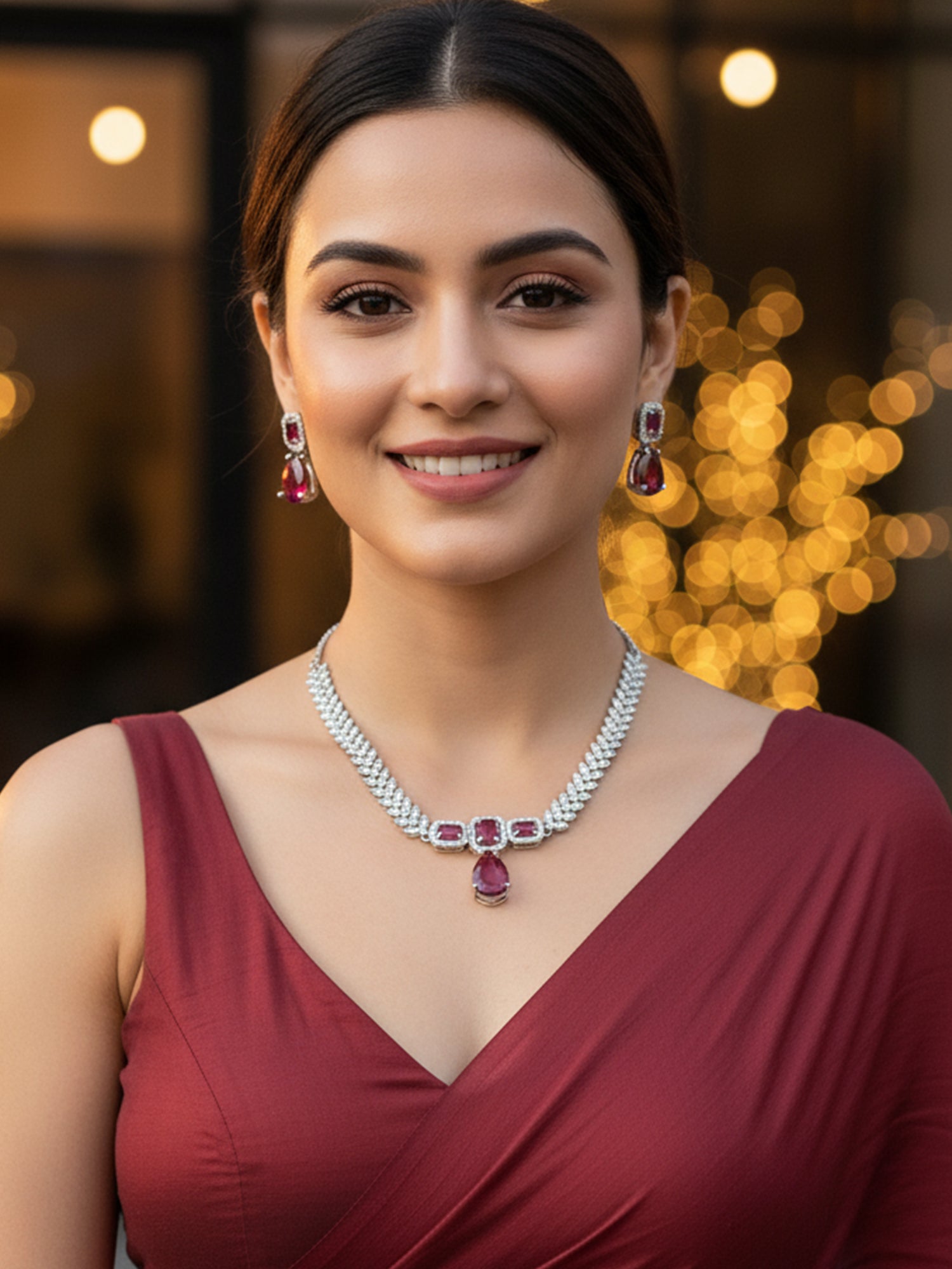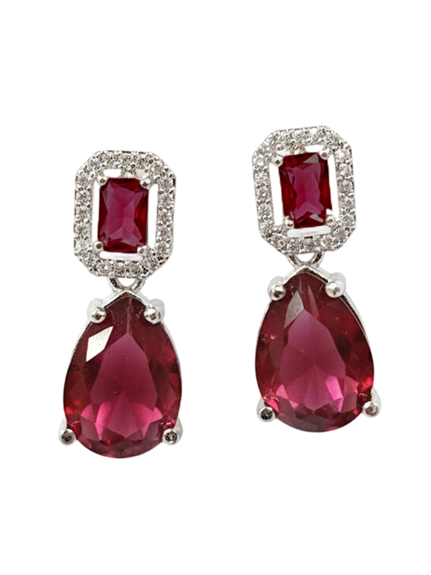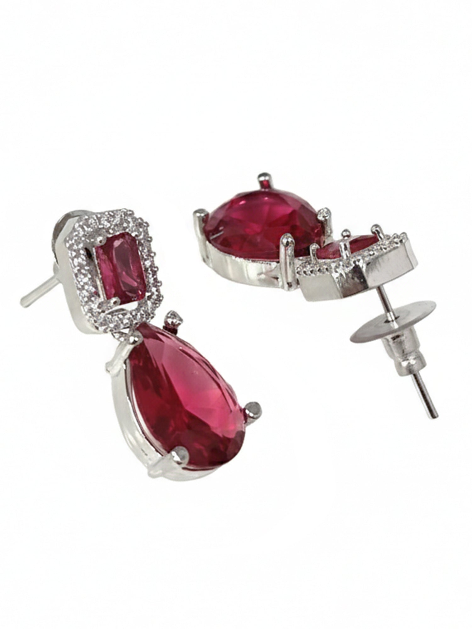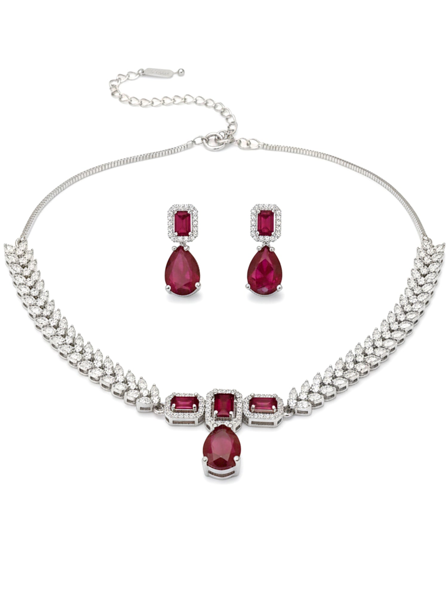 KARATCART Dazzling Red Drop American Diamond Silver Tone Jewellery Set for Women