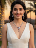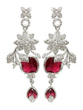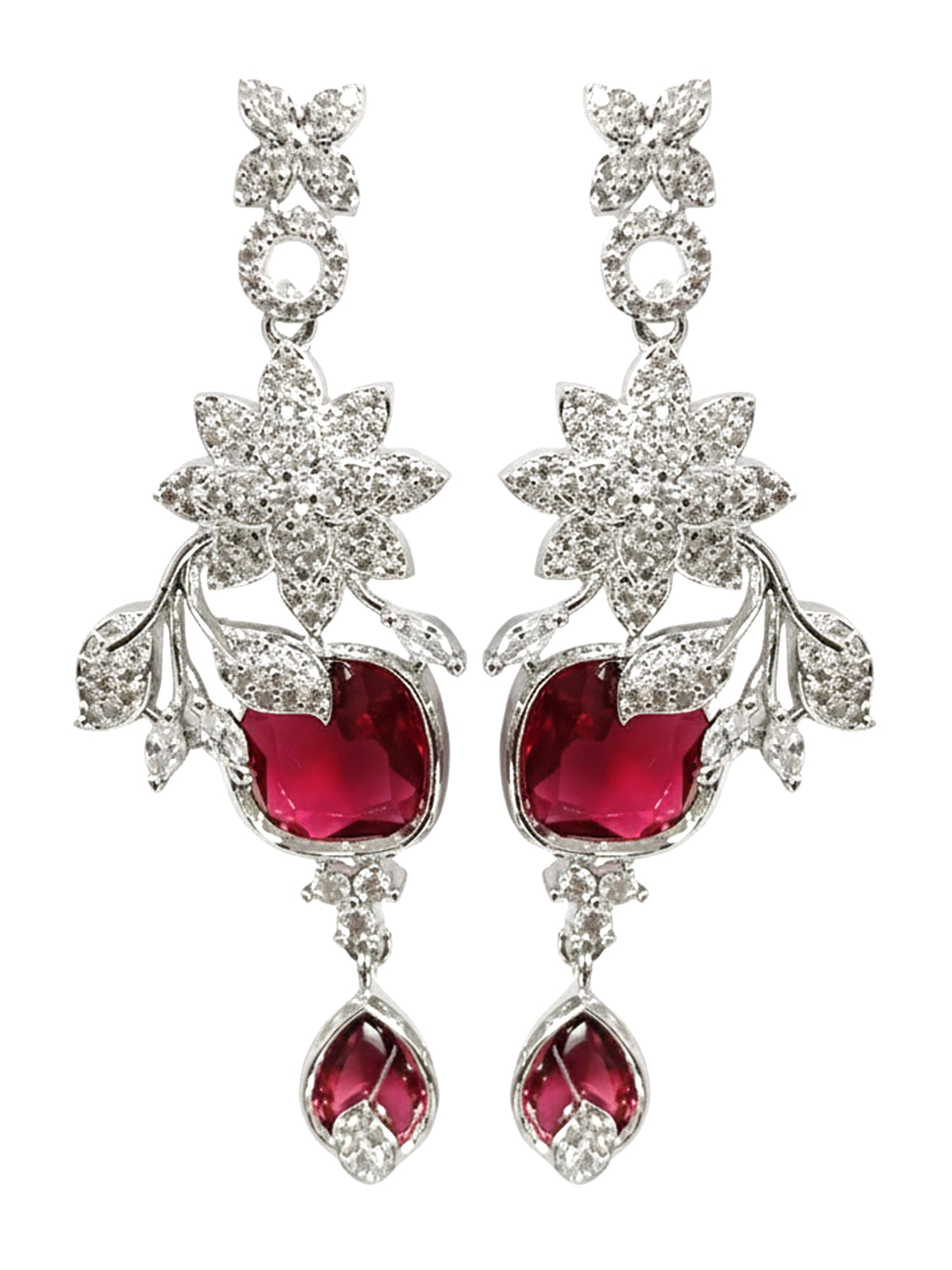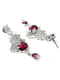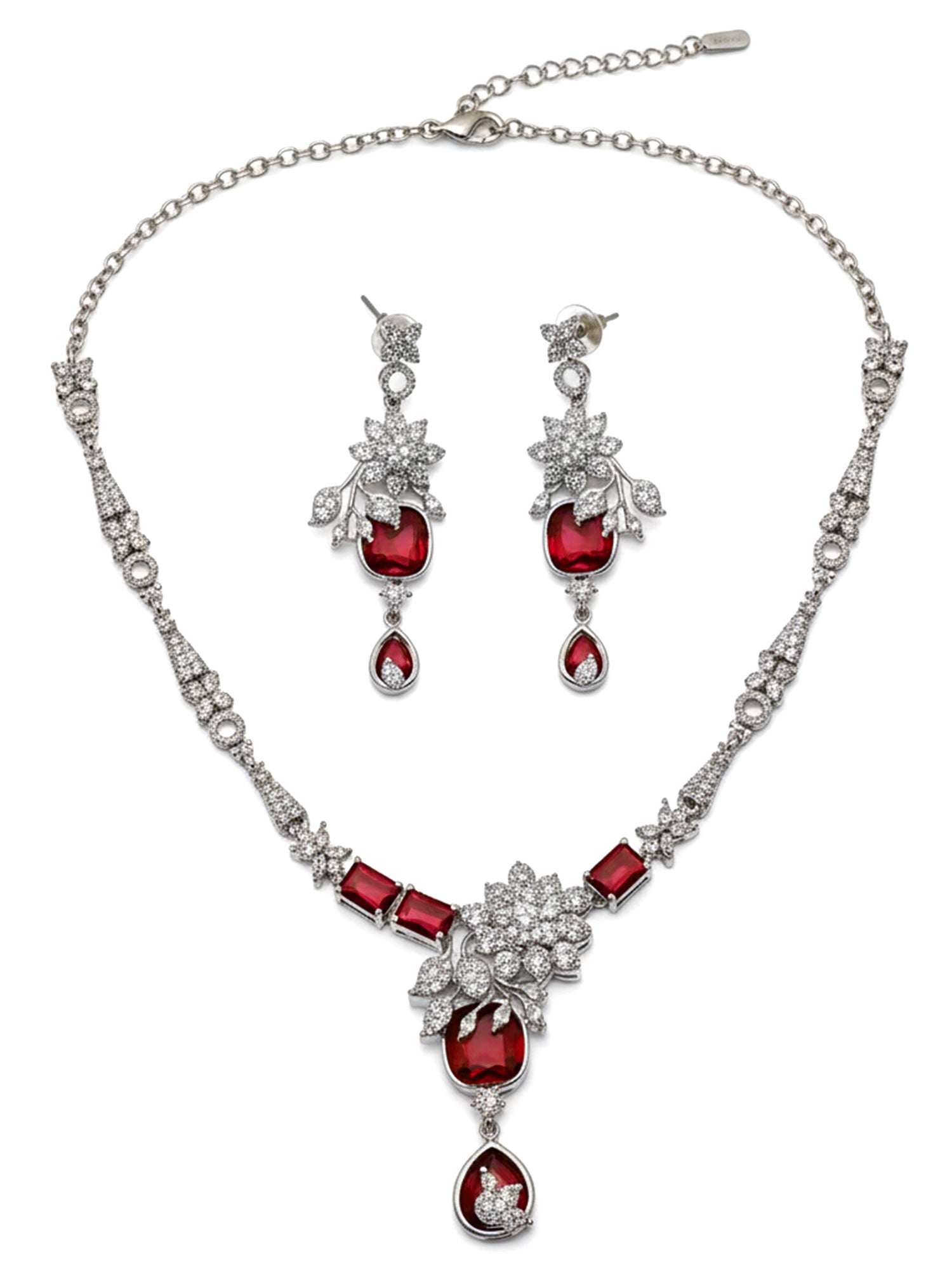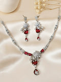 KARATCART Sparkling Red American Diamond Silver Tone Floral Jewellery Set for Women