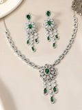 KARATCART Glamorous Green American Diamond Studded Floral Jewellery Set for Women
