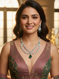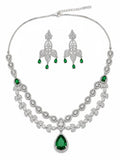 KARATCART Glamorous Silver Plated Jewellery Set Studded with Green American Diamond for Women