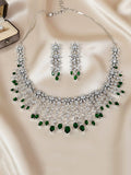 KARATCART Sparkling Green American Diamond Silver-Plated Jewellery Set for Women