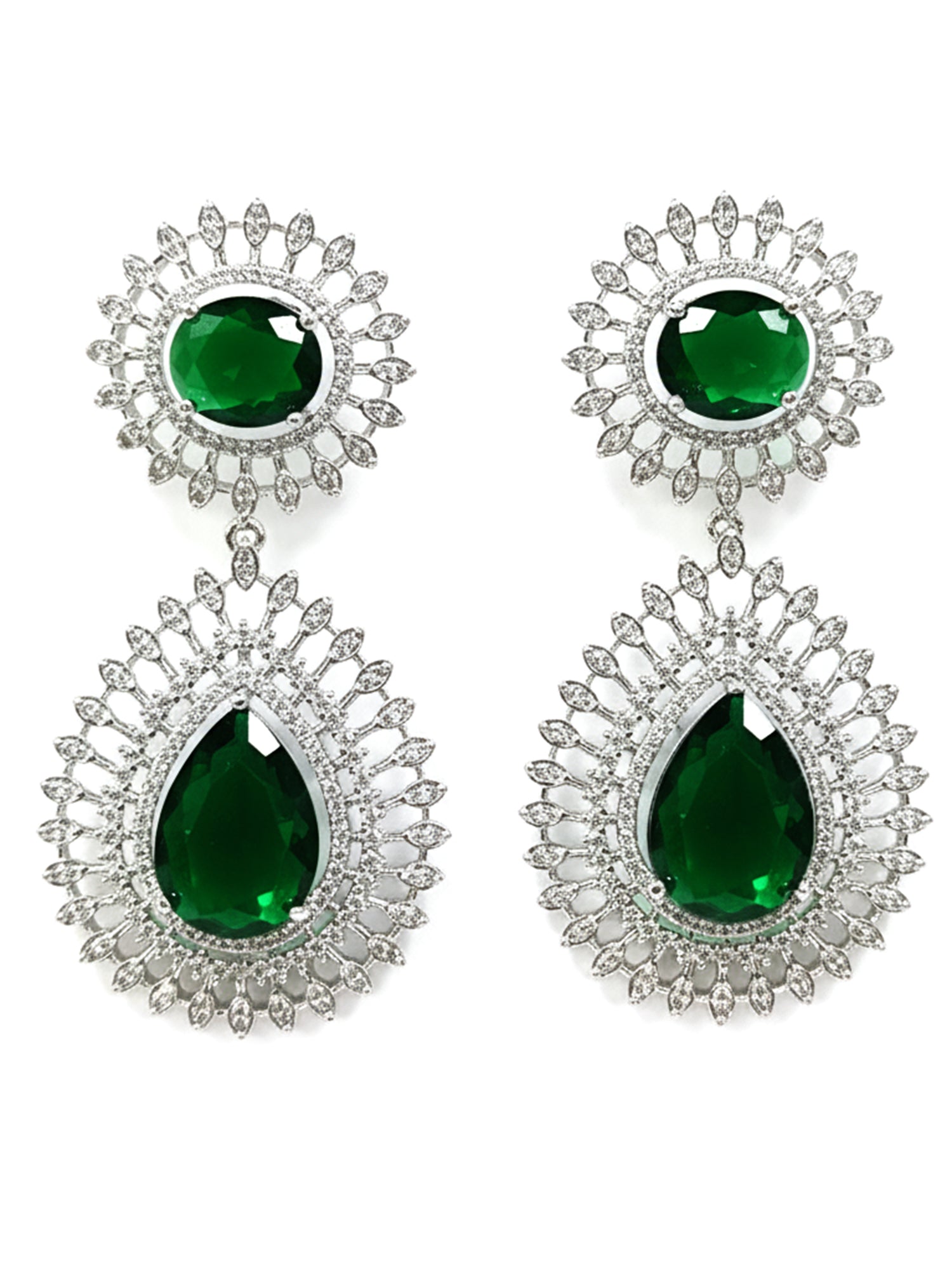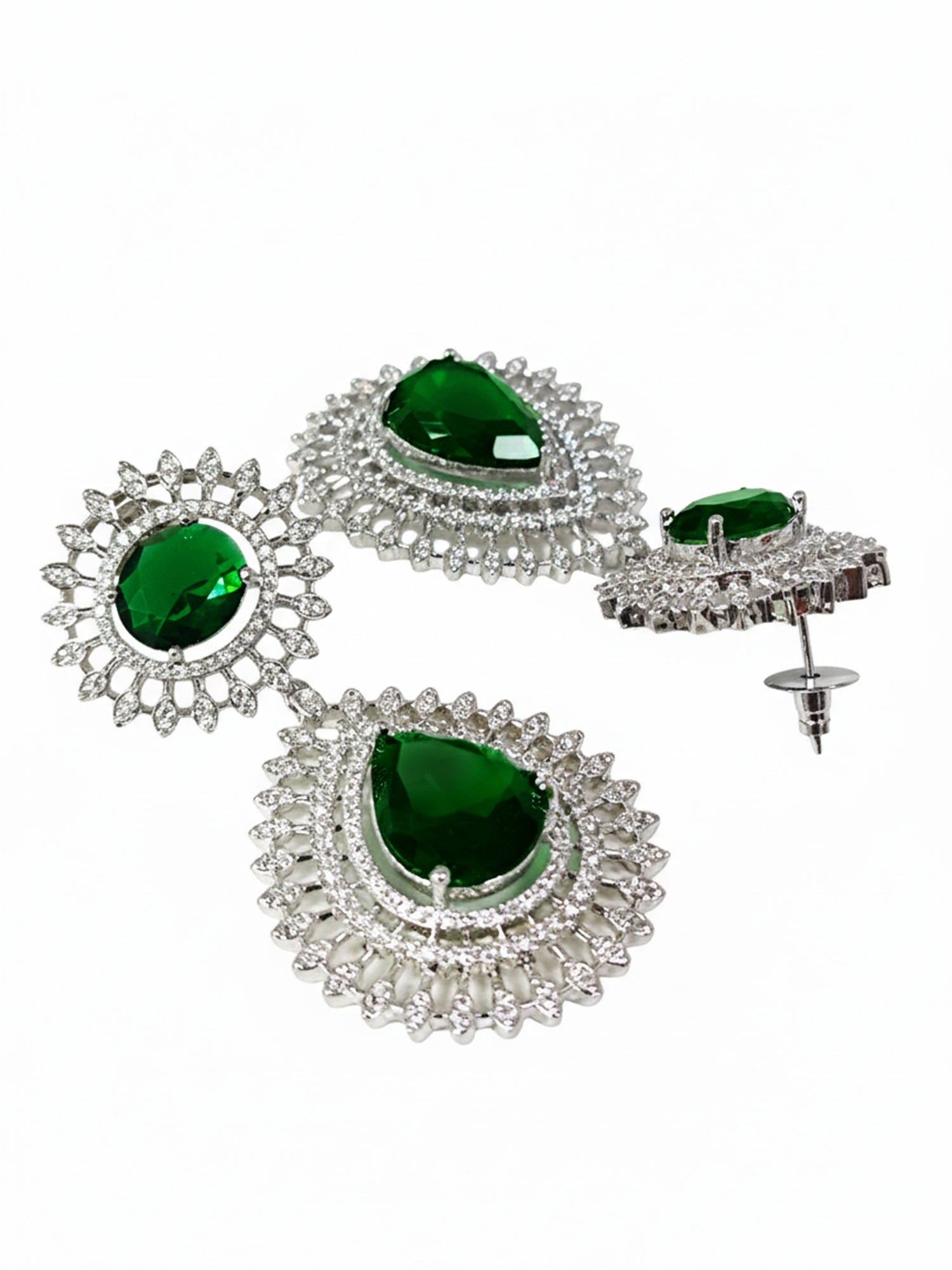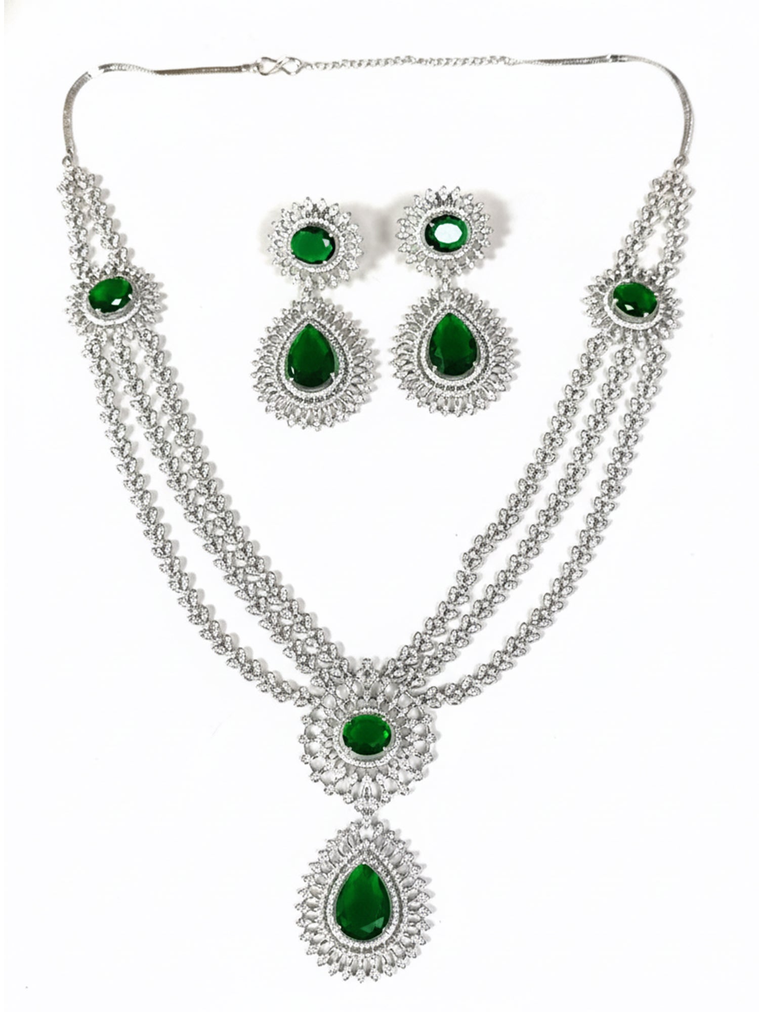 KARATCART Traditional Green American Diamond Multilayer Rani Haar Jewellery Set for Women