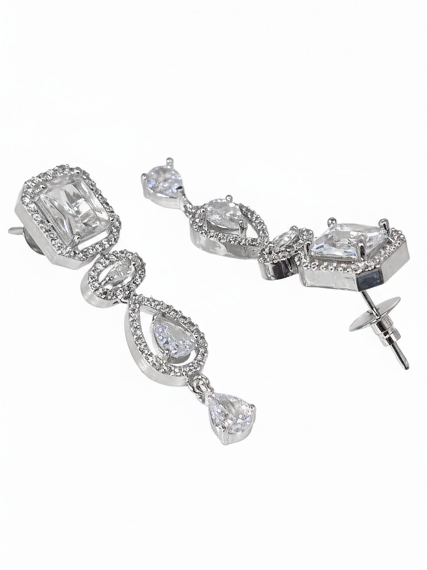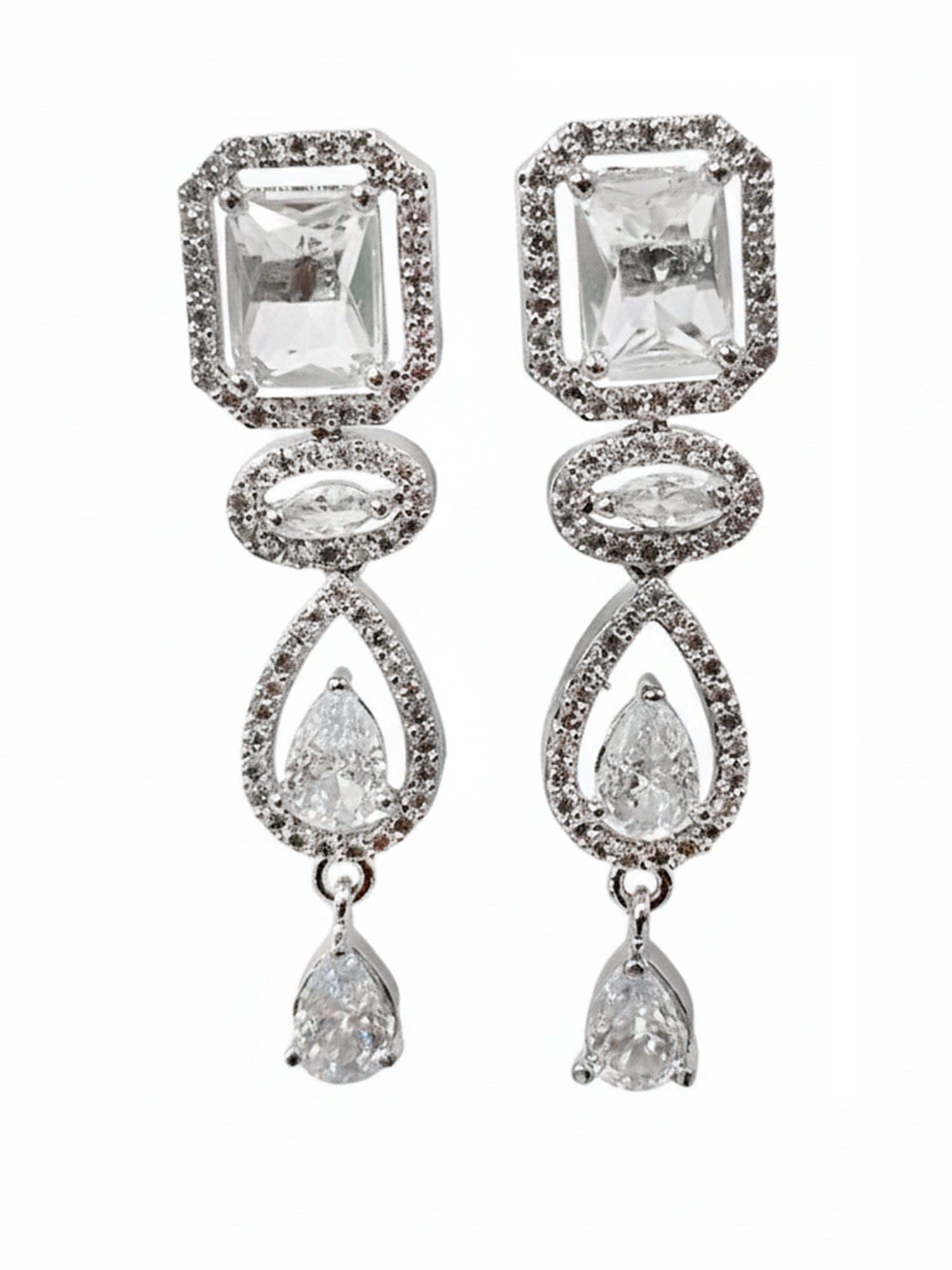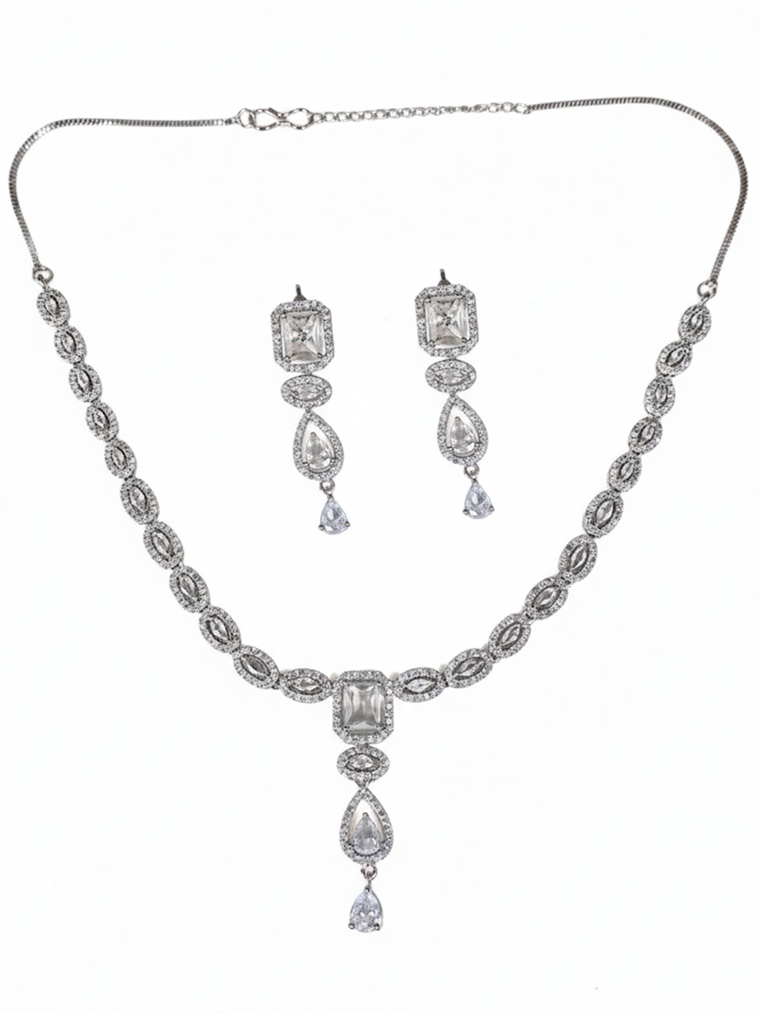 KARATCART Glamorous White American Diamond Silver-Plated Lightweight Jewellery Set for Women
