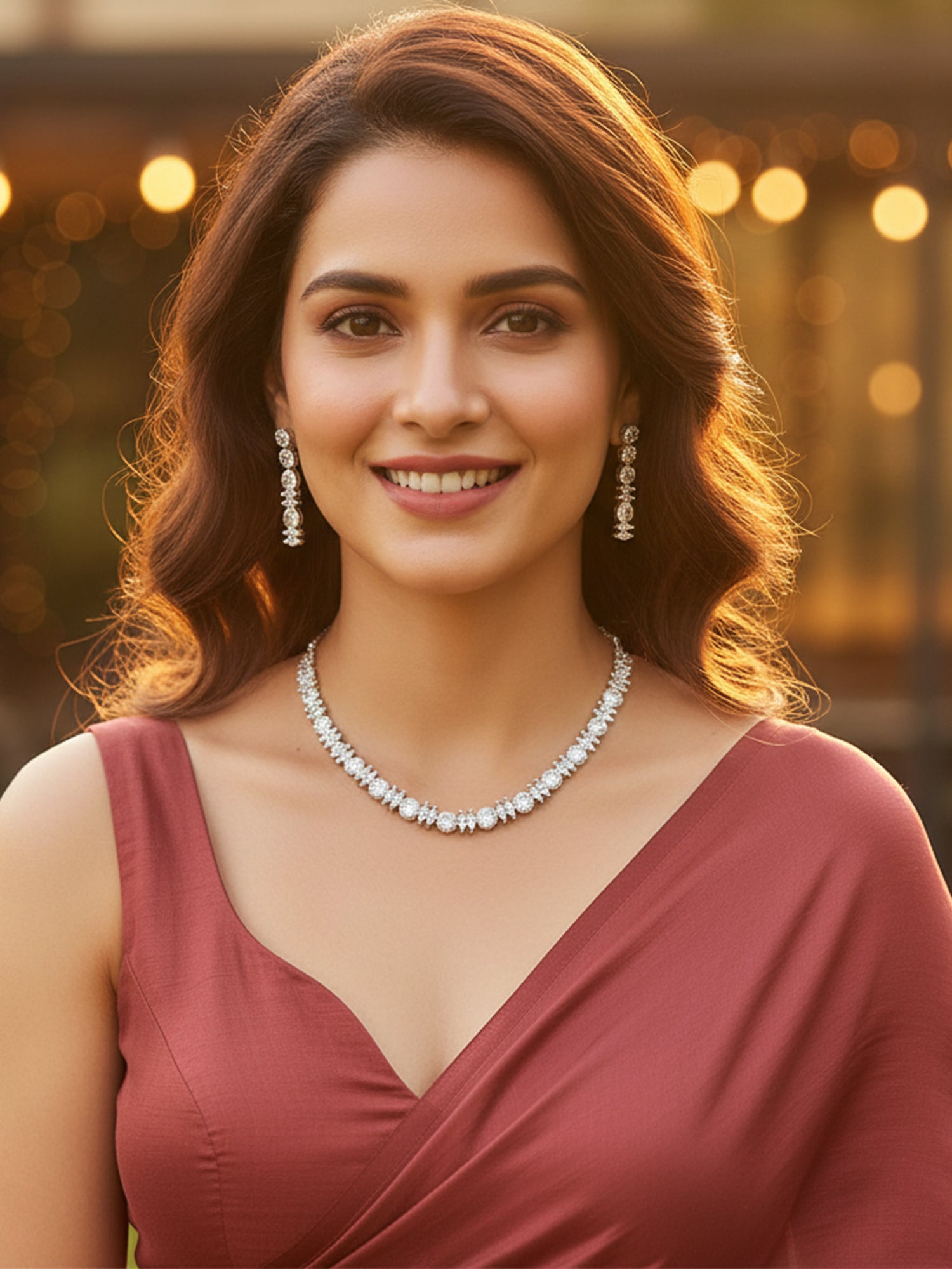 KARATCART Sparkling American Diamond Lightweight Silver-Tone Jewellery Set for Women