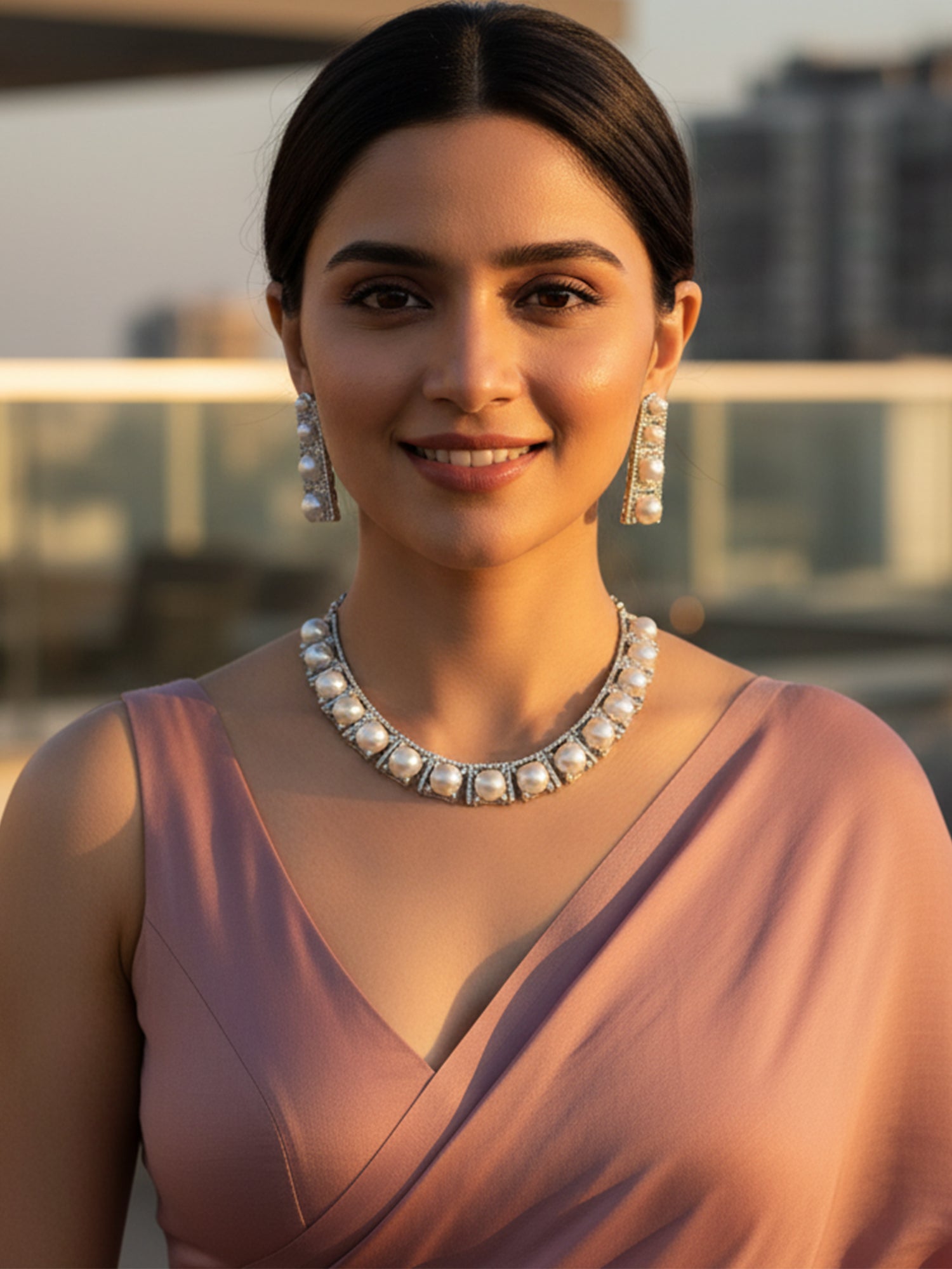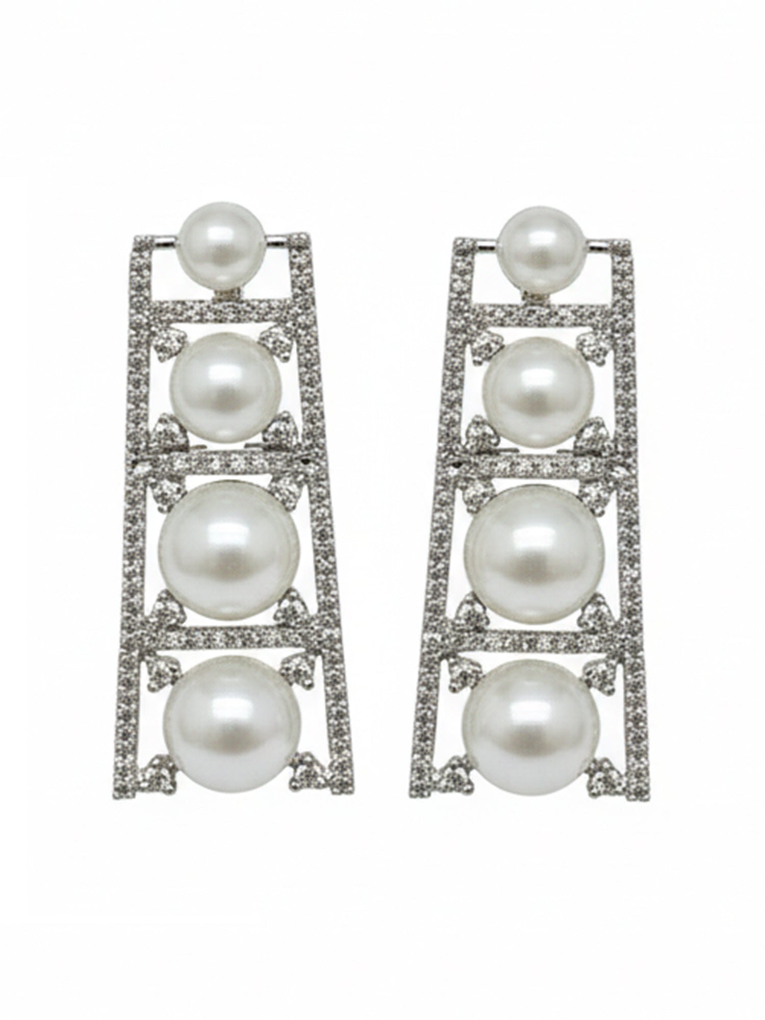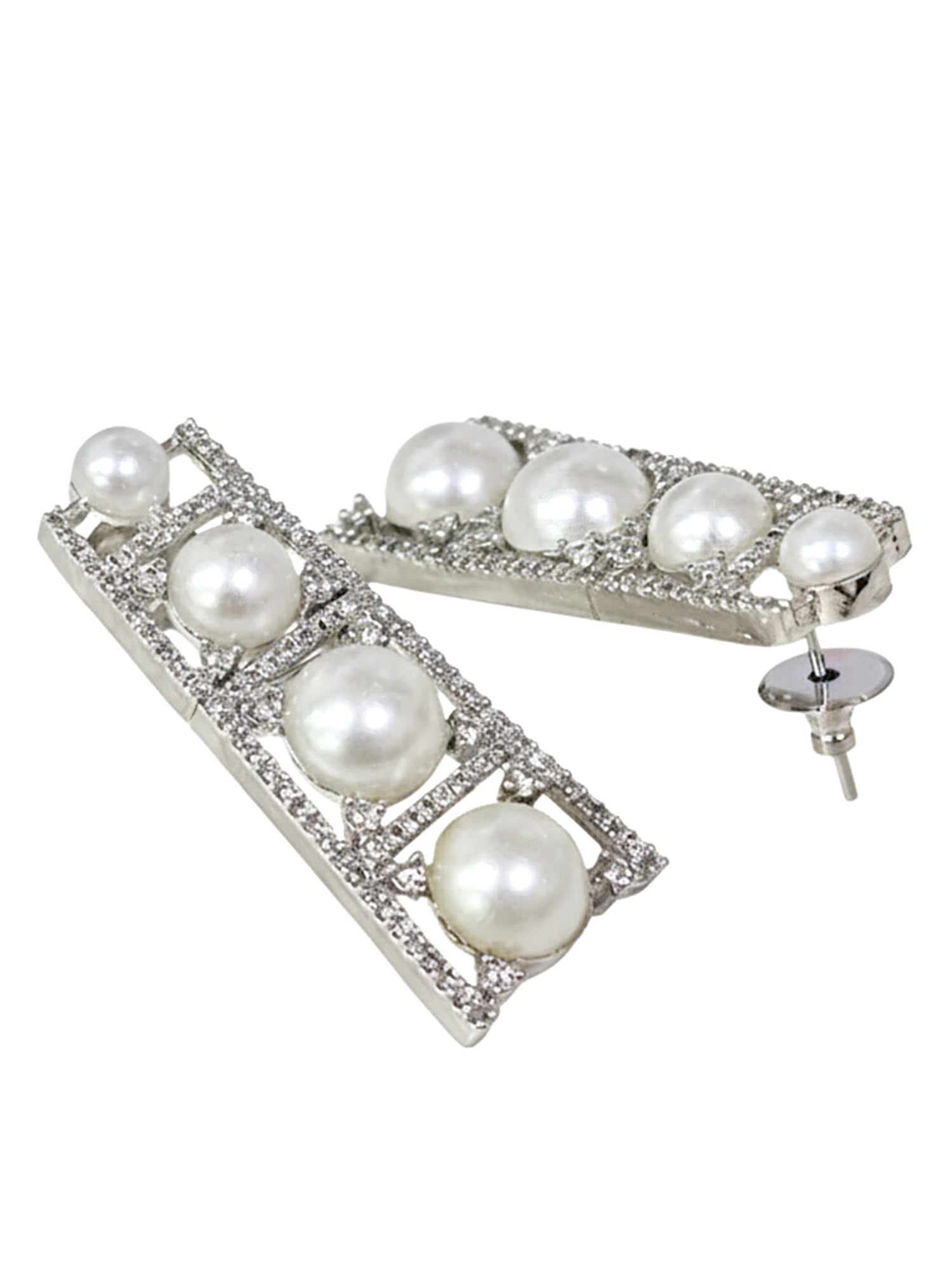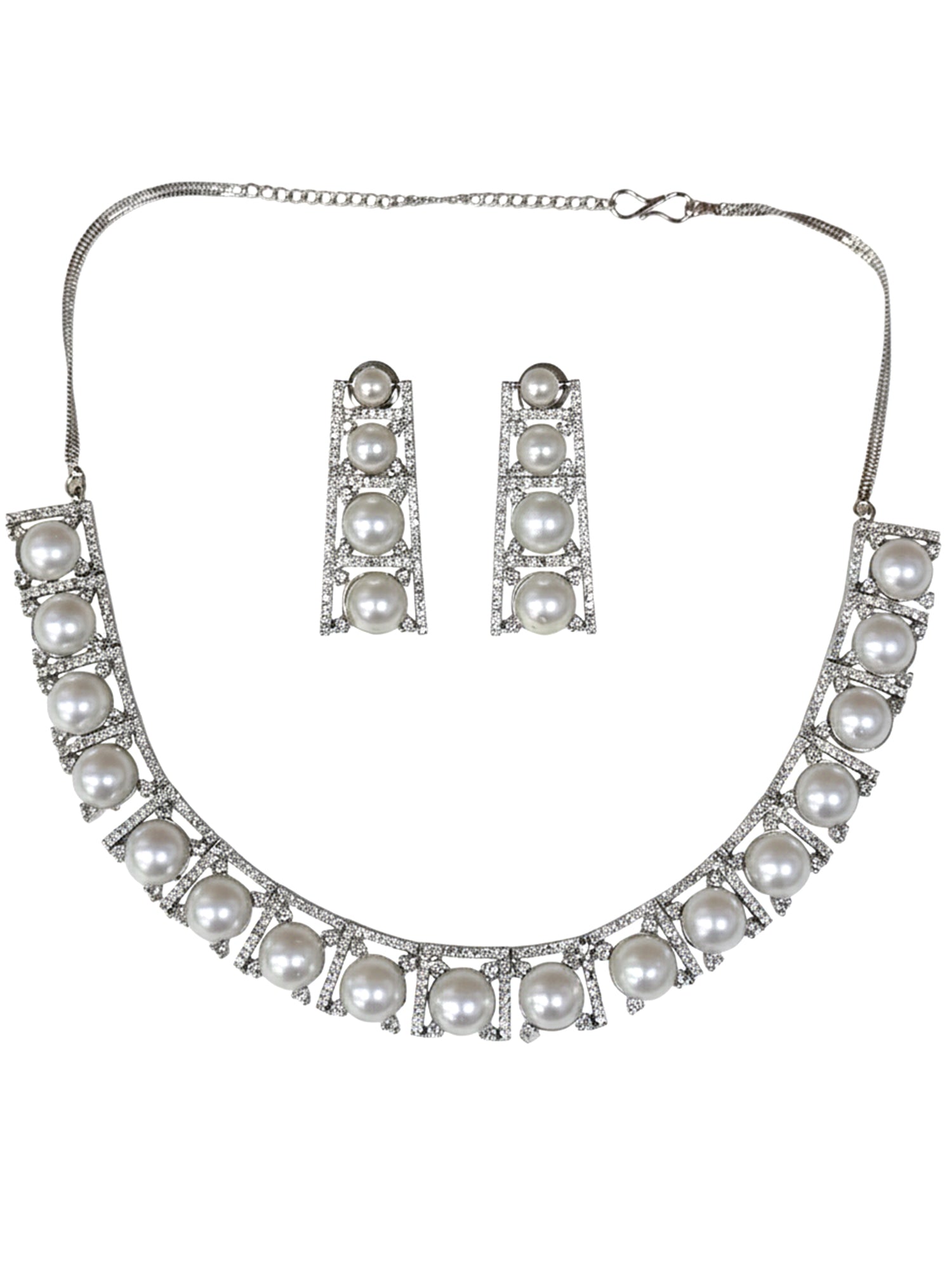 KARATCART Elegant Pearl and American Diamond Silver-Tone Jewellery Set for Women