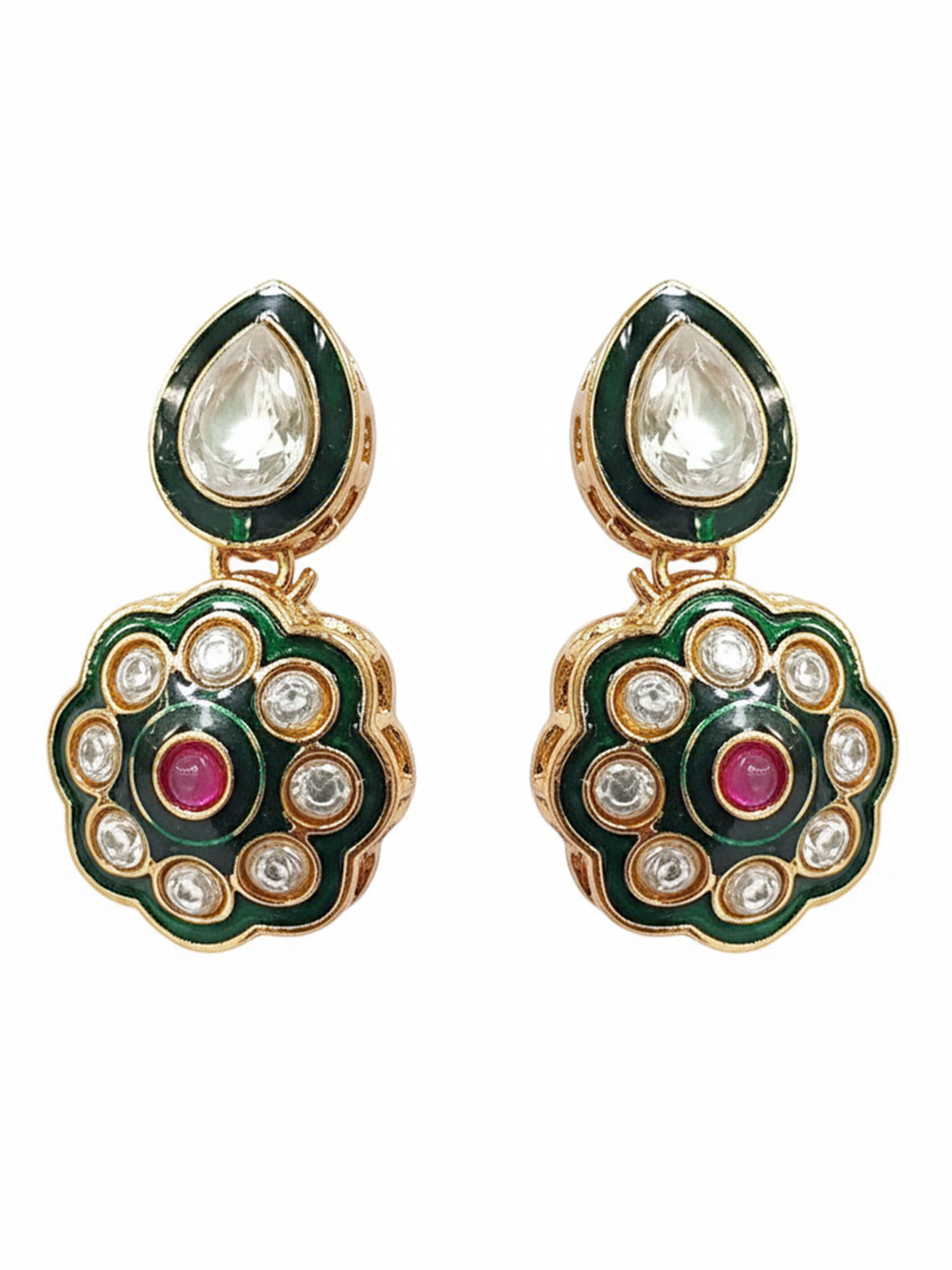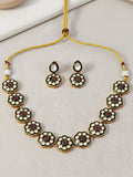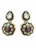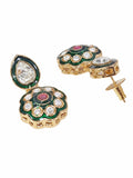 KARATCART Traditional Gold-Plated Red Stone & Green Enamel Floral Kundan Jewellery Set for Women