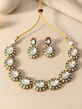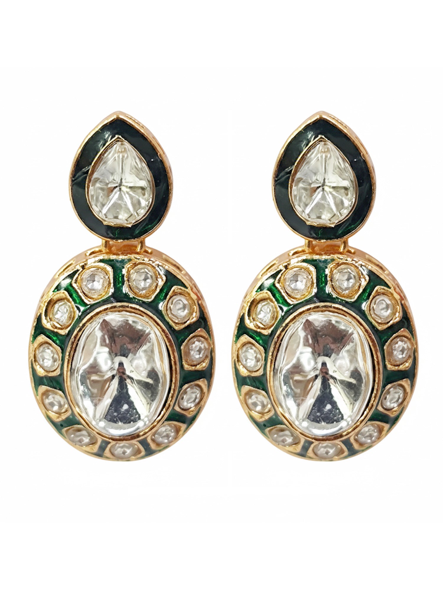 KARATCART Stunning Oval-Shaped Green Meenakari Gold-Plated Ethnic Jewellery Set for Women