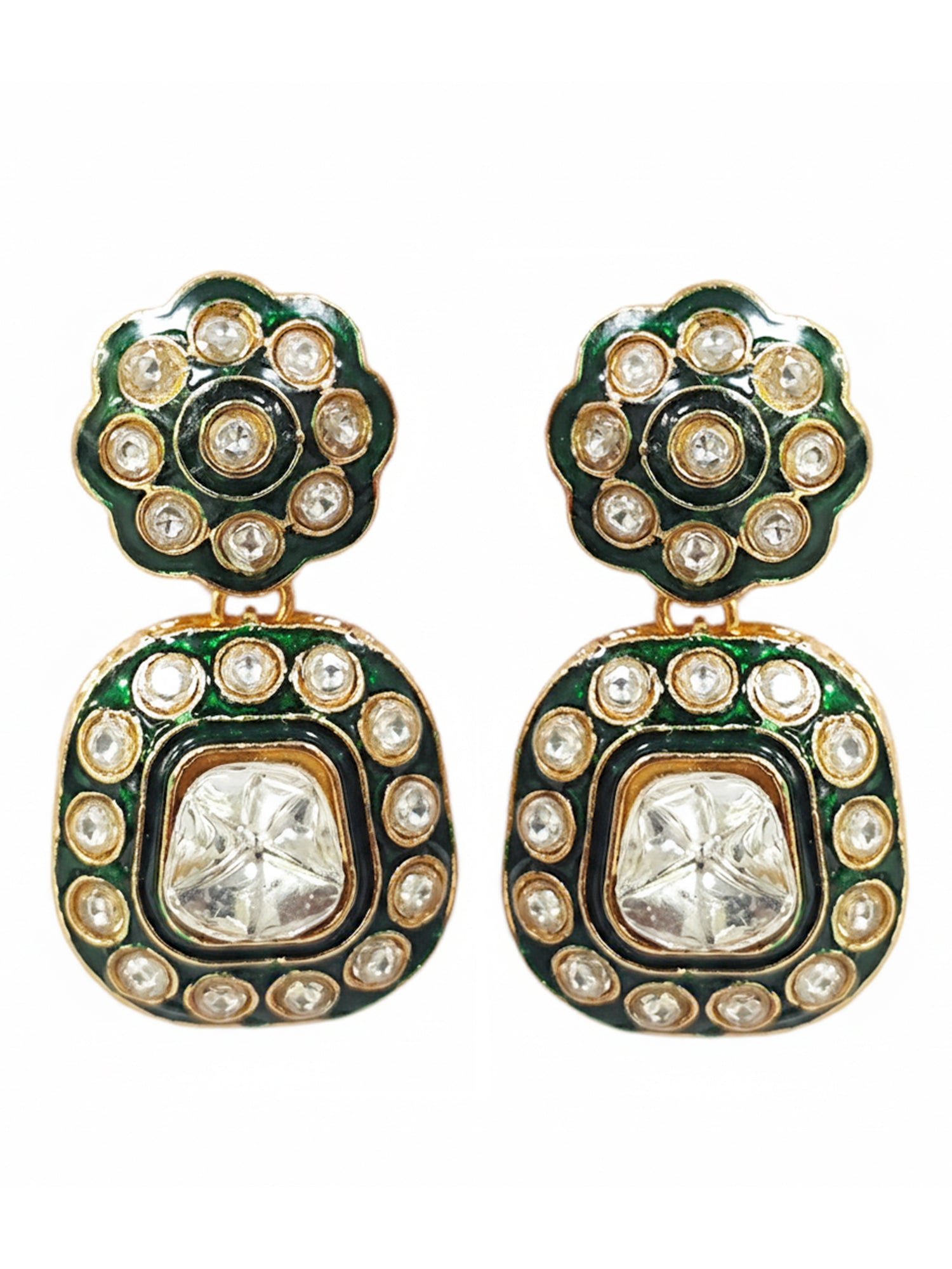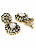 KARATCART Dazzling Green Meena Square Kundan Gold-Plated Handcrafted Necklace Set for Women