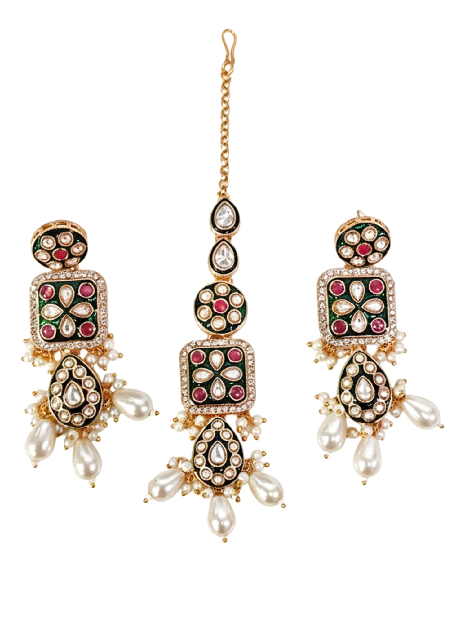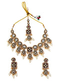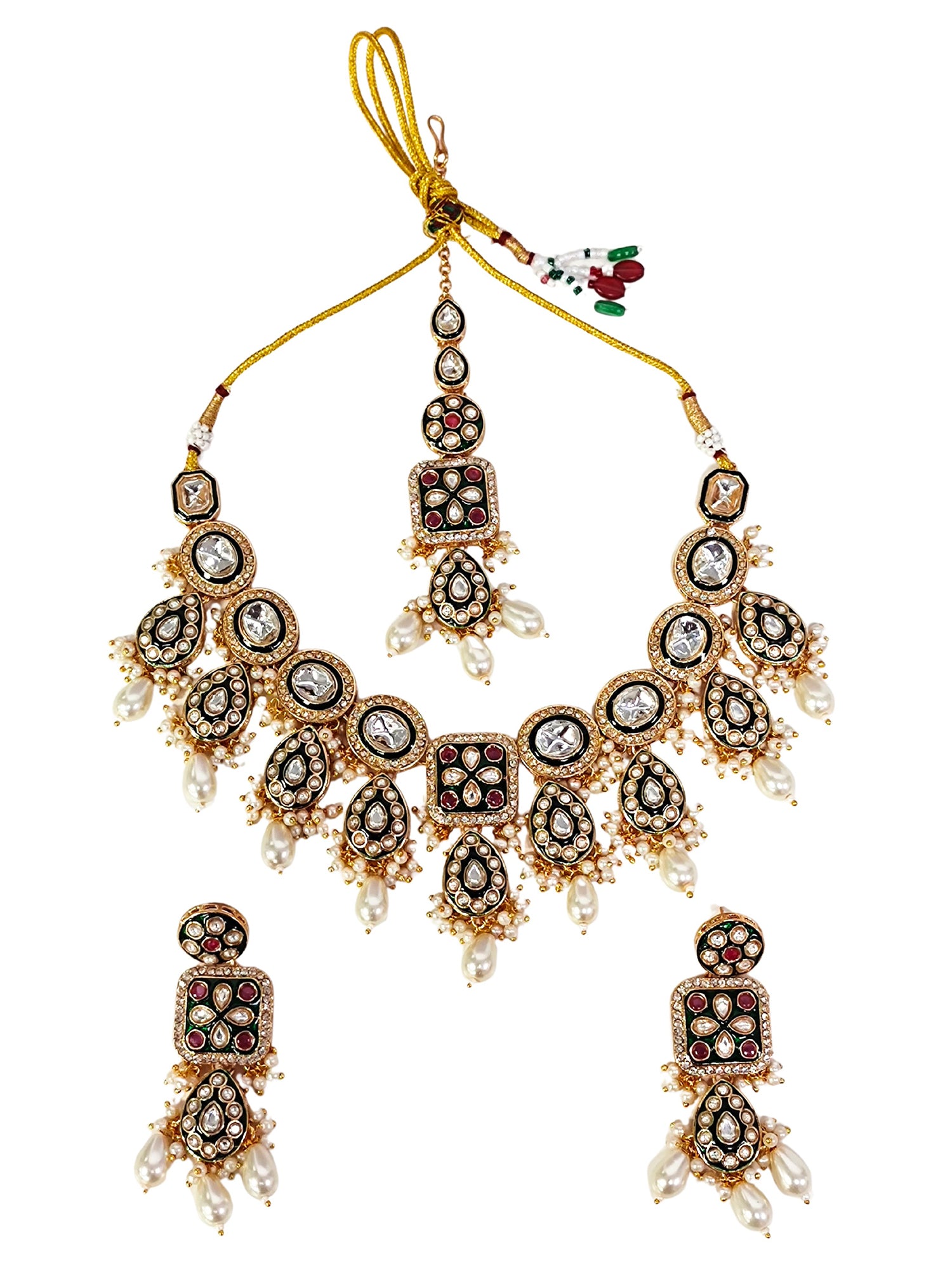 KARATCART Luxurious Green Enamel Gold-Plated Kundan Traditional Choker Necklace Set for Women