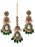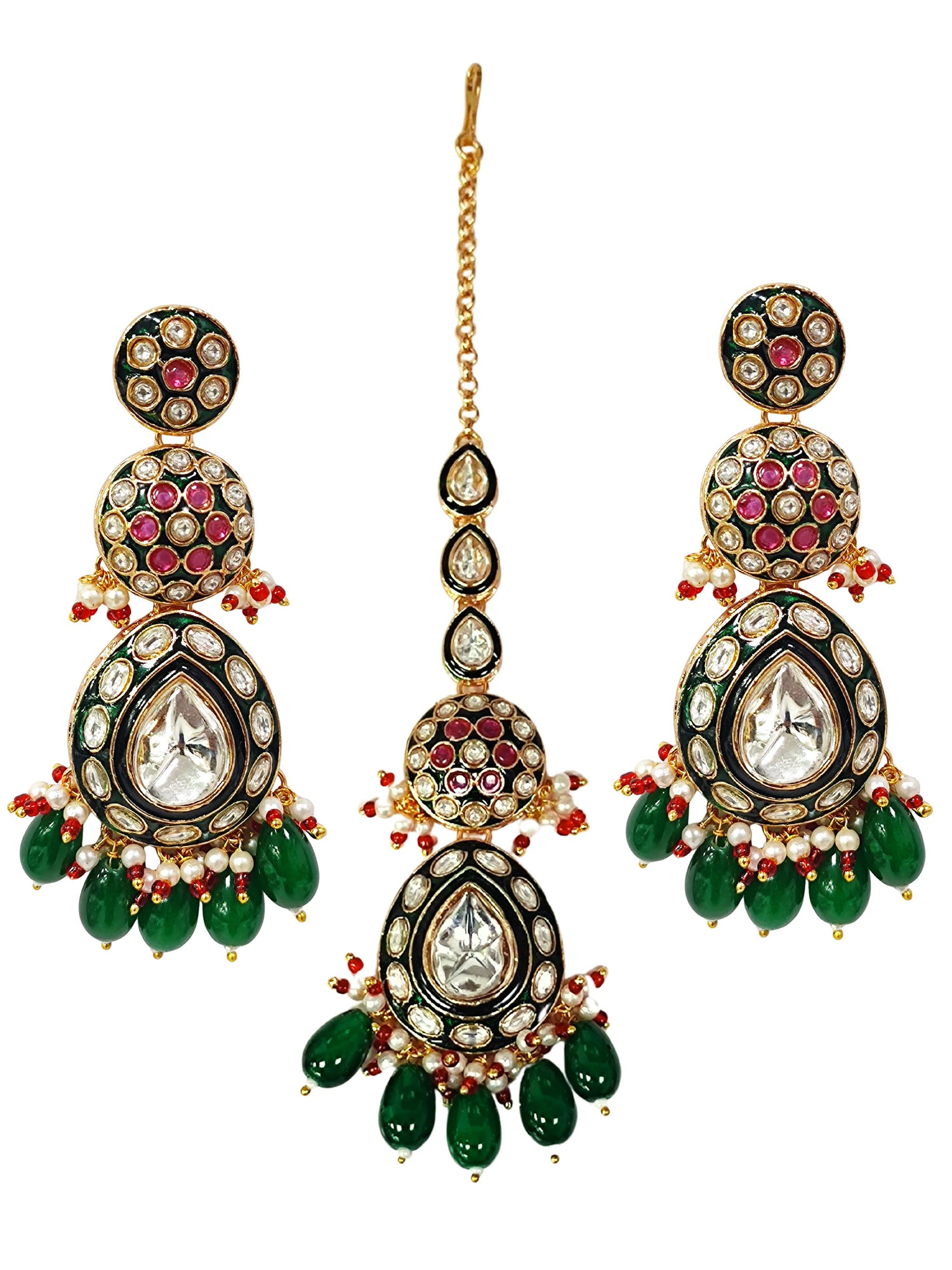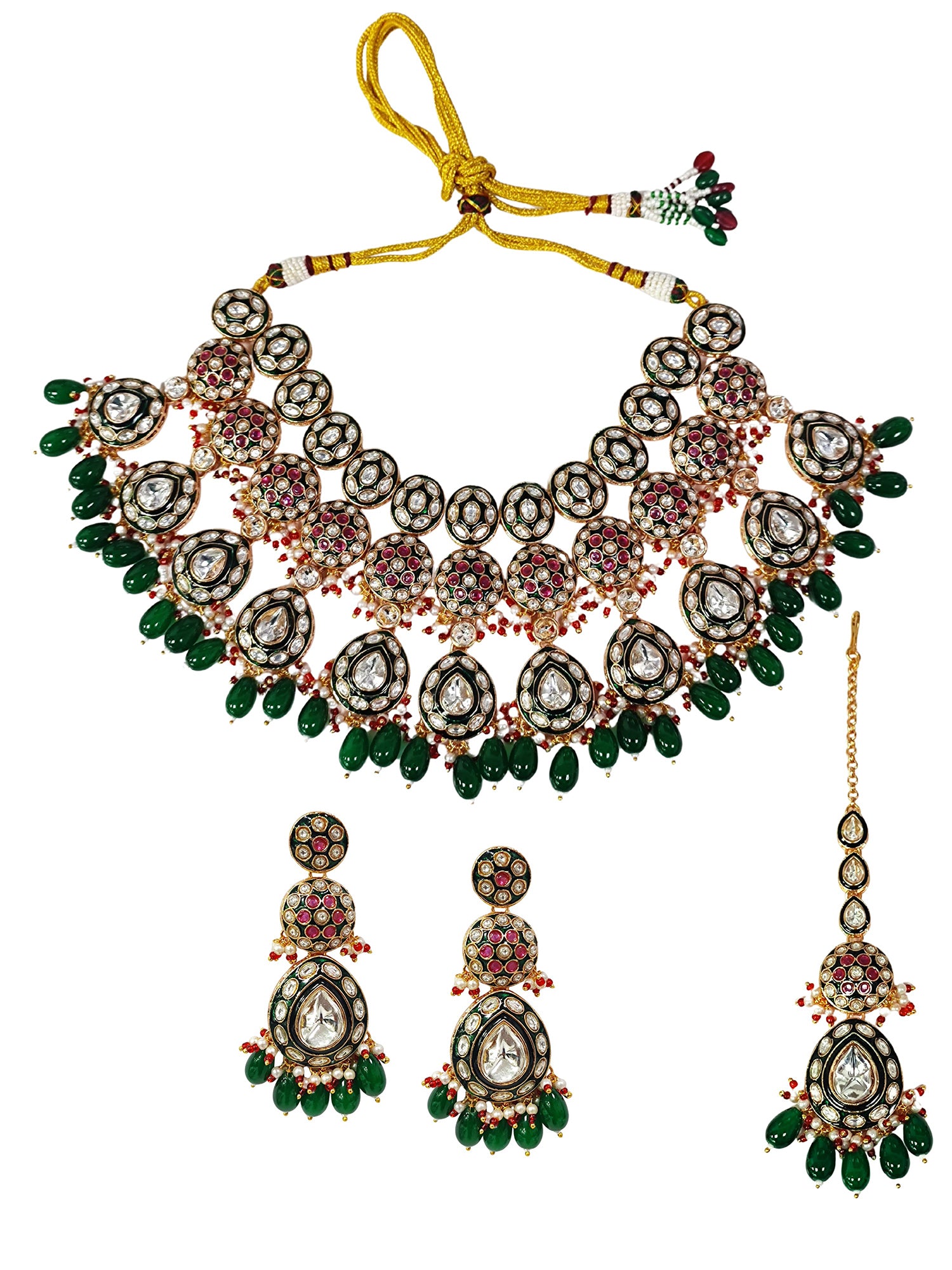 KARATCART Dazzling Red & Green Floral Gold-Plated Kundan Handcrafted Bridal Necklace Set for Women