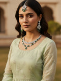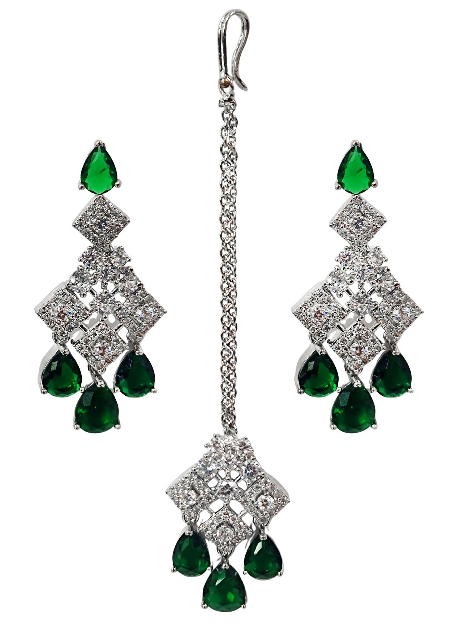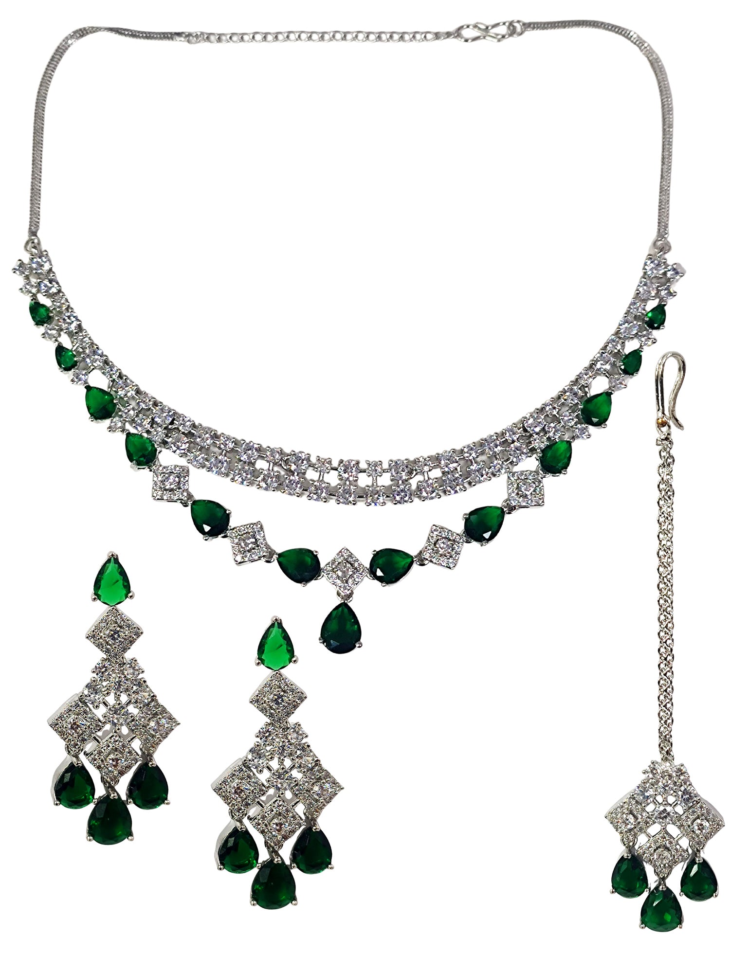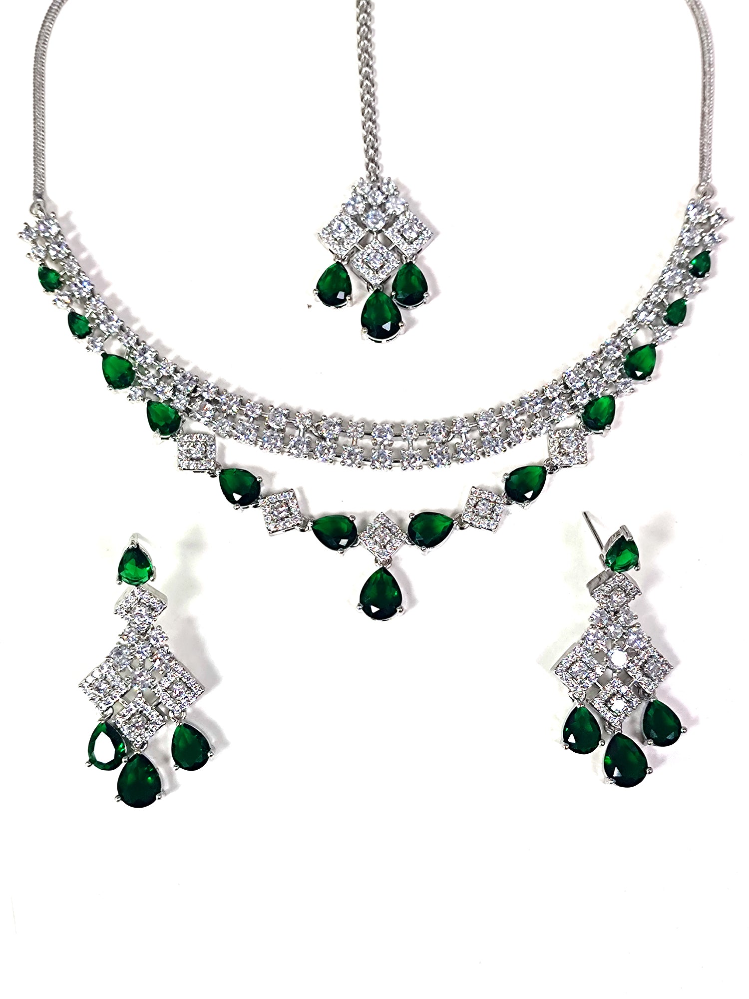 KARATCART Stunning Green American Diamond Silver-Plated Jewellery Set for Women