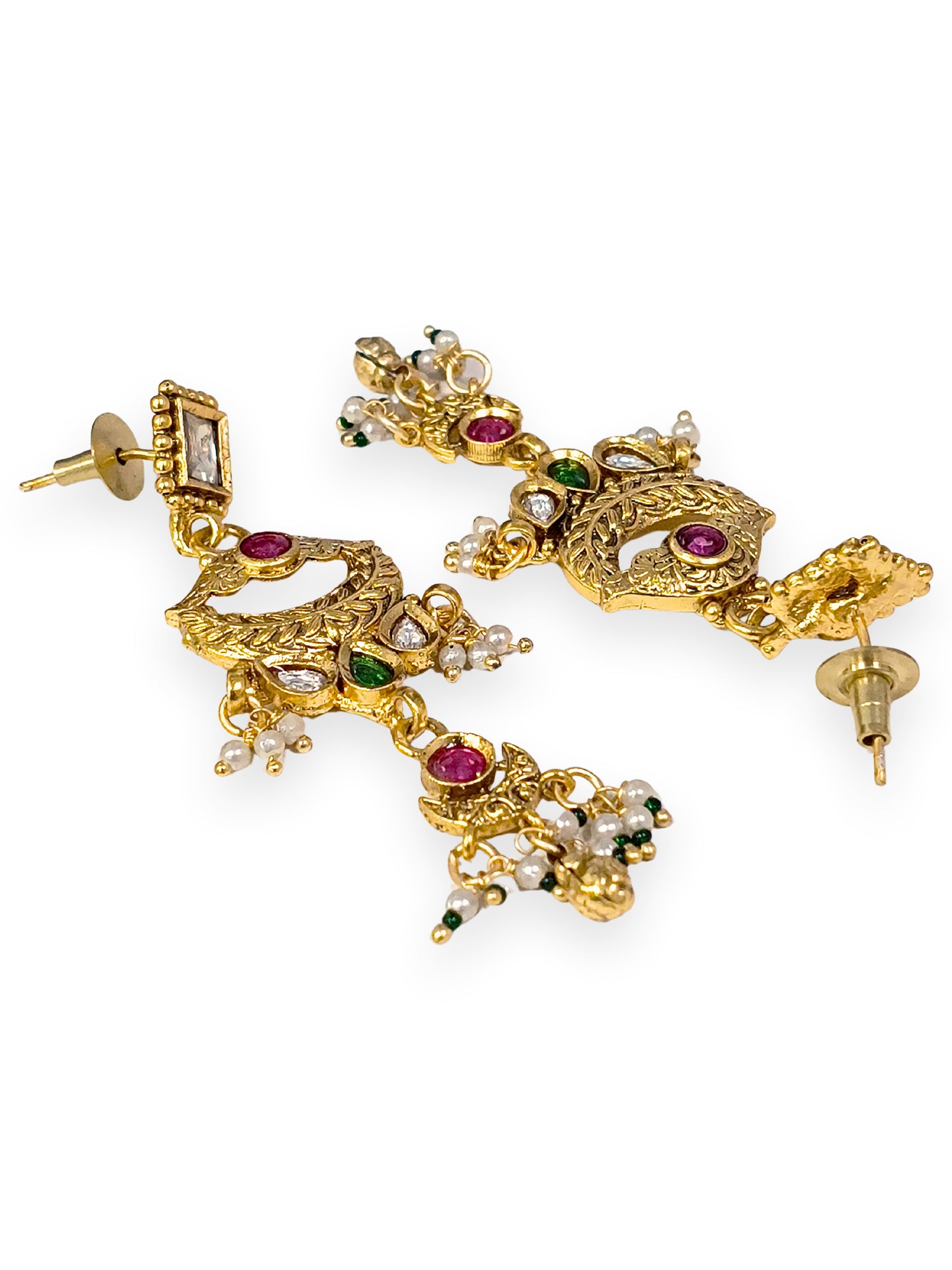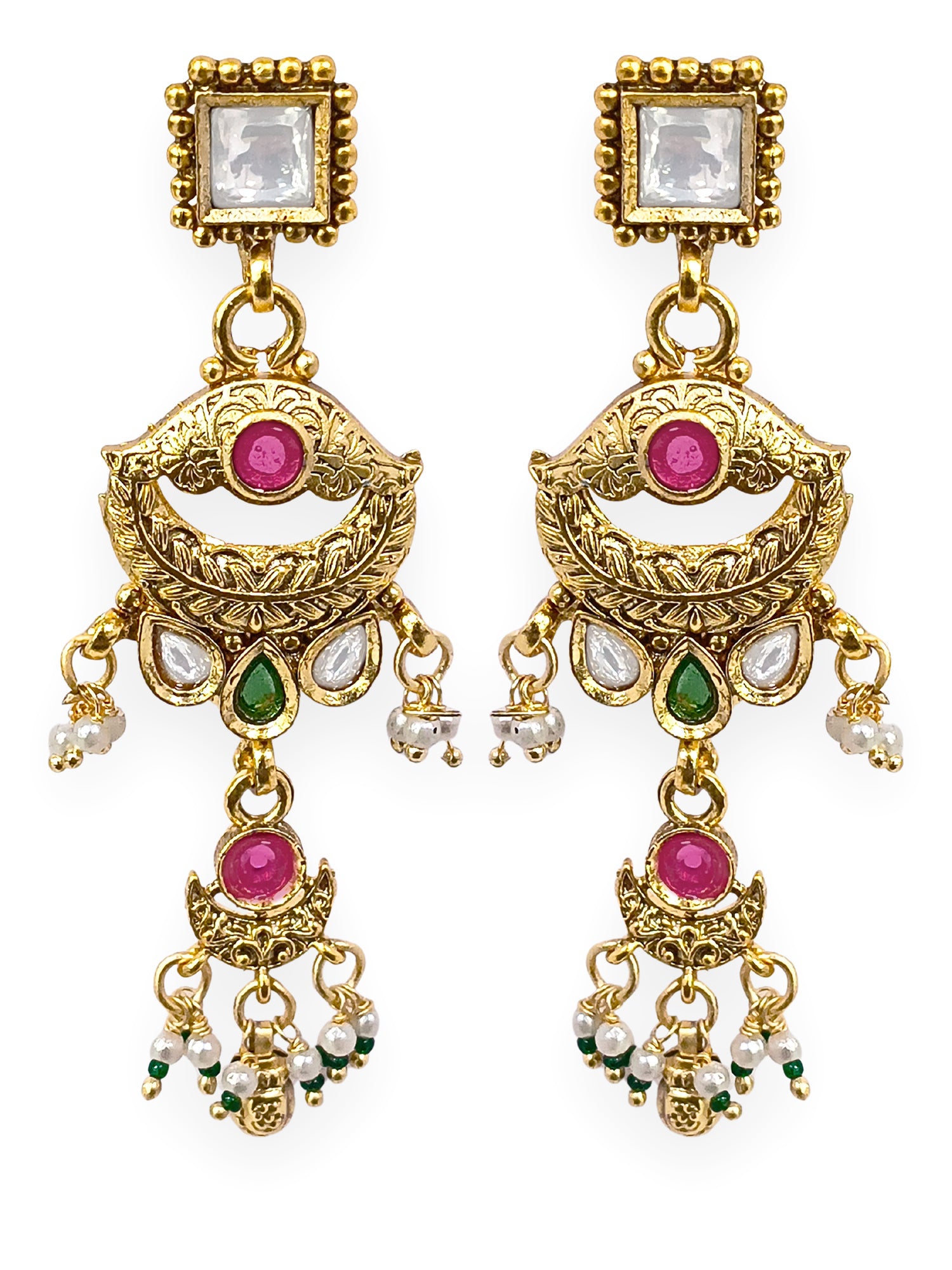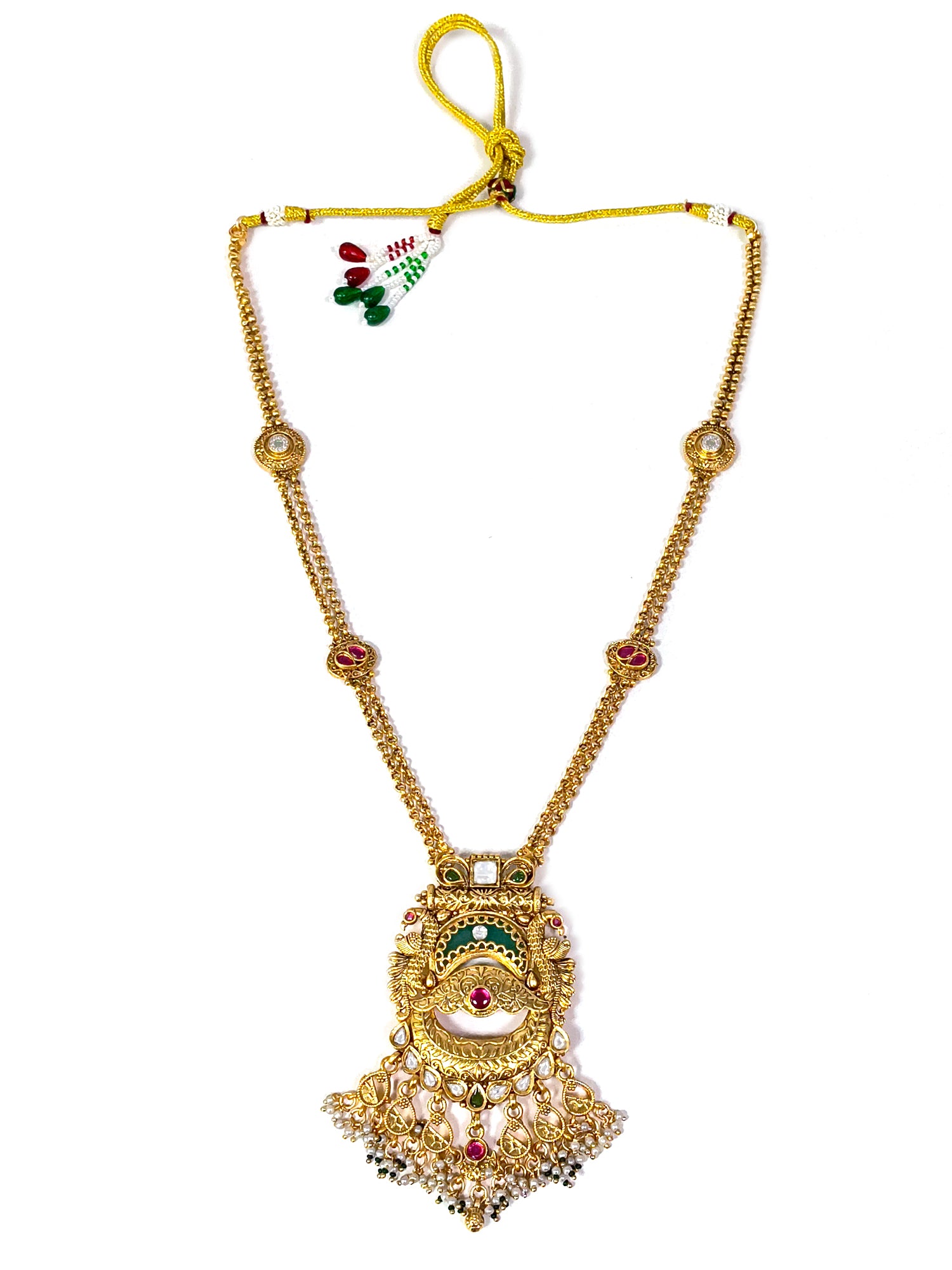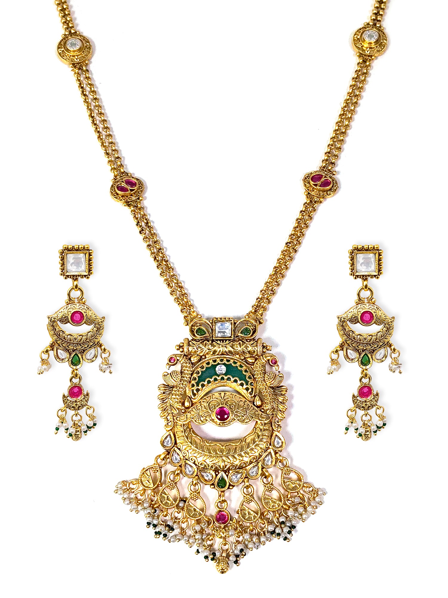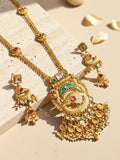 KARATCART Traditional Temple Style Green Beads Gold-Plated Rani Haar Jewellery Set for Women