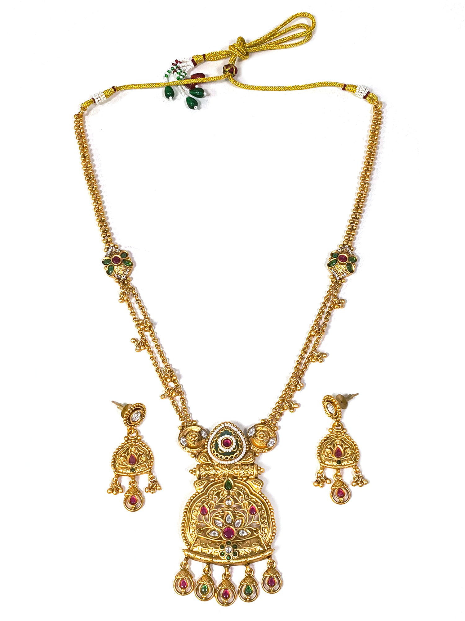 KARATCART South Indian Temple Style Gold-Plated Rani Haar Jewellery Set for Women