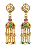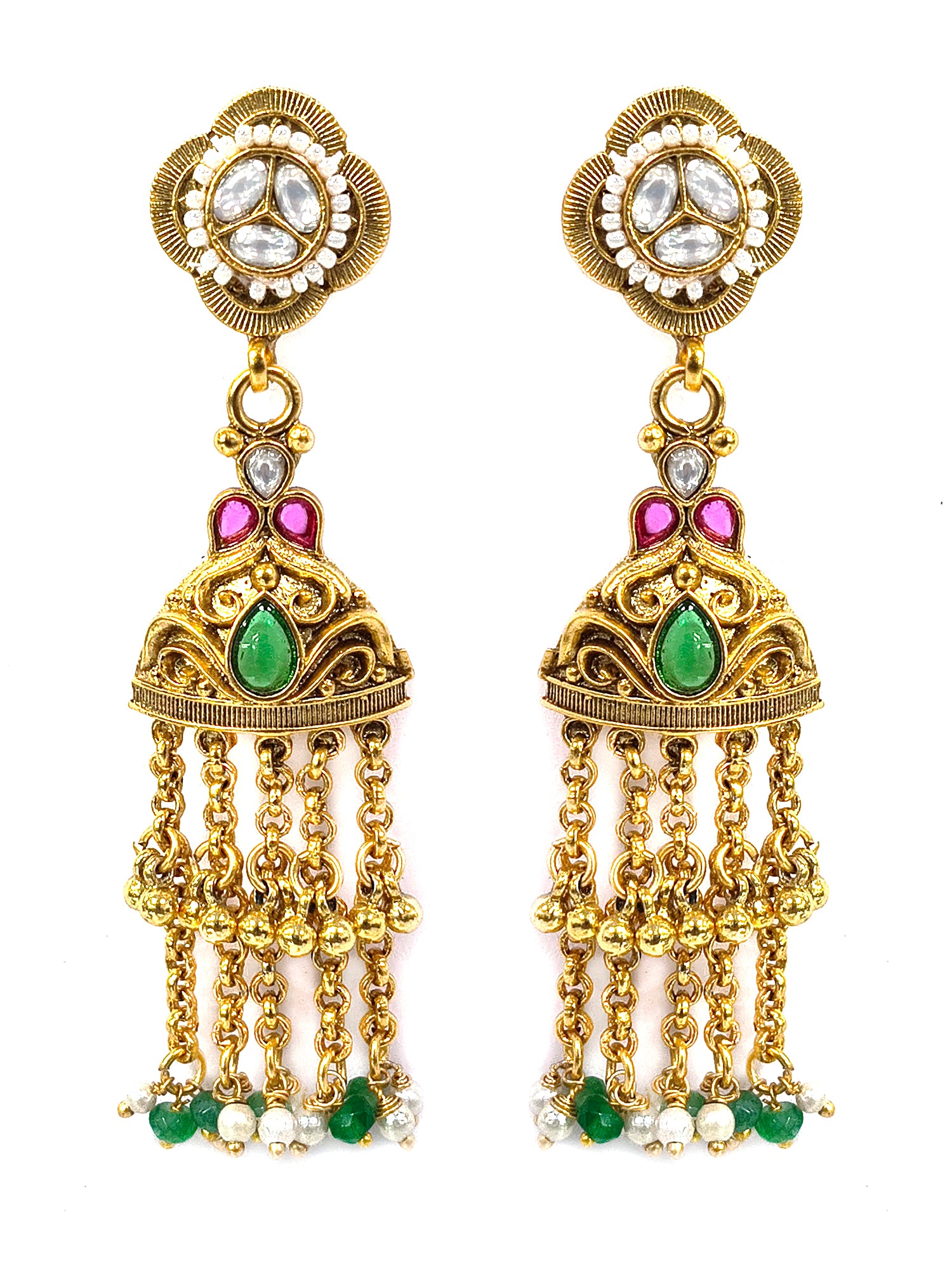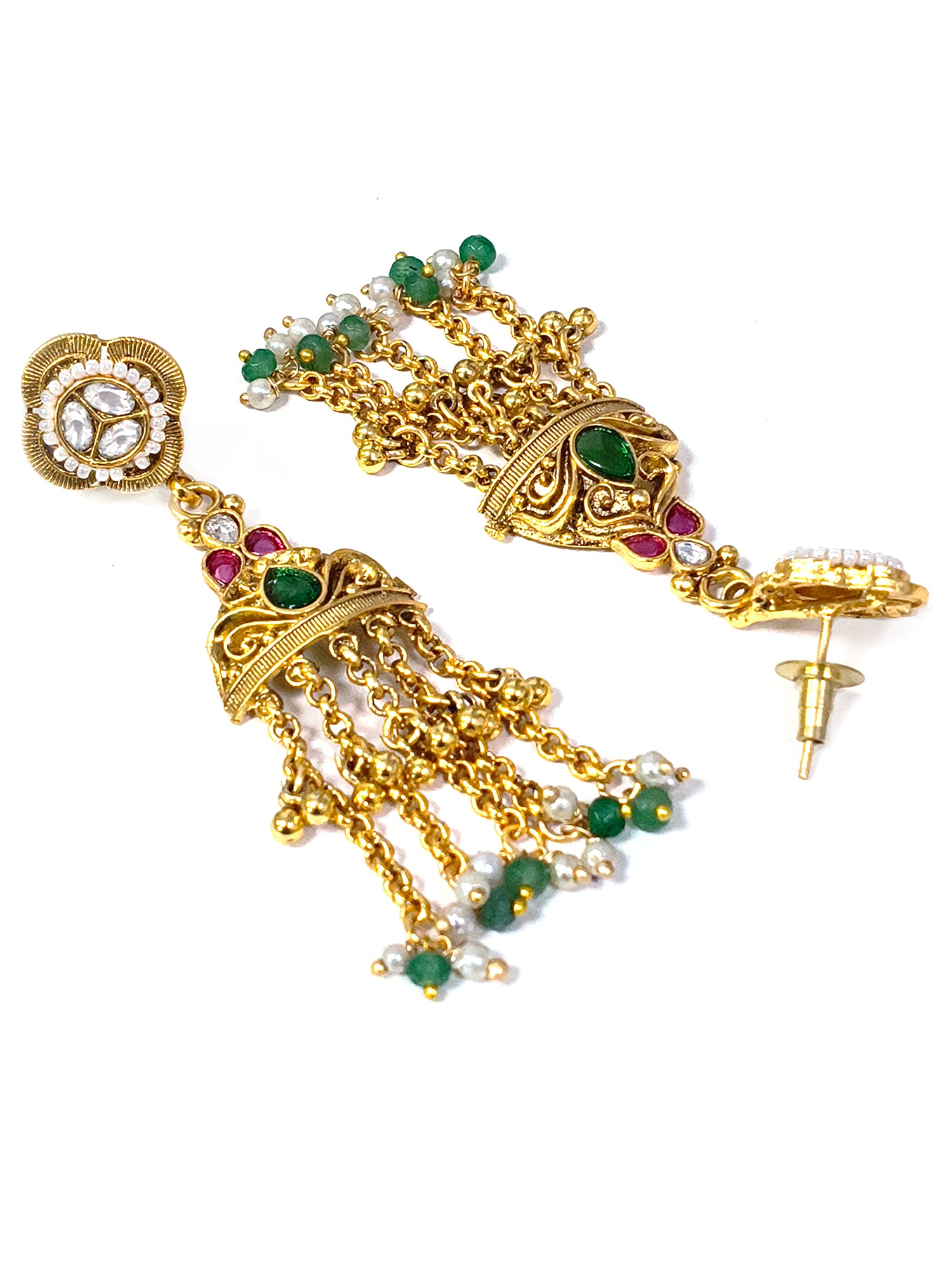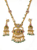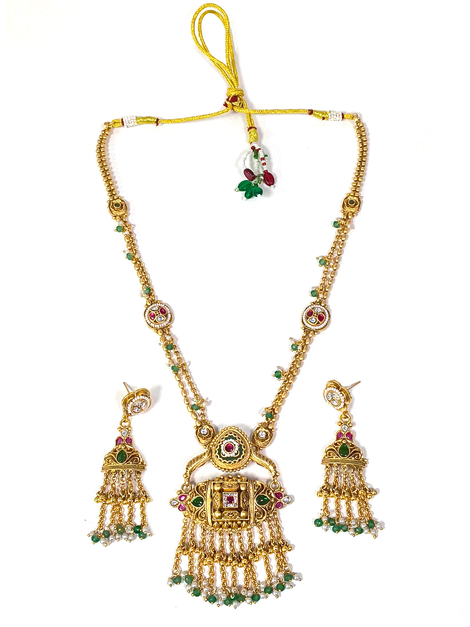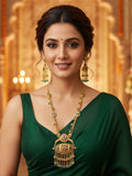 KARATCART Traditional Temple Style Green Beads Gold-Plated Rani Haar Jewellery Set for Women