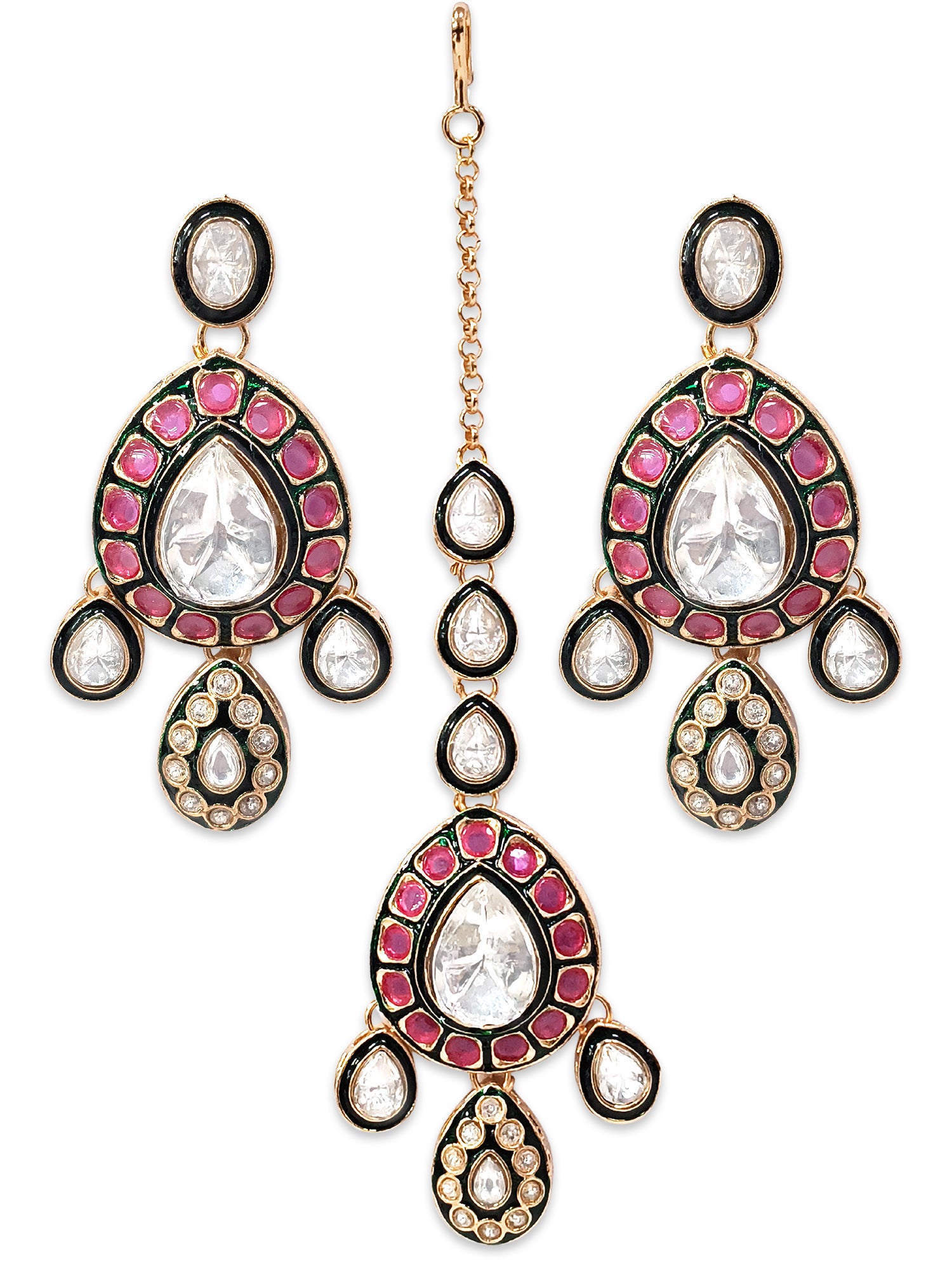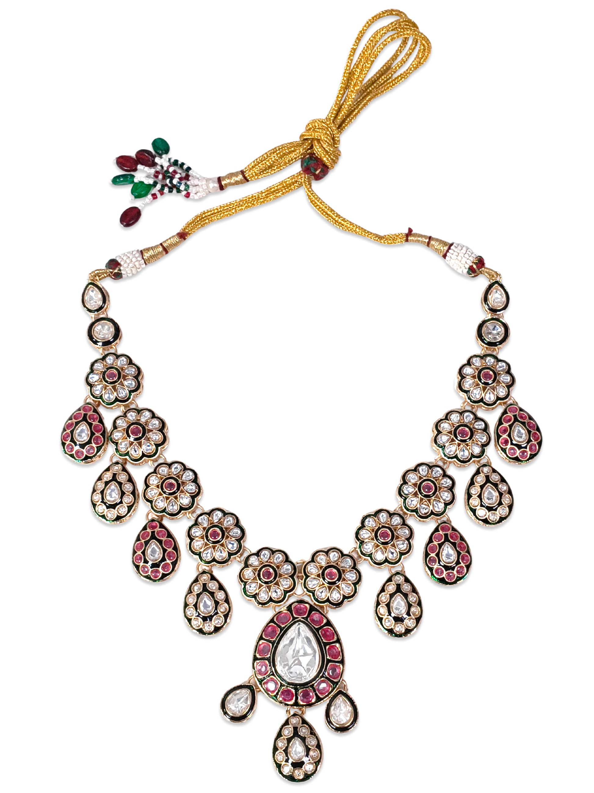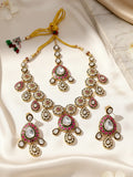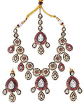 KARATCART Designer Gold-Plated Red Floral Kundan Bridal Jewellery Set for Women