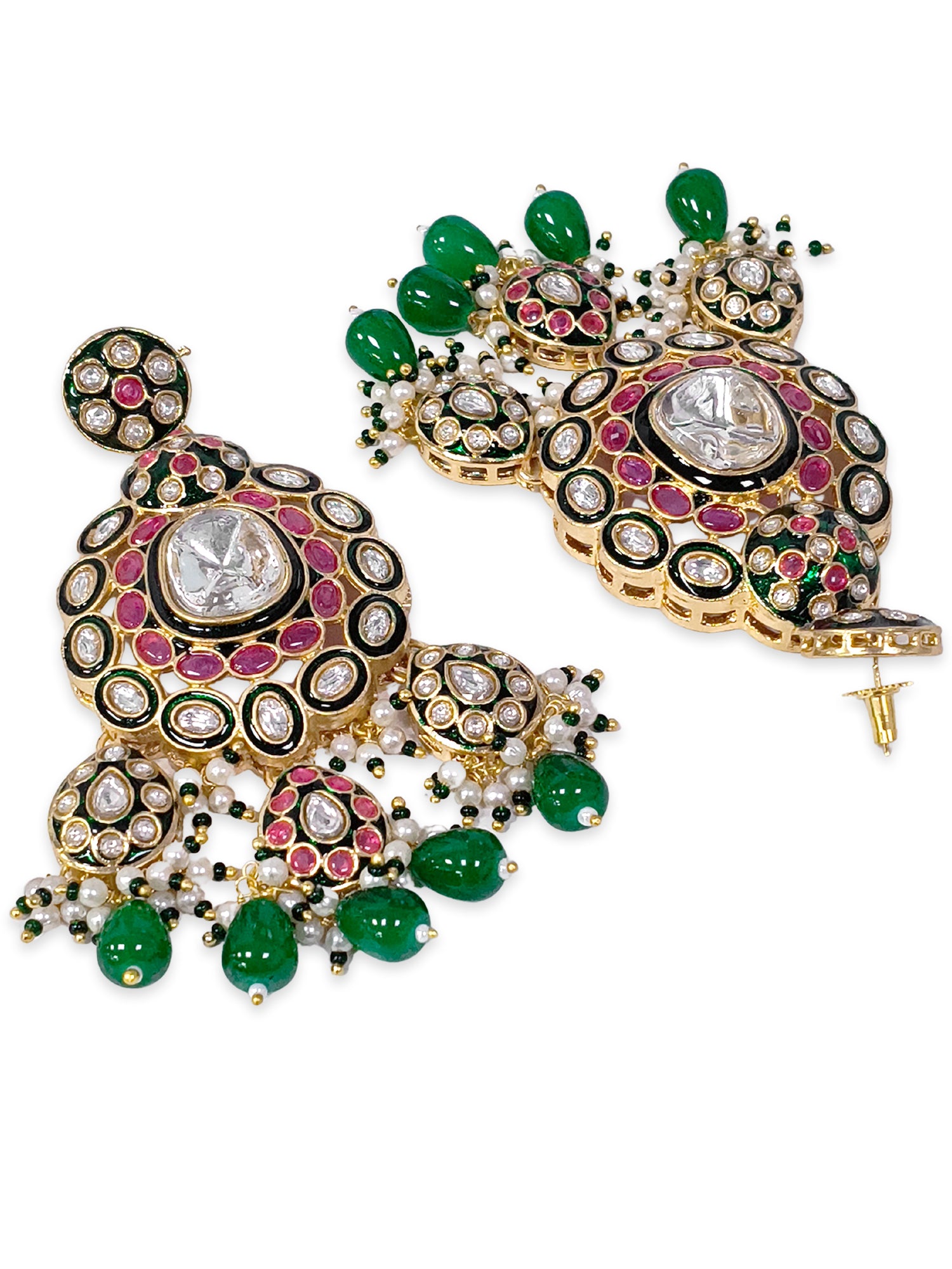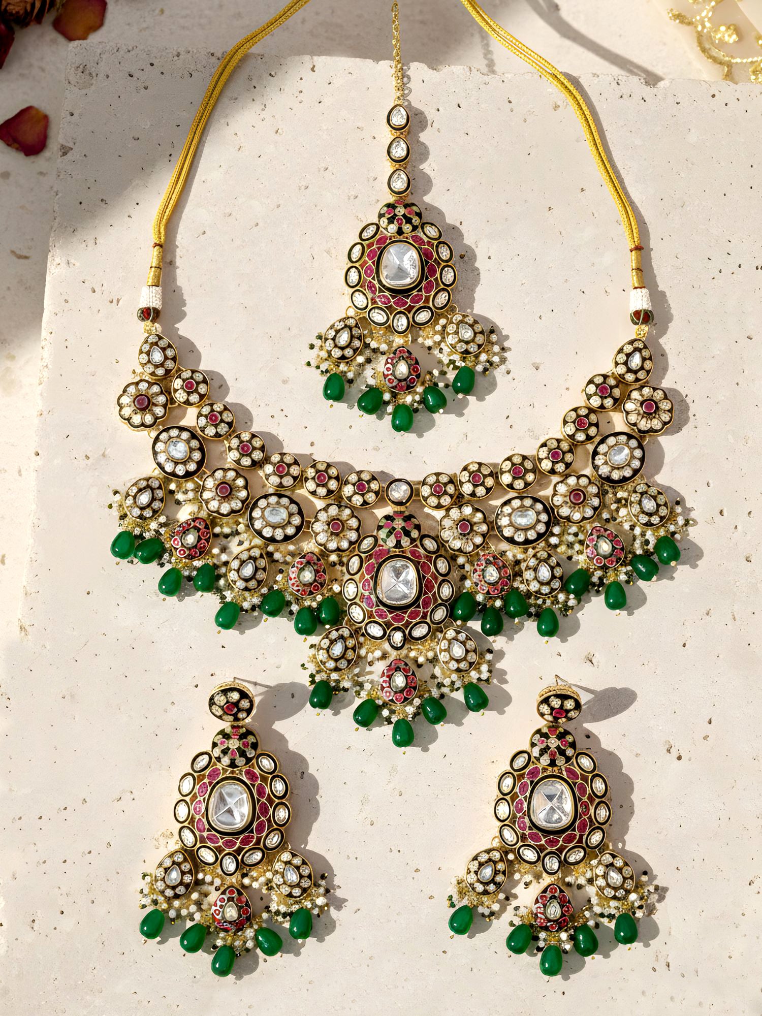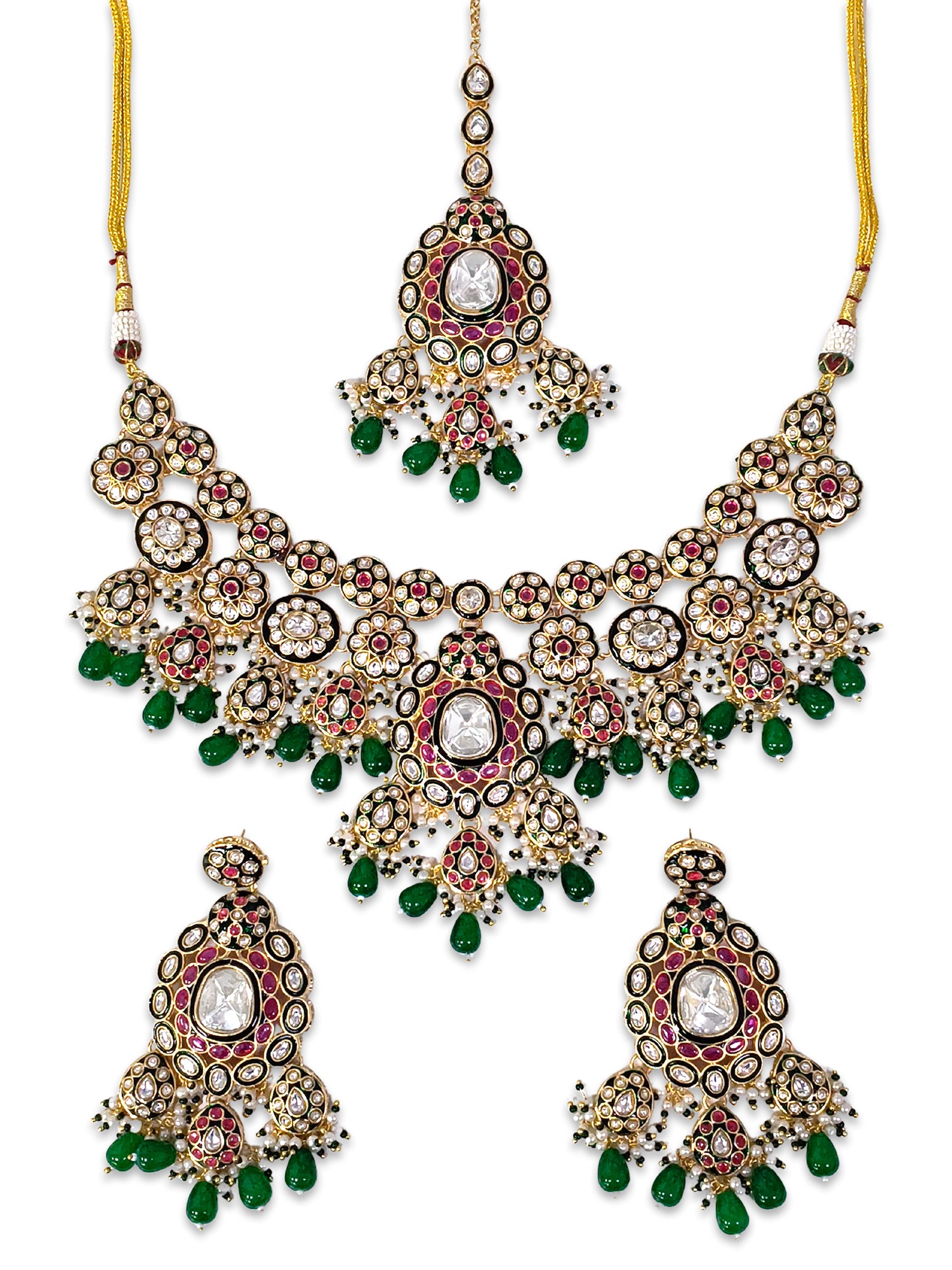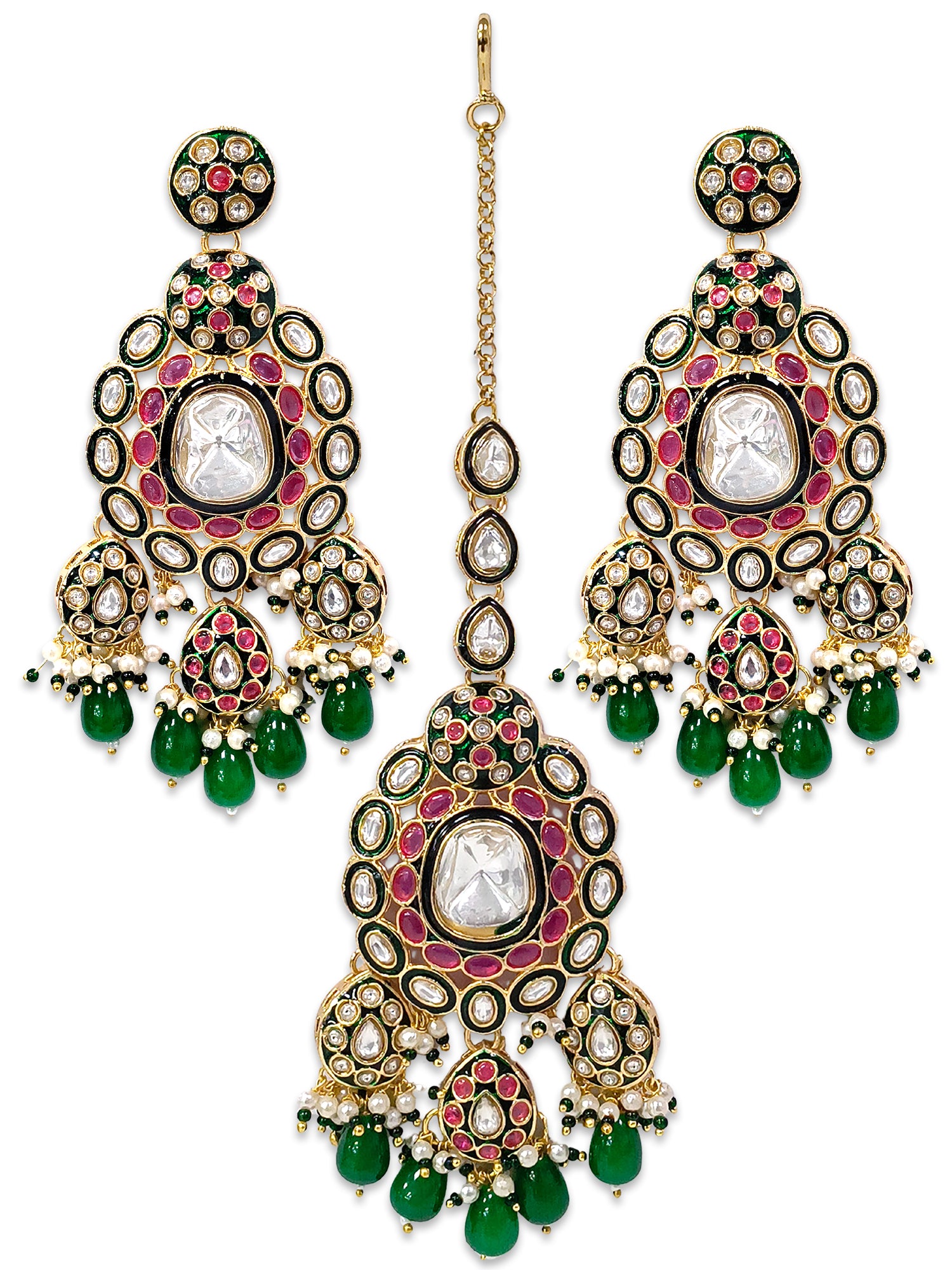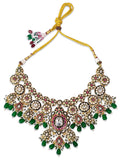 KARATCART Traditional Gold-Plated Red and Green Kundan Bridal Jewellery Set for Women