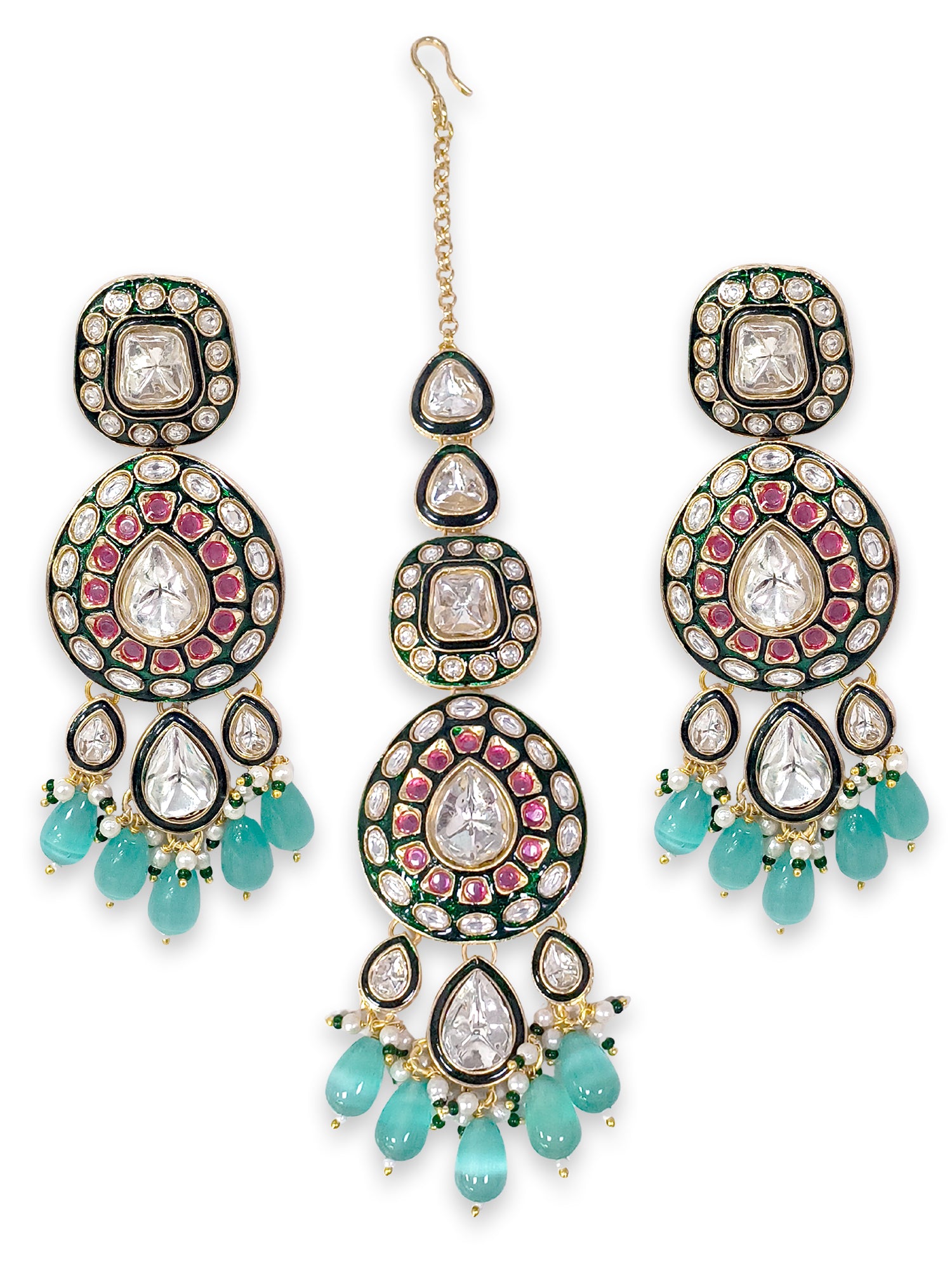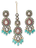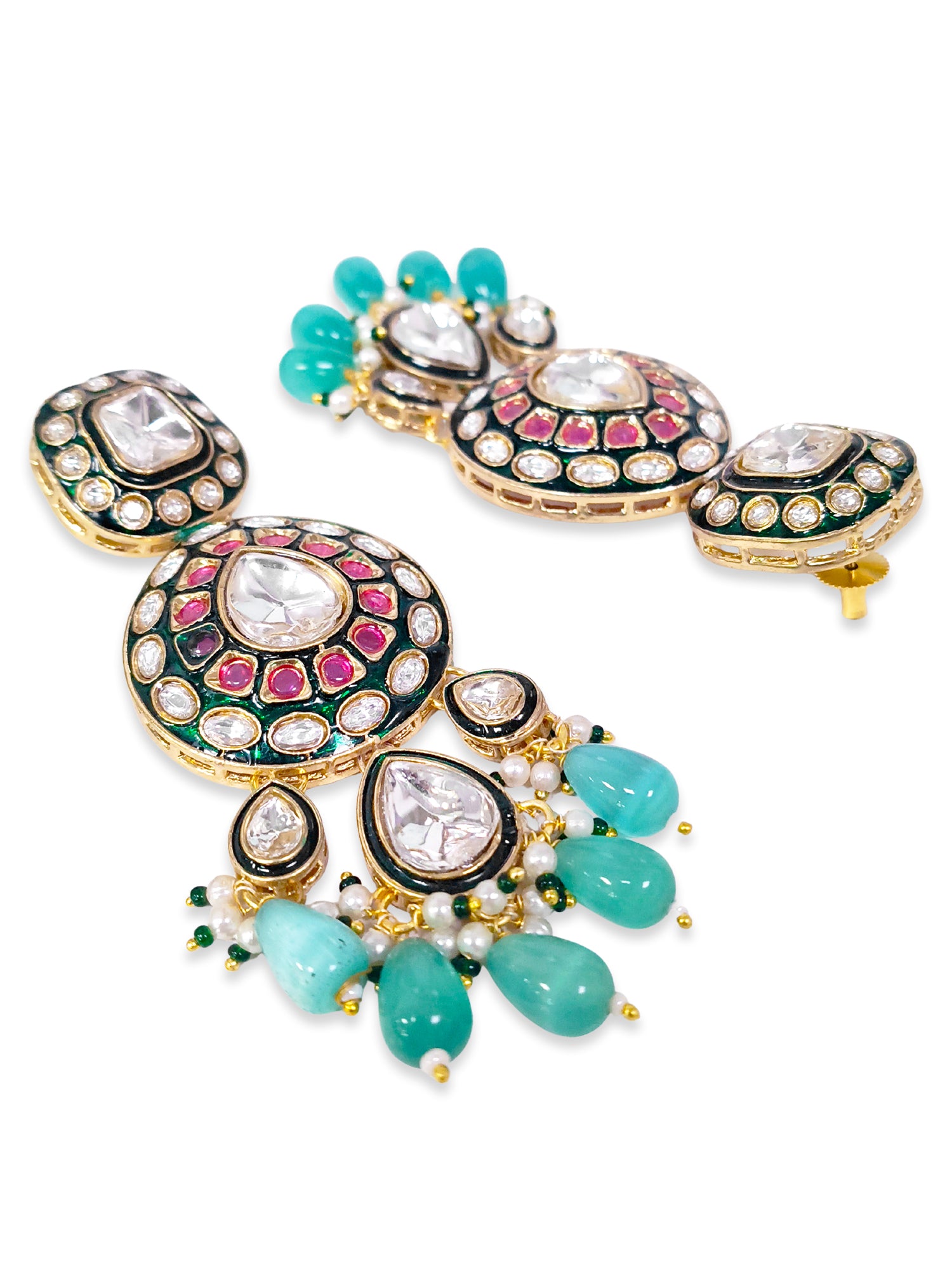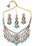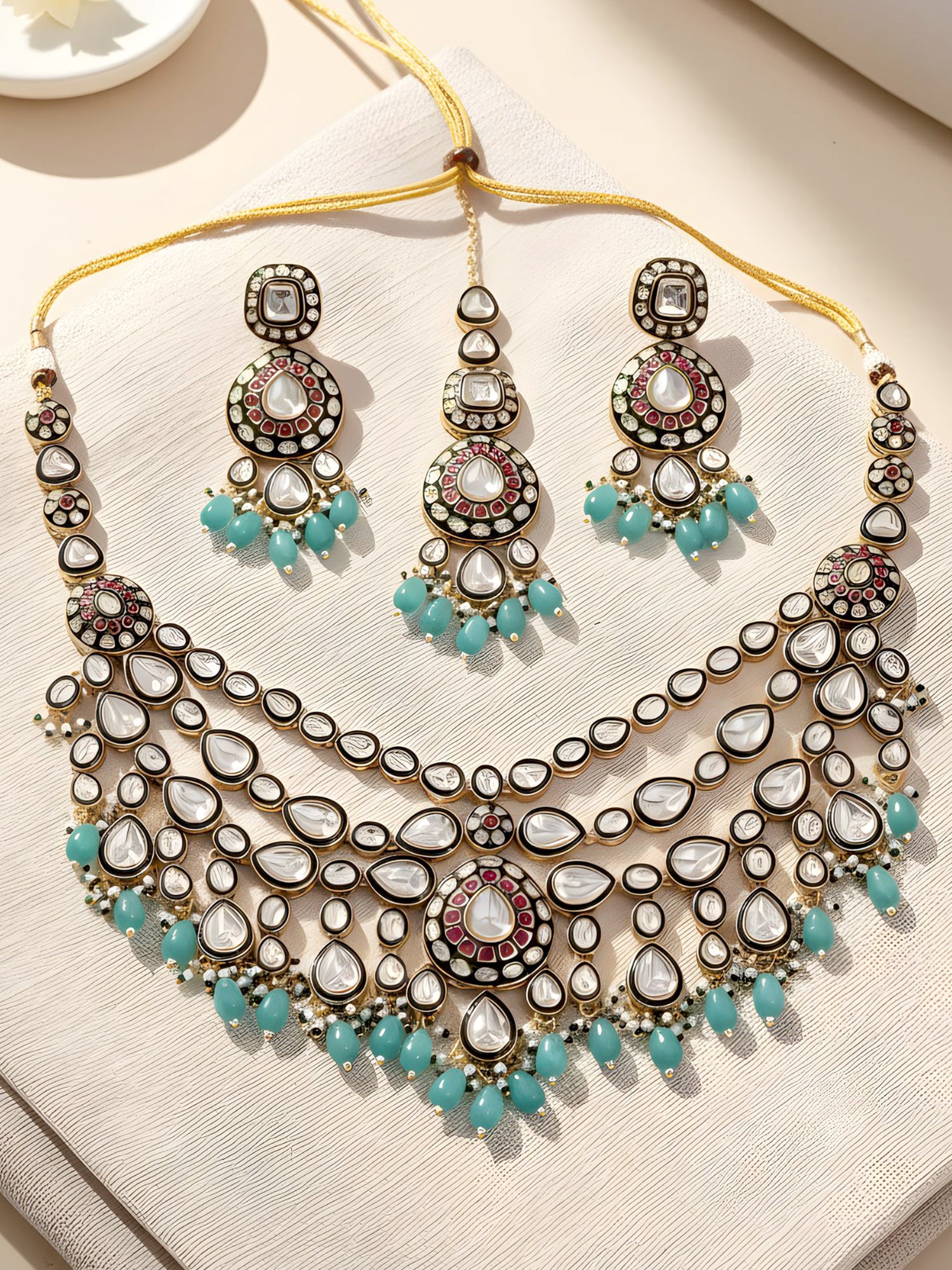 KARATCART Designer Gold-Plated Sea Blue Drop Beads Kundan Bridal Jewellery Set for Women