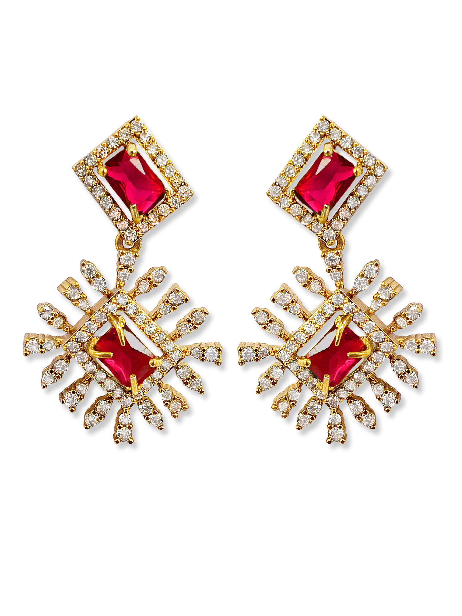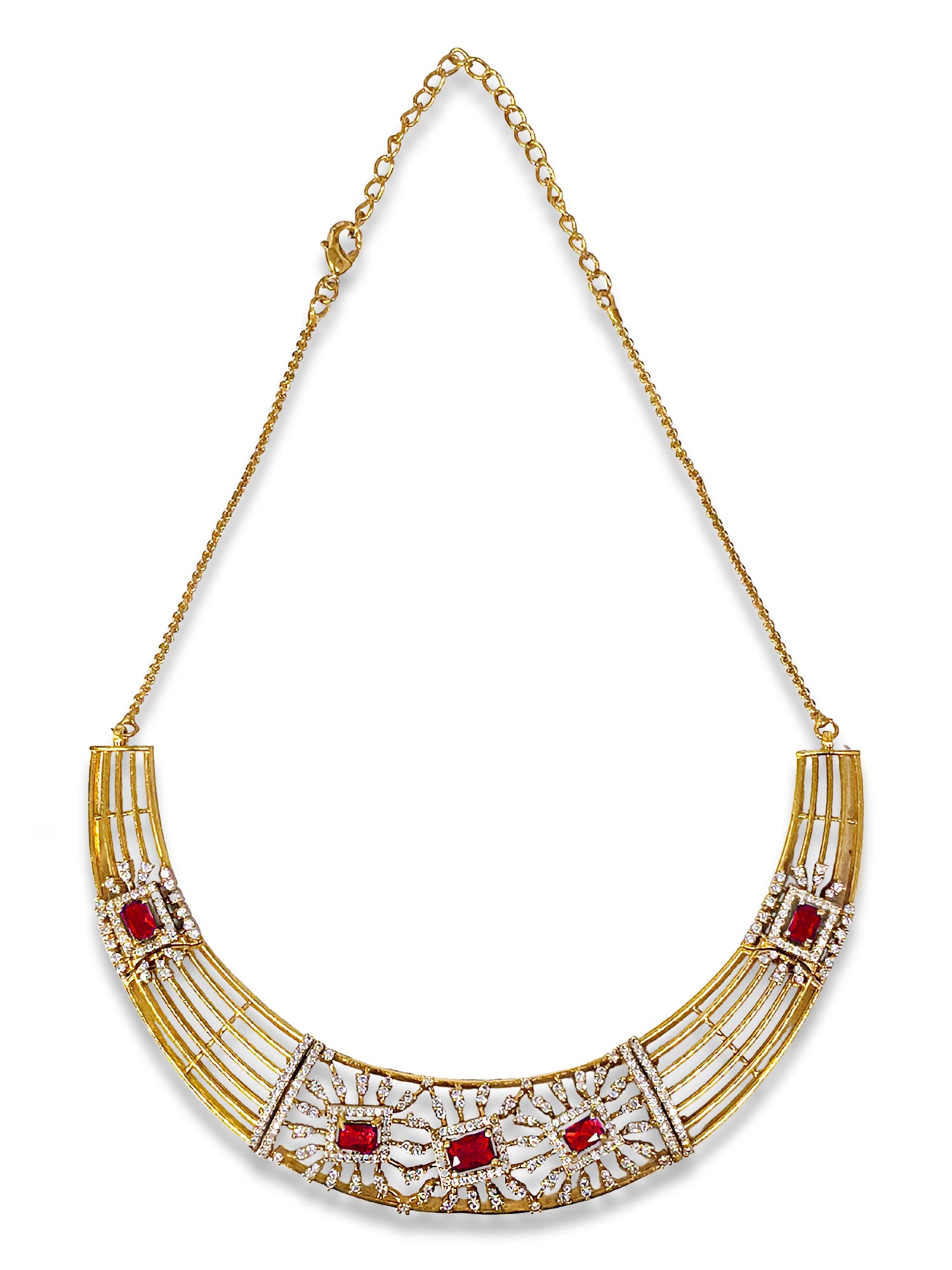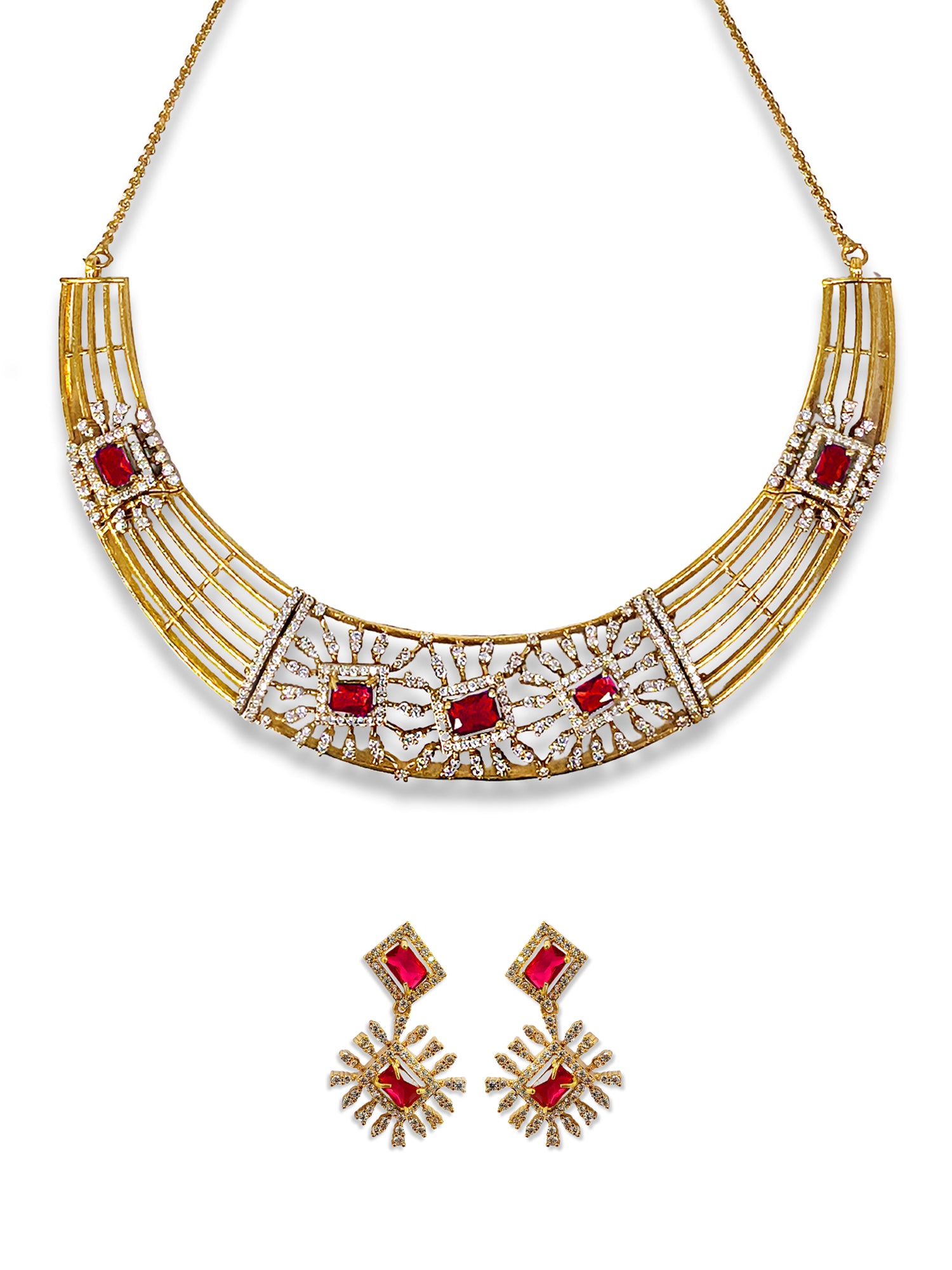 KARATCART Classic Gold Plated Red American Diamond Jewellery Set for Women