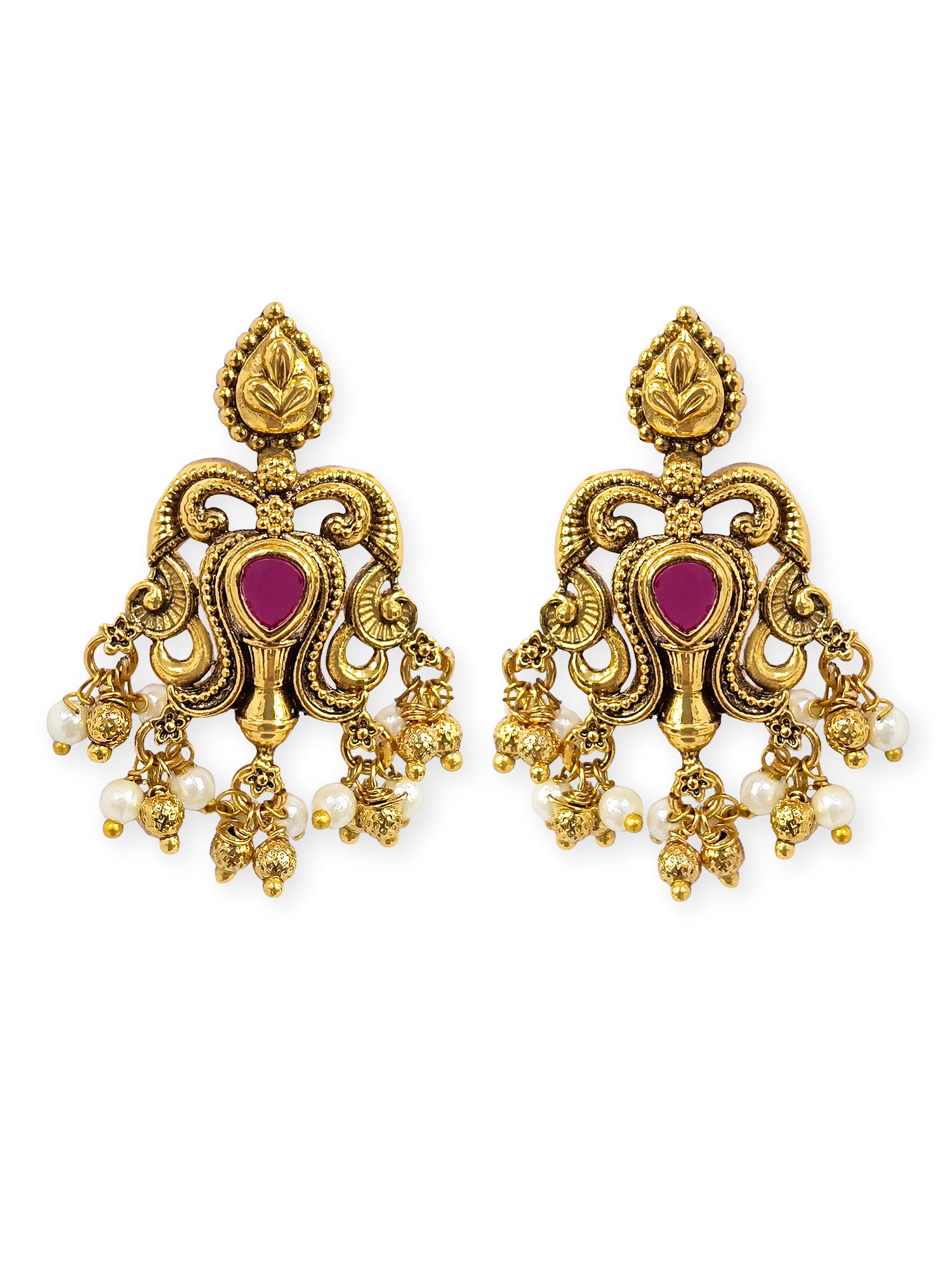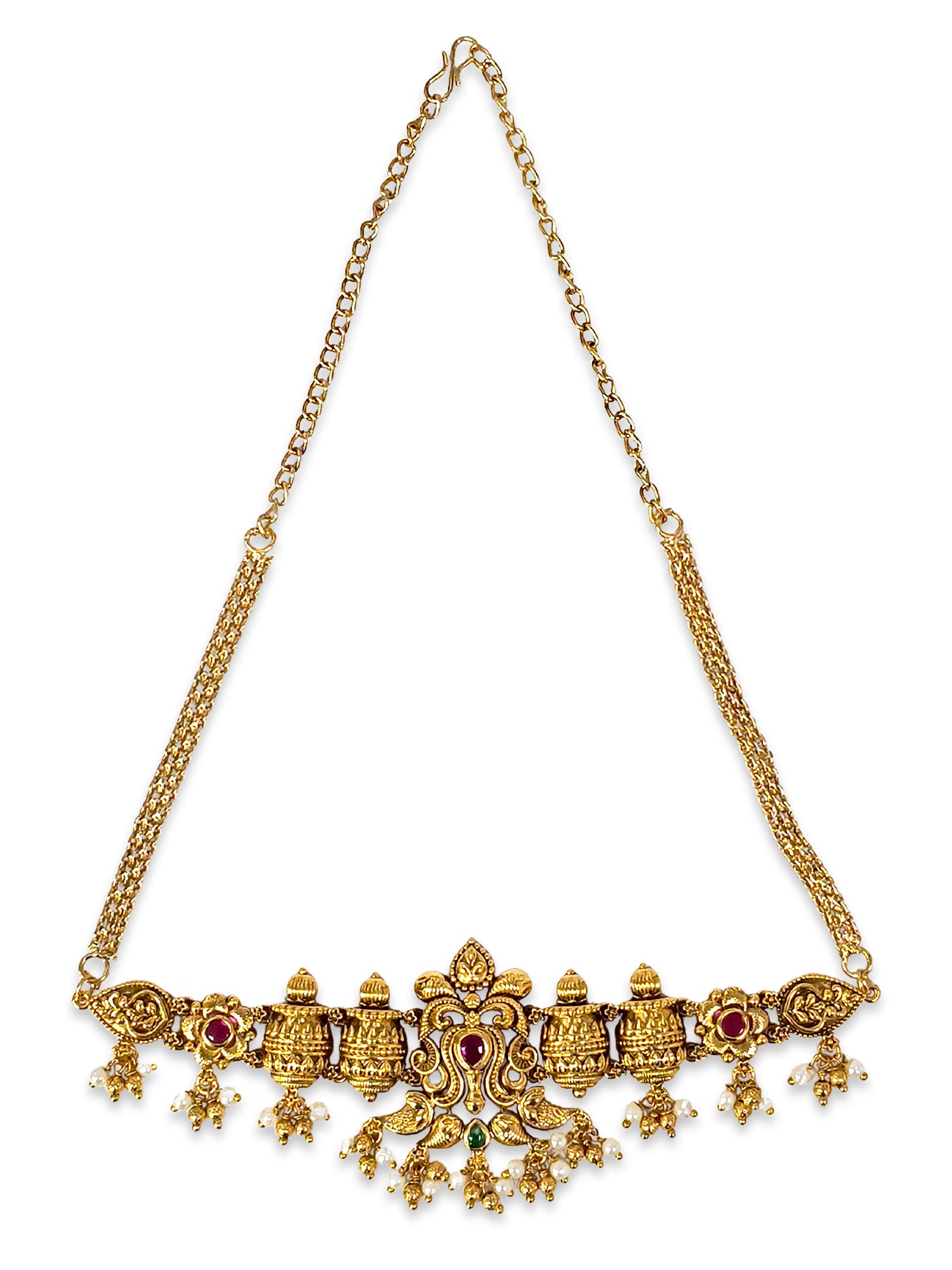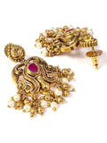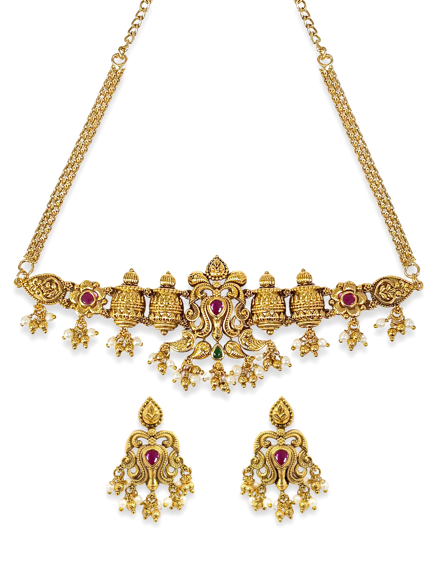 KARATCART Traditional Temple Style Gold-Plated Red Stone Choker Jewellery Set for Women