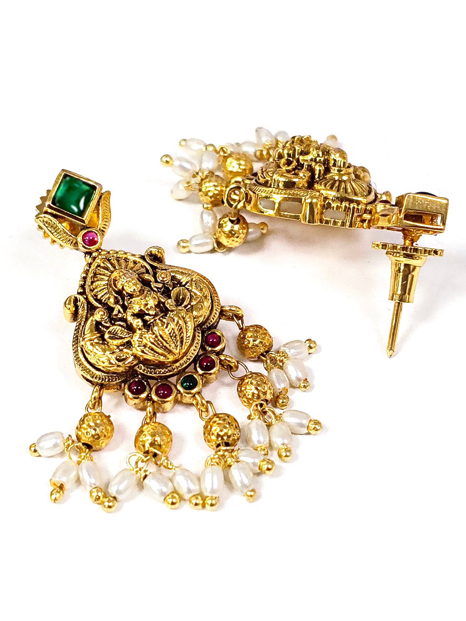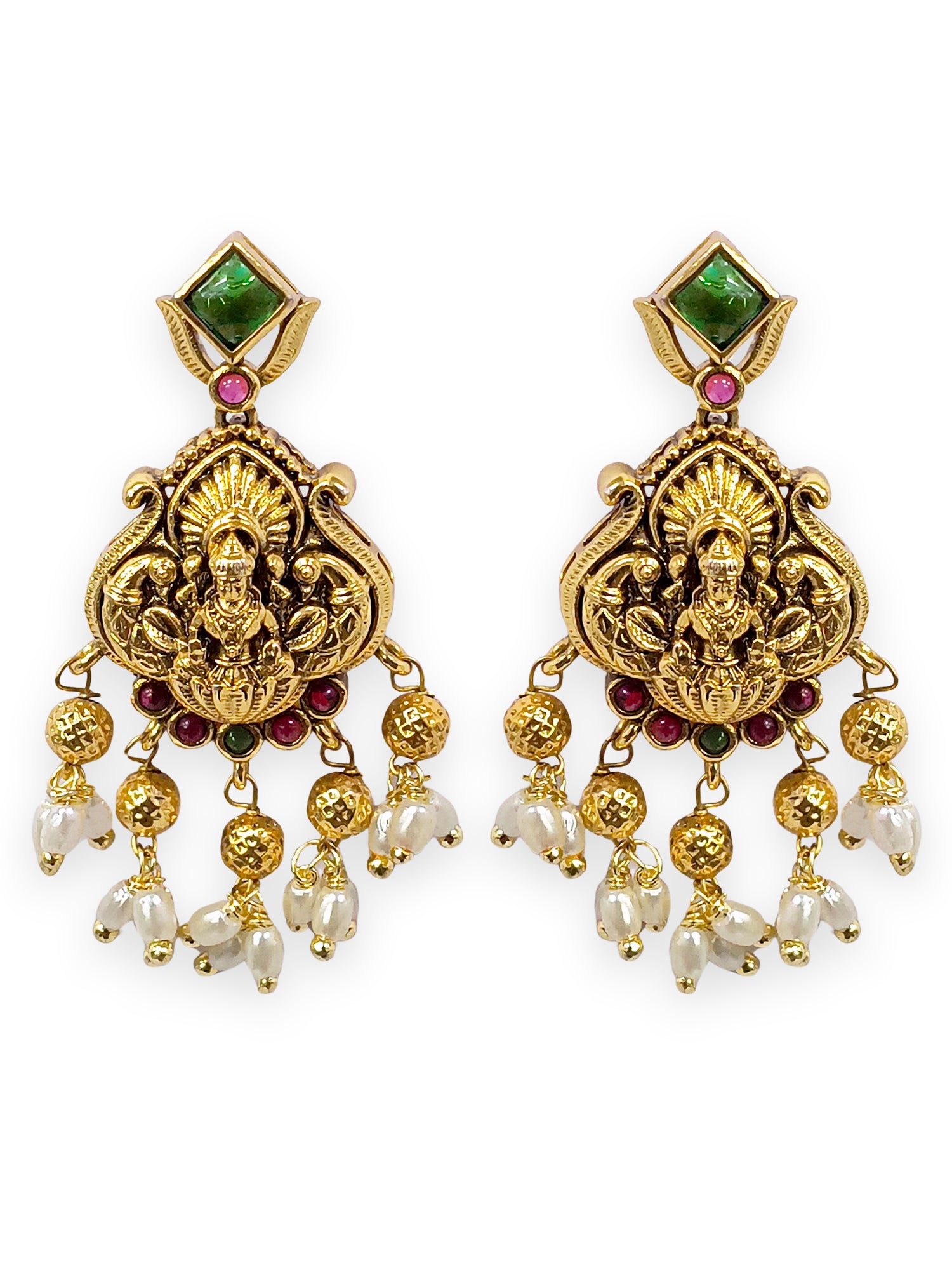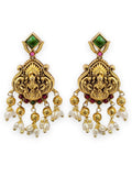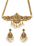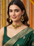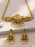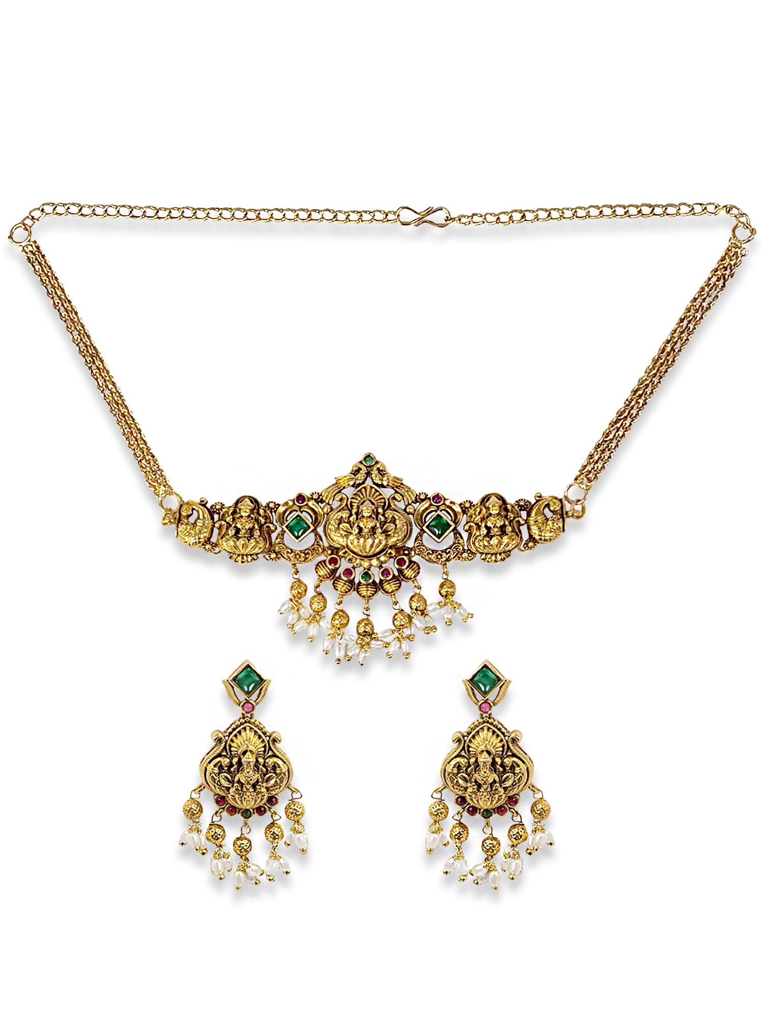 KARATCART Traditional Lakshmi Temple Design Green Stone Gold-Plated Choker Jewellery Set for Women