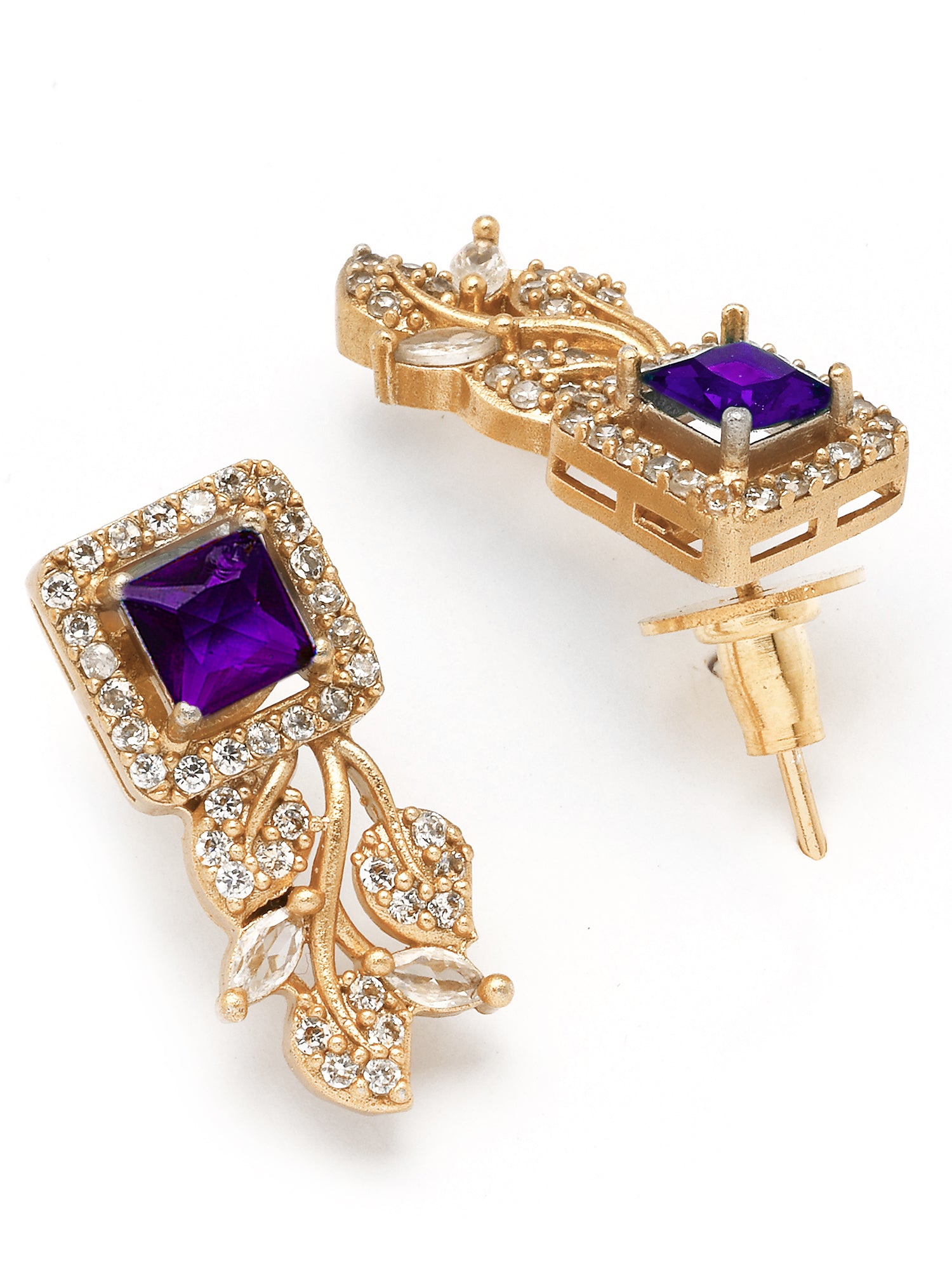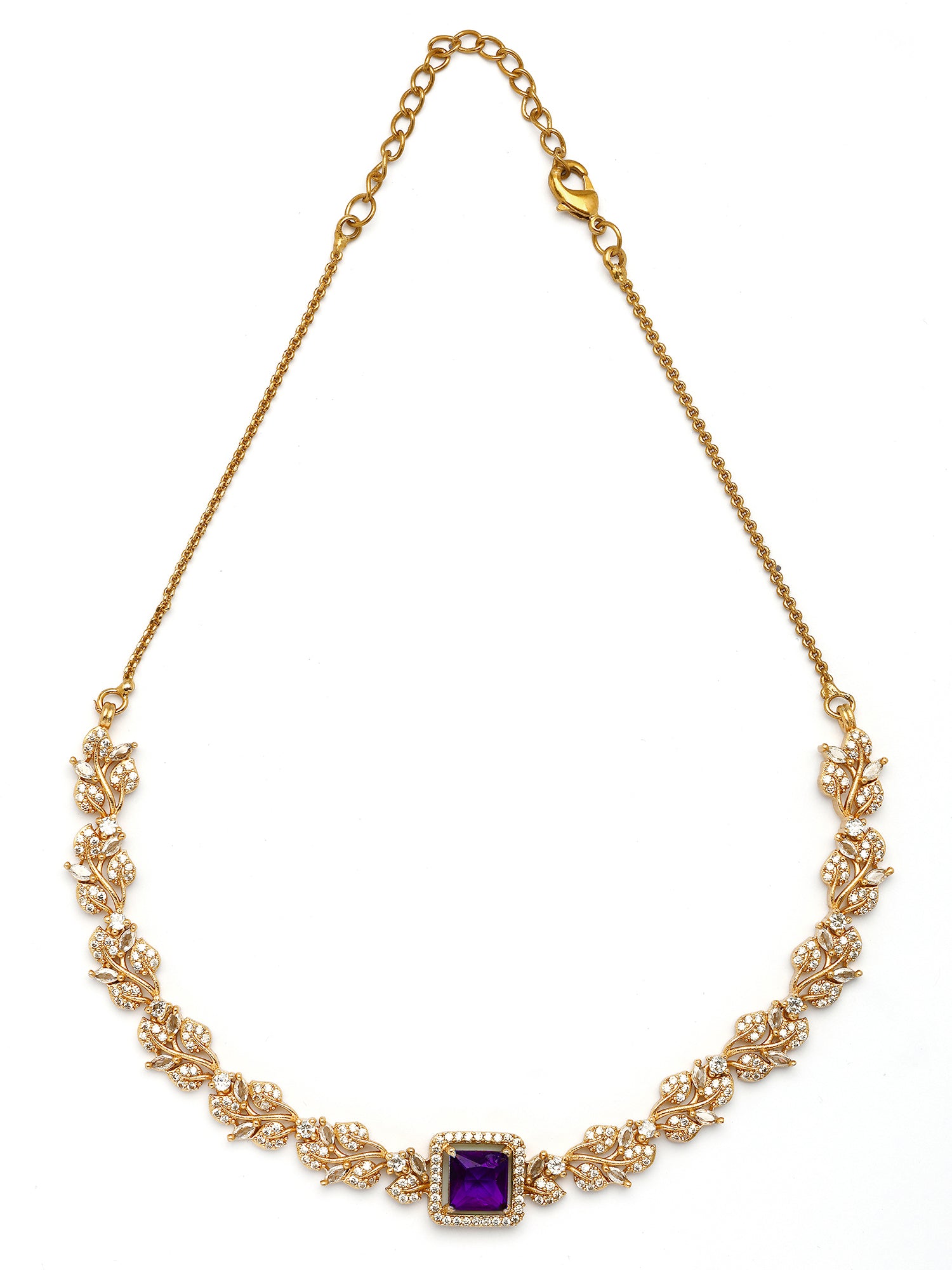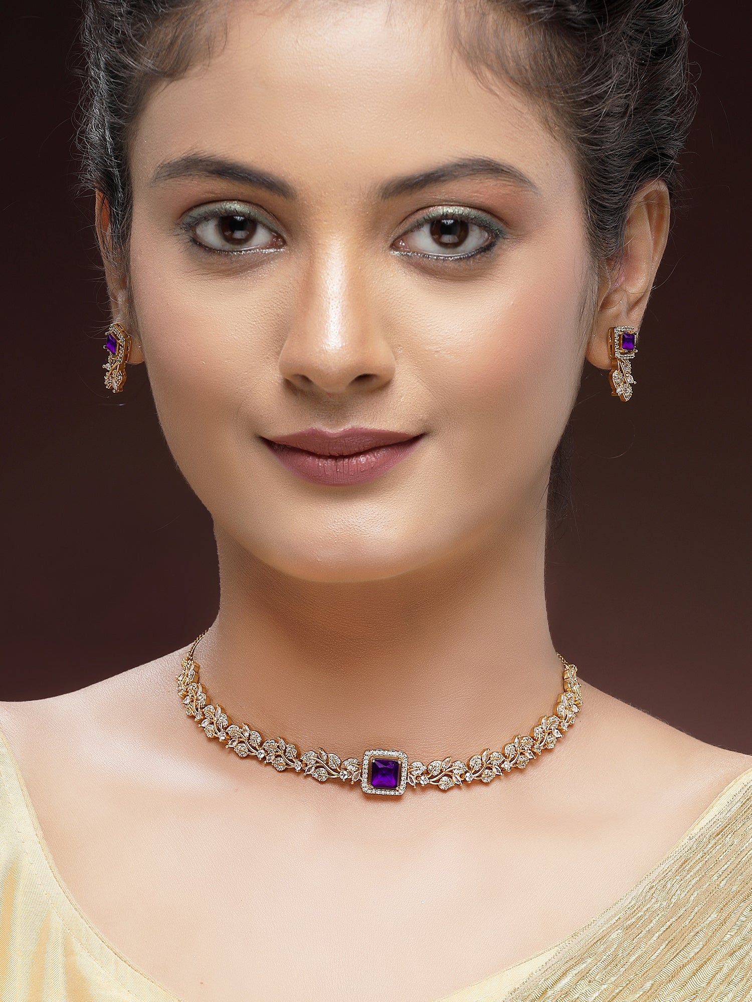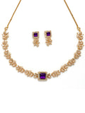 KARATCART Designer Floral Vine Design Purple American Diamond Jewellery Set for Women